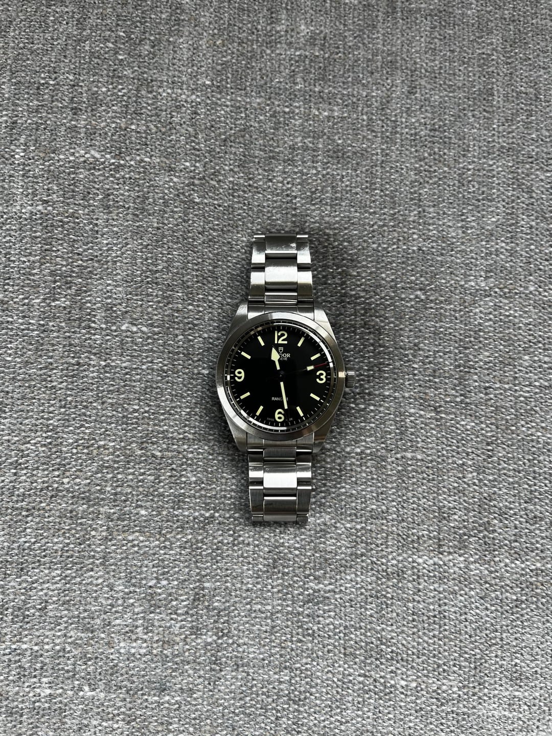 For sale: A 2025 Tudor Ranger in great condition. This piece was originally delivered on the factory bracelet and will also include three high-quality, Tudor Ranger-specific OEM straps to round out a complete set. The watch comes with its full box and papers, and the Tudor warranty remains active until April 2030—excellent peace of mind for the next owner. The case and bezel are clean and unpolished. The clasp shows light desk wear on the clasp, consistent with careful use, but the overall condition is outstanding. A clean, reliable, modern Tudor with years of warranty and a thoughtfully curated strap set—ready for its next owner! Let me know if you have any questions!