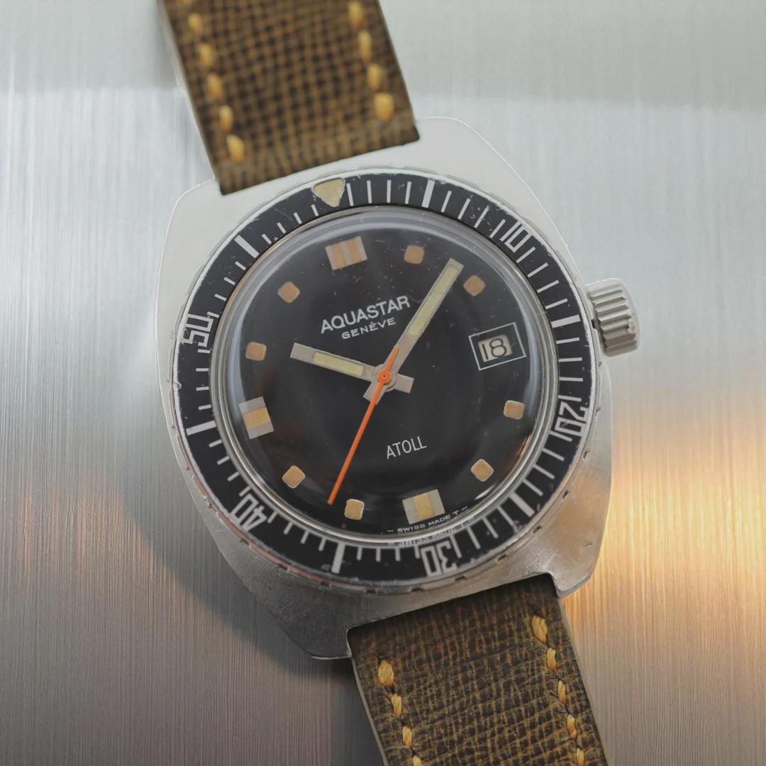 Aquastar was founded in 1962 as a subsidiary of JeanRichard SA, an established Swiss manufacturer at the time. During the early 1960s Aquastar used the backbone of JeanRichard to quickly deliver some of the most capable water sports watches of the era. Brand: Aquastar Model: Atoll Year: Circa 1970s Case: 40mm Lug to lug: 45mm Box & papers: No Location: Los Angeles Price: ONLY $999! Web/IG: [keepiece.co](http://keepiece.co/) Pictures/Timestamp: [https://imgur.com/a/W6Fvwsu](https://imgur.com/a/W6Fvwsu) CONDITION & SERVICING \- The case is unpolished showing only light wear for it's age. \- Hands and markers are matching although the hands are slightly lighter. \- Service history is unknown.