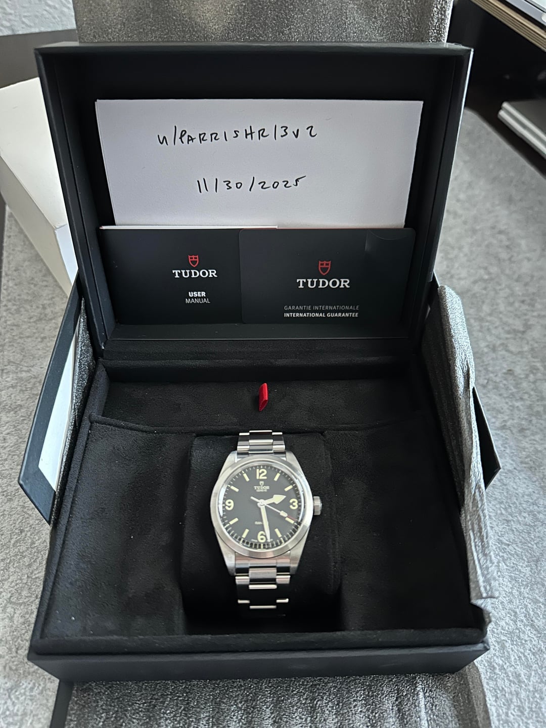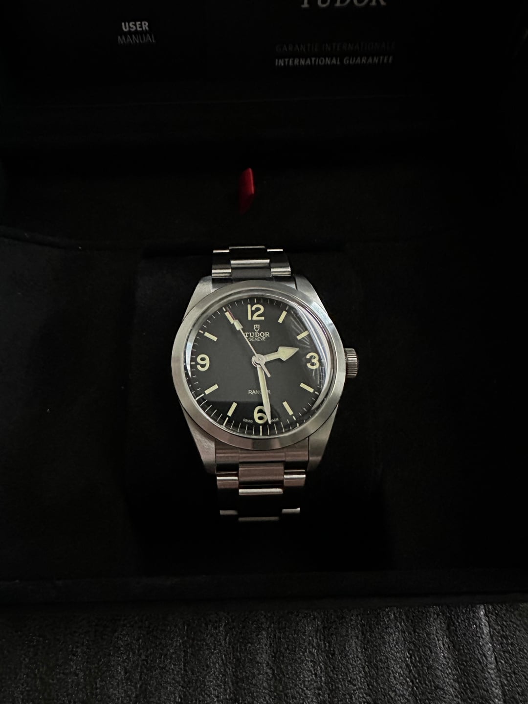 Tudor Ranger 39mm 79950 2022 Full Kit. Great condition with some very slight desk rash on clasp, and a little on the bracelet as well. Keeping excellent time at an average of -0.5 s/day. I can provide additional pictures, videos, and/or FaceTime if requested. $2,350 firm shipped CONUS Zelle preferred, Venmo or PayPal FF