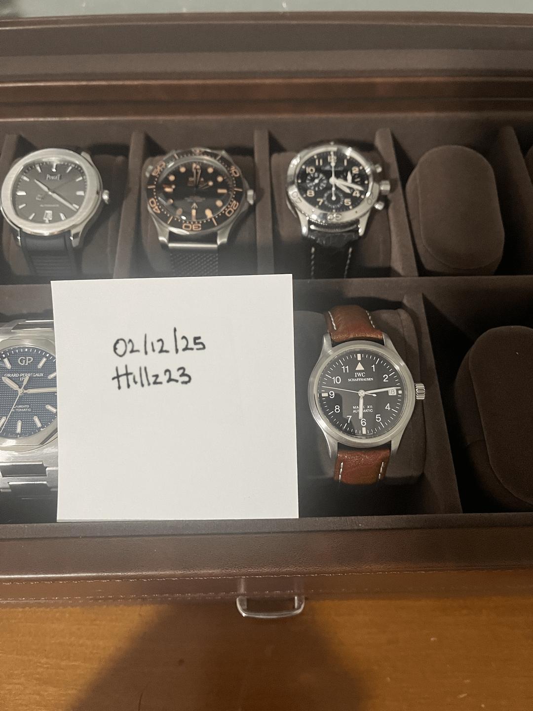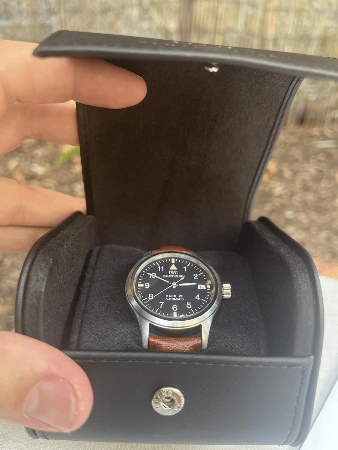 looking to sell my IWC Mark XII IW324101. Included in the box is the IWC carry case, original IWC leather strap with buckle, aftermarket Debeers brown leather strap with IWC deployment clasp, I am the third owner and have worn a far amount of times, the original owner wore as his daily so there is certainly wear on the casing and bezel considering it is a vintage watch. Asking $4900 shipping included, payment via PaPal, Zelle or Wire. send a pm if interested, thanks for looking.