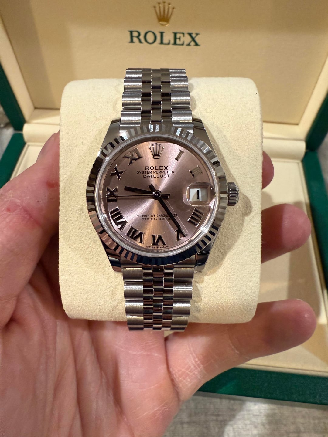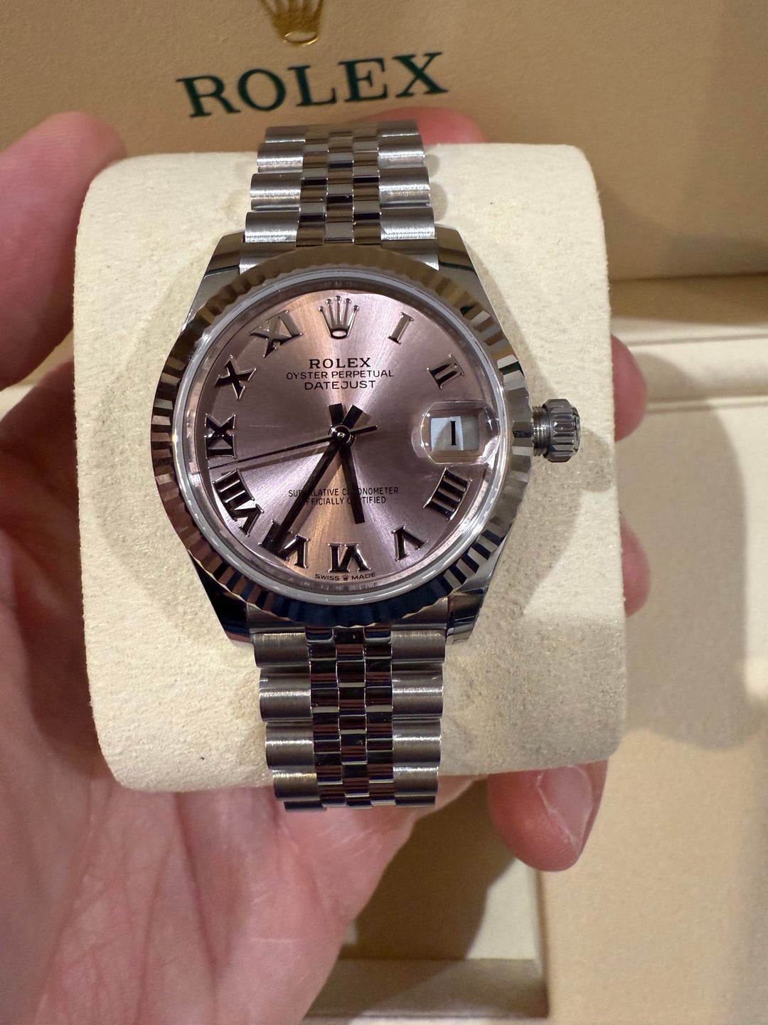 [WTS] Brand New - Rolex Datejust 31mm 278274 - Pink dial with Roman markers and fluted bezel on jubilee - Full Set