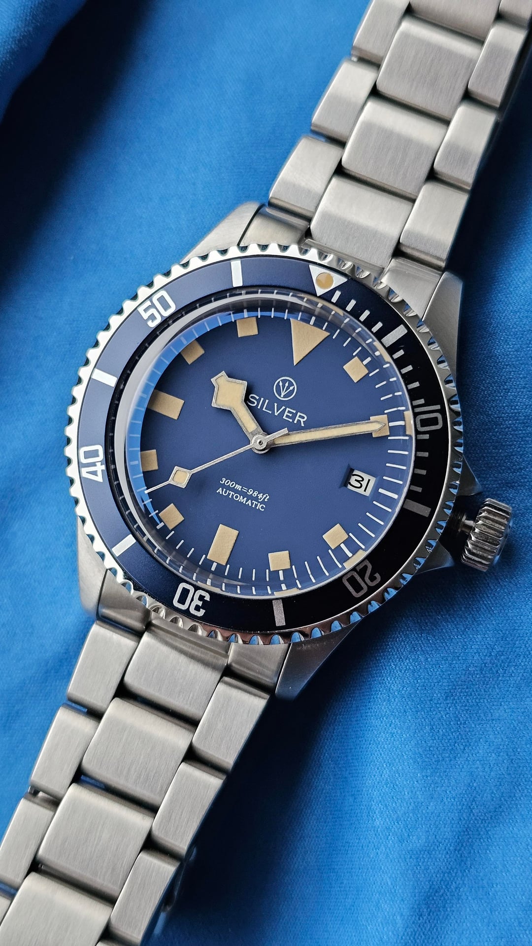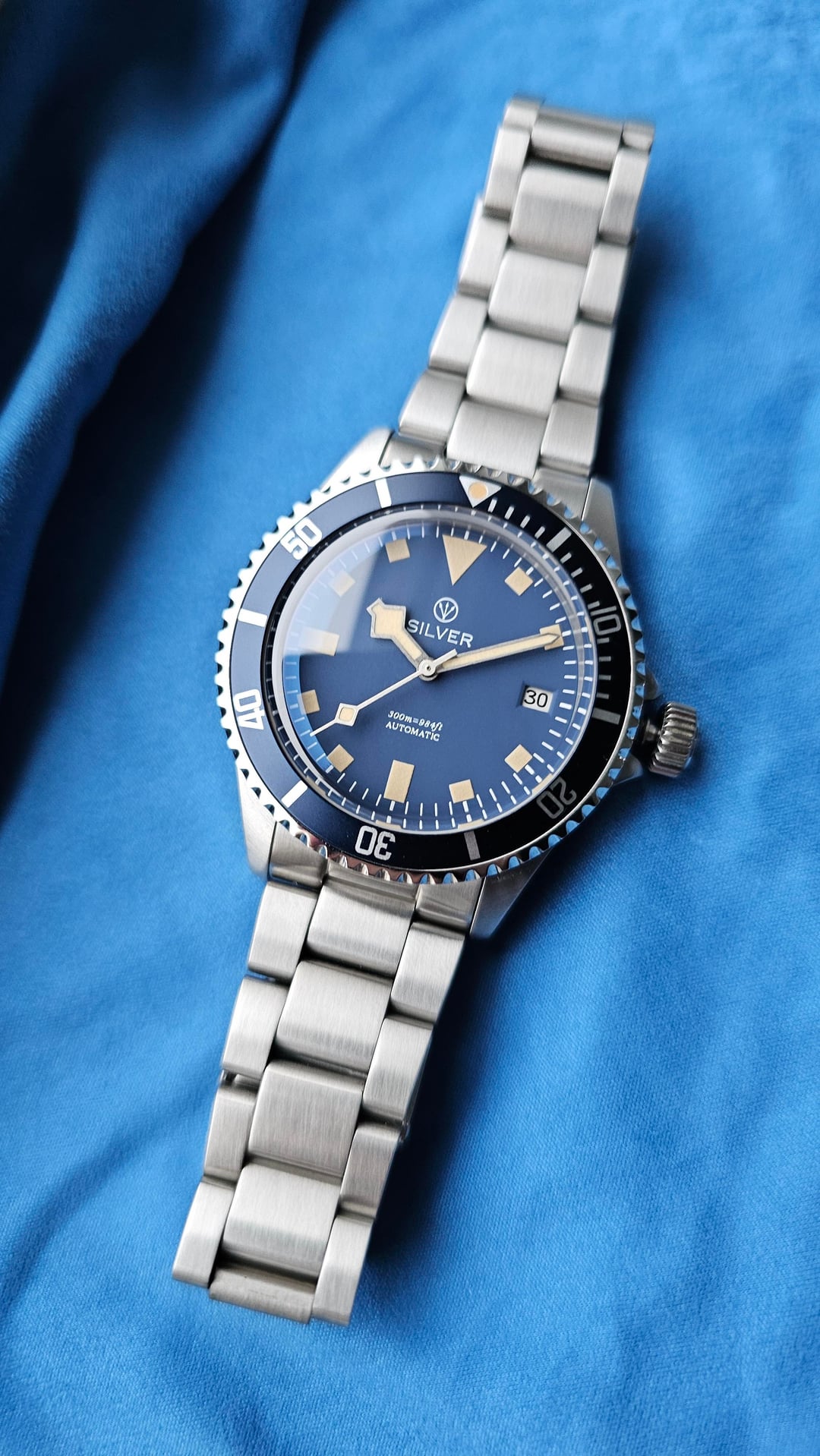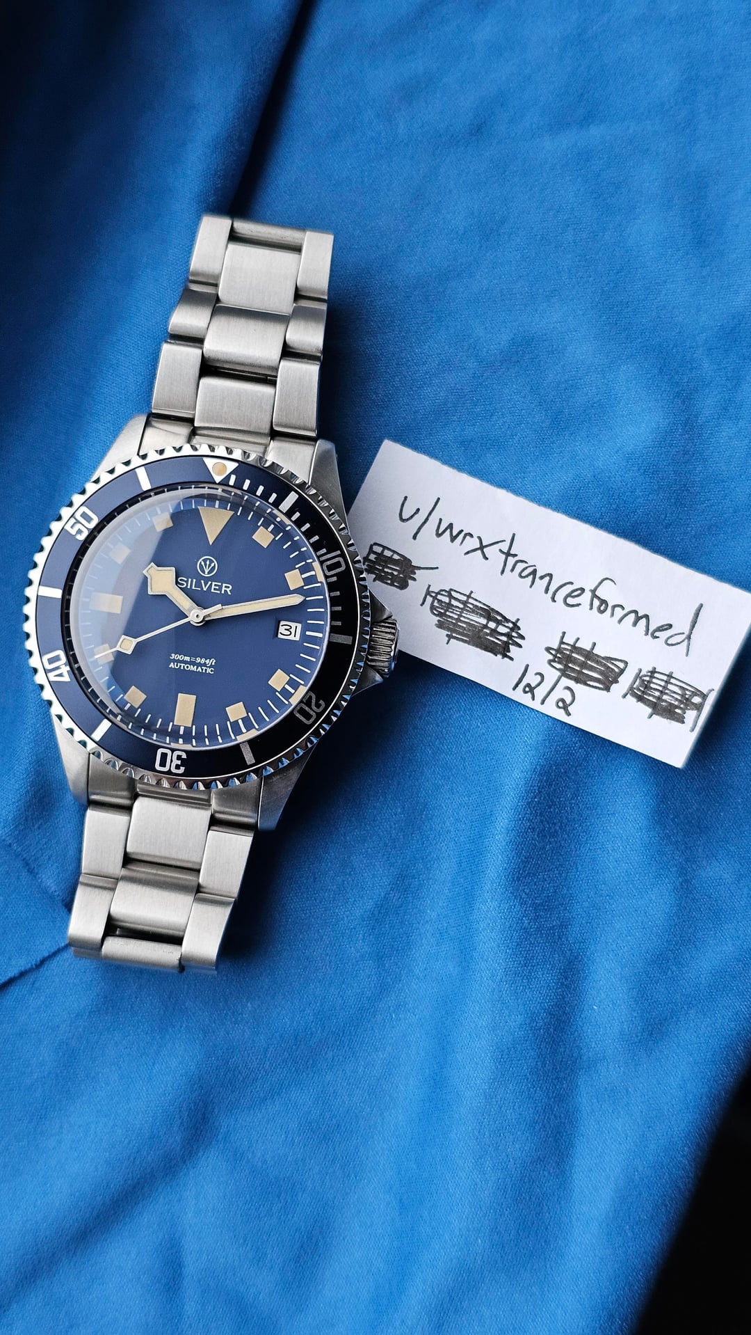 Hi folks! Another one for sale from my personal collection as I pare things back a little bit, the rarely seen and IMO the best vintage sub homage out there – the Silver Watch Company Archetype One with gorgeous blue snowflake dial! Built for the now defunct Silver Watch Company by the also now defunct Manchester Watch Works, this is genuinely one of the highest quality microbrand models at the price point that I’ve ever handled. The case specs are awesome: 39.5mm x 47mm x 12.5mm thick (including the boxed sapphire crystal) with drilled 20mm lugs. It is 300m rated with an outstanding bracelet for the price tapering to 16mm at the clasp. It is powered by the Miyota 9015 movement which is running within specs. The snowflake hands and dial give strong vintage Tudor sub vibes and the vintage lume is so thick that it actually performs very well! The bezel insert is aluminum and the bezel is very crispy / rewarding. This watch is extremely comfortable to wear and gives you 99% of the 5 digit sub vibe on the wrist for a fraction of the cost. Condition wise I would put this at 98%. I purchased this directly from Silver back in 2019 and it was worn very sparingly in a constantly changing, large collection. I can’t find any significant swirls or dings / dents on the case, even in the high polished areas. The crystal and bezel insert are free from blemishes. The bracelet has only very minor signs of wear in the areas in which it was contacted by the clasp pieces. This is kind of a time capsule! Includes the extra links, warranty card (expired obviously) and a branded two watch travel case. Timestamp for Reddit: [https://preview.redd.it/wts-silver-watch-co-archetype-one-snowflake-blue-dial-v0-bpsrt9hr5v4g1.jpg?width=1080&crop=smart&auto=webp&s=58b54da272c5a185563d7eb9e9a79d4e7bc072c3](https://preview.redd.it/wts-silver-watch-co-archetype-one-snowflake-blue-dial-v0-bpsrt9hr5v4g1.jpg?width=1080&crop=smart&auto=webp&s=58b54da272c5a185563d7eb9e9a79d4e7bc072c3) I am asking $375 net to me including fully insured shipping in the US. Not interested in trades at this time, trade offers will be ignored. Please message me with any questions or interest and thanks for looking!