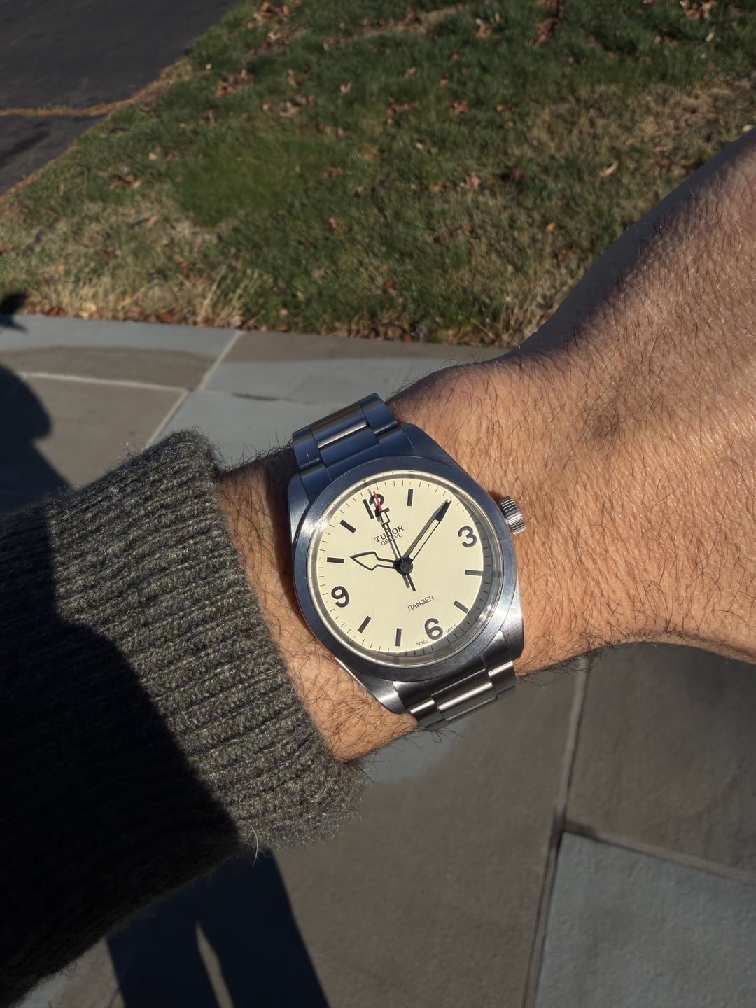 For sale is the new Tudor Ranger 36mm in “Dune” - Full kit. I purchased this watch from my AD on release day, but am selling as I got a call for another watch that I need to make room for. I have a few transactions on Reddit but can be found on IG u/vintage.robi. Happy to provide additional references. Condition: Like new. Worn only a few times in the last week. Case back sticker still in place. Box and Papers: Yes. Dated November 2025. Includes hand tag, user manual, warranty booklet, international guarantee, and extra links. Please see pics with timestamp. Happy to provide any additional pics/details. 💰 Price: $4,100 (includes shipping to US) 💲Payment: Zelle or Wire 📫 Shipping Method: Fedex Priority Feel free to reach out with any questions. Thanks!
