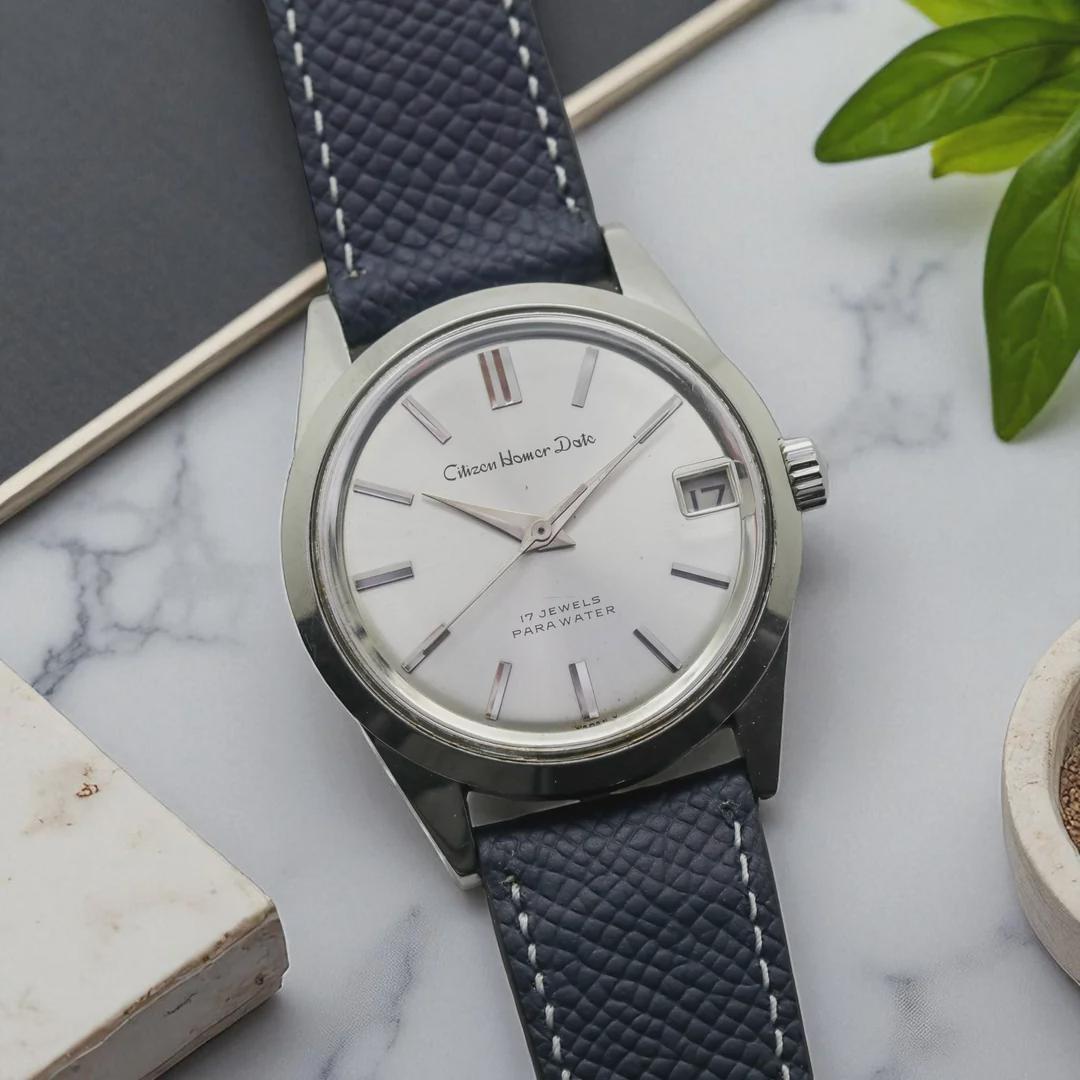The Homer was first produced in 1960 and was developed to compete with Seiko's Lord Marvel series. It used their cal. 020 movement and was later adopted by the Japanese National Railway which required a high precision watch. Brand: Citizen Model: Homer Date Movement: Cal. 020 Case: 35mm Lug to lug: 43mm Lug width: 19mm Strap: Epsom calf Box/papers: No Location: Los Angeles Price: ONLY $399! CONDITION & SERVICING \-The dial and hands are in excellent condition. \-Case is unpolished and edges are sharp. \-The watch was recently serviced by our watchmaker. Pictures/Timestamp: [https://imgur.com/a/SXDlGdl](https://imgur.com/a/SXDlGdl)