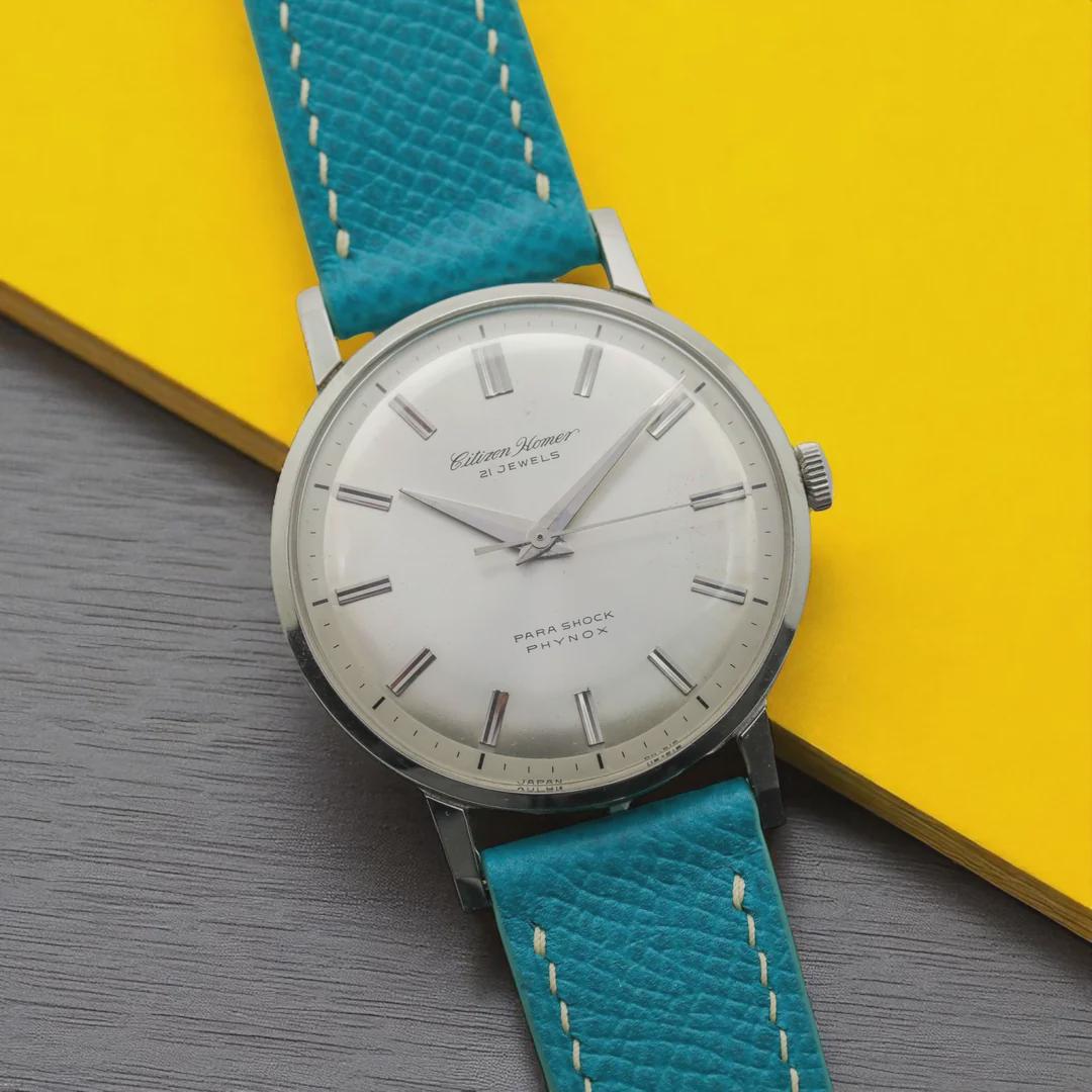 The Homer was first produced in 1960 and was developed to compete with Seiko's Lord Marvel series. This piece was found in new old stock condition. It comes with the original strap, buckle and tag. Brand: Citizen Model: Homer Date Movement: Cal. 020 Case: 35.5mm Lug to lug: 44mm Lug width: 19mm Strap: Epsom calf Box/papers: No Website: [keepiece.co](http://keepiece.co/) Location: Los Angeles Price: $799 or best offer! Pictures/Timestamp: [https://imgur.com/a/jKZ1BHR](https://imgur.com/a/jKZ1BHR) CONDITION & SERVICING \-The dial and hands are in excellent condition. \-Case is unpolished and edges are sharp, in like new condition. \-Recently serviced by our watchmaker.