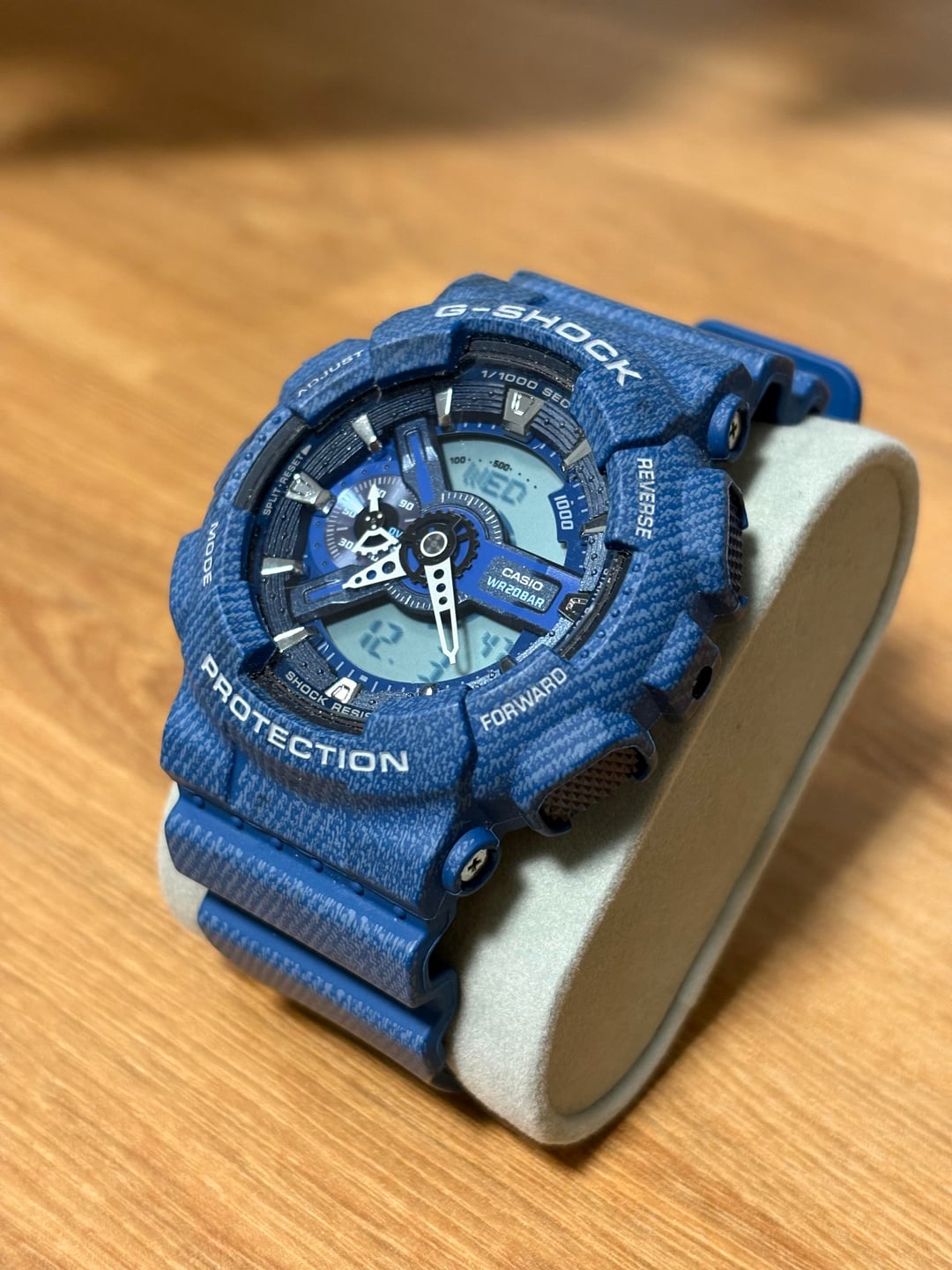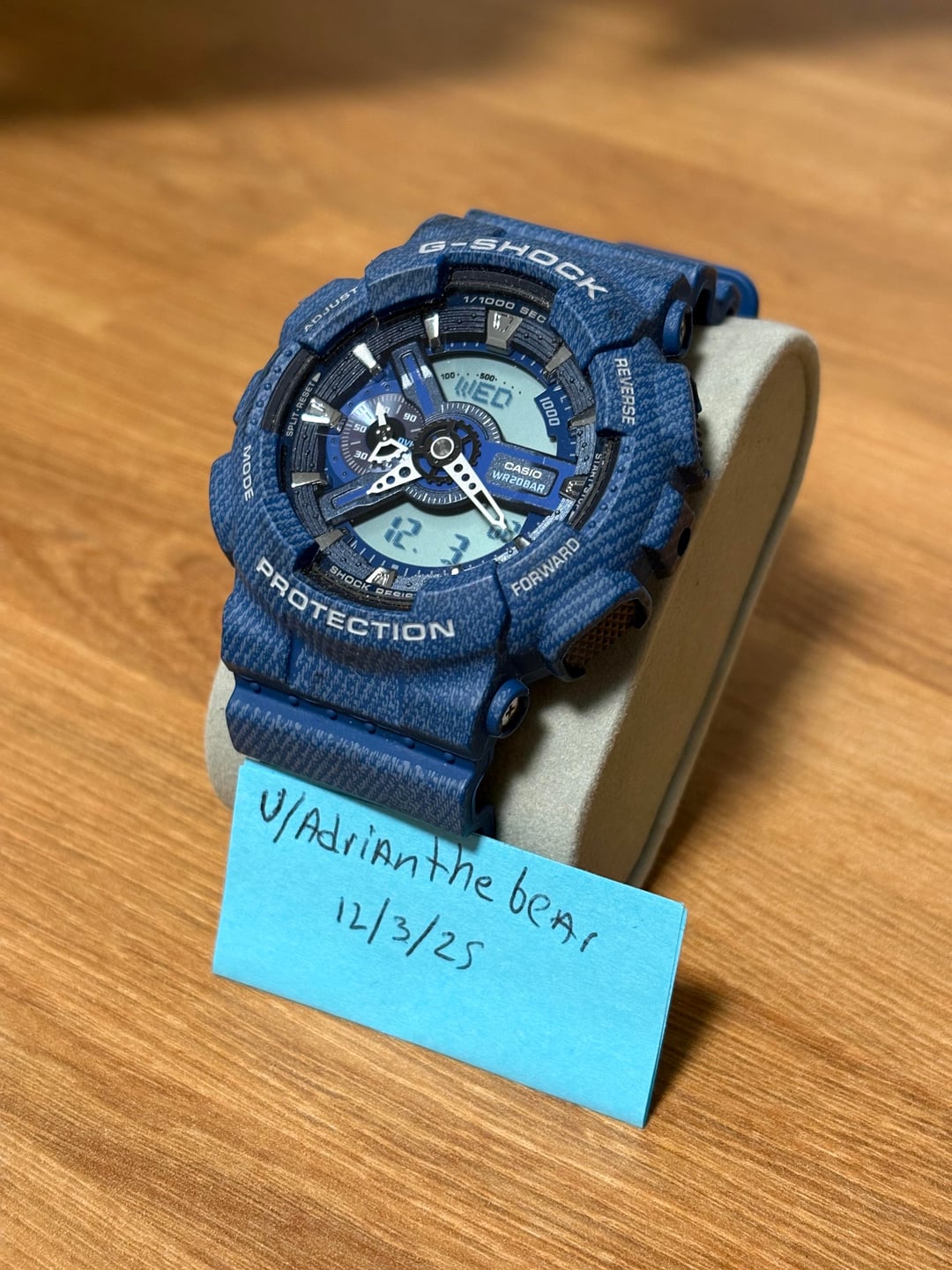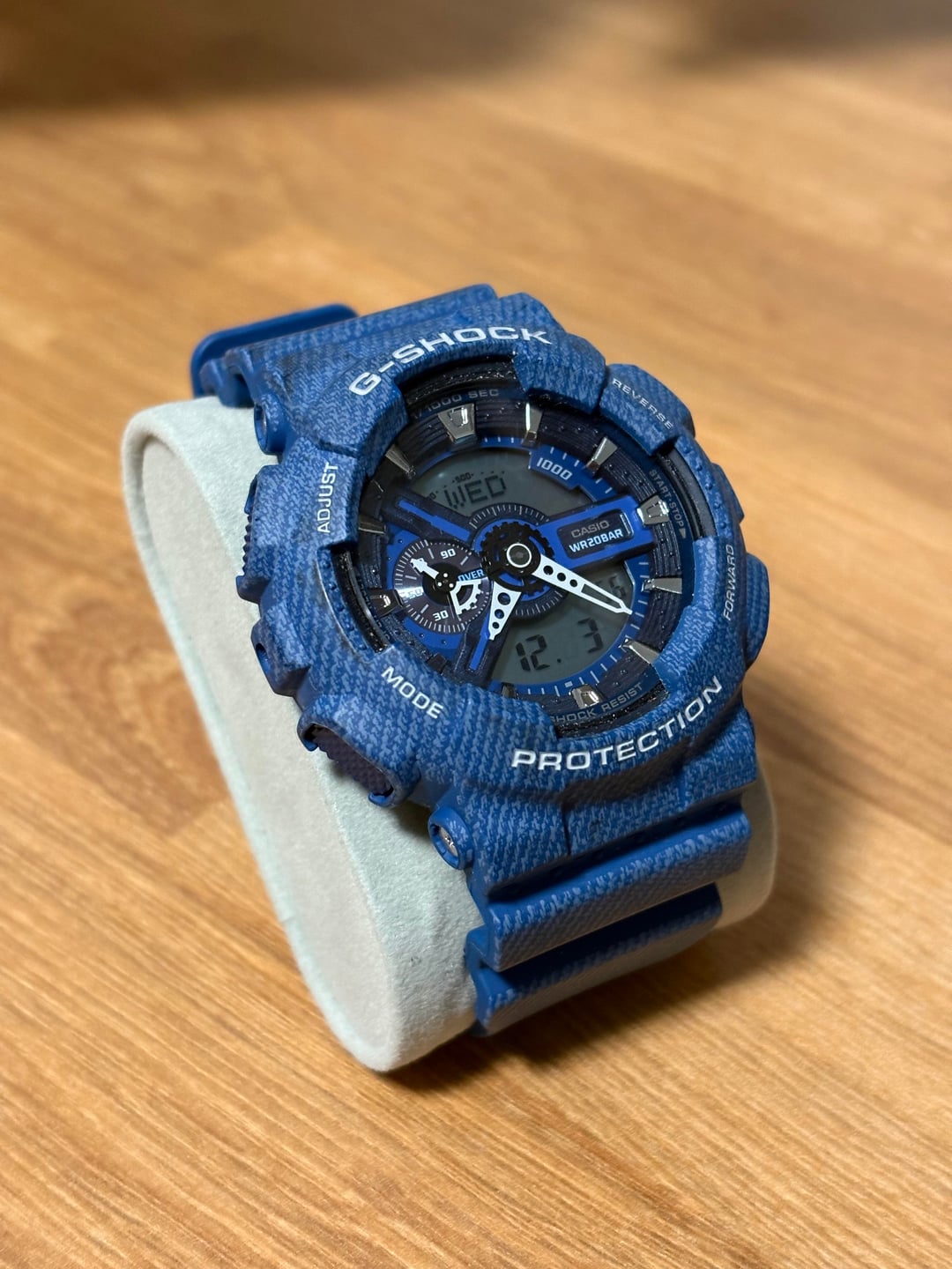 For Sale: Casio G-Shock GA-110DC “Blue Denim” Up for sale is my GA-110DC Blue Denim G-Shock in excellent condition. The case and bezel look great throughout, with no cracks, chips, or major wear. The crystal is clean, and all functions work perfectly—including the LED light, stopwatch, timer, and world time. Strap and buckle are in great shape with minimal signs of use. A durable, unique denim-texture G-Shock that’s perfect for daily wear. Specs: • Model: GA-110DC (Blue Denim Series) • 200M Water Resistance • Shock Resistant • Analog + Digital Display • 1/1000 Sec Stopwatch, Countdown Timer, World Time • Auto LED Light • Magnetic Resistant Timestamp included in photos. $55 SHIPPED within CONUS