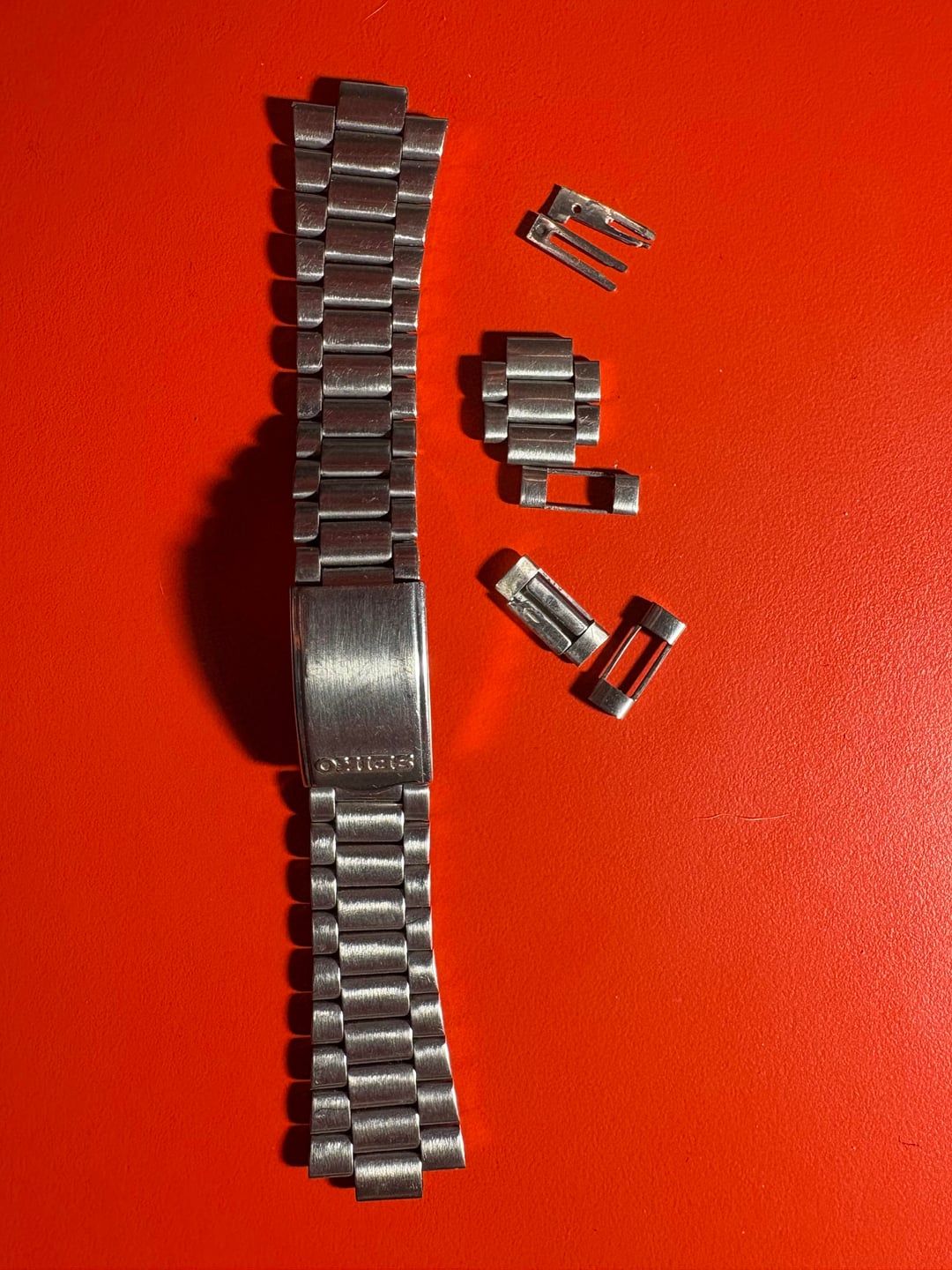 Two Seiko bracelets: 1 Beads of Rice. 18mm. Just under 6" -- on watch it was sized for a 7" wrist. No extra links. 1 Oyster-style. 18mm. Same size as the BOR but a couple extra links. No end links, though I swear they're here somewhere. 1 Basket weave silicone with no branding. Seems unused, but old. Not super soft but not brittle. Asking $110 for the three, or make me an offer for one or two. I'll cover shipping CONUS.