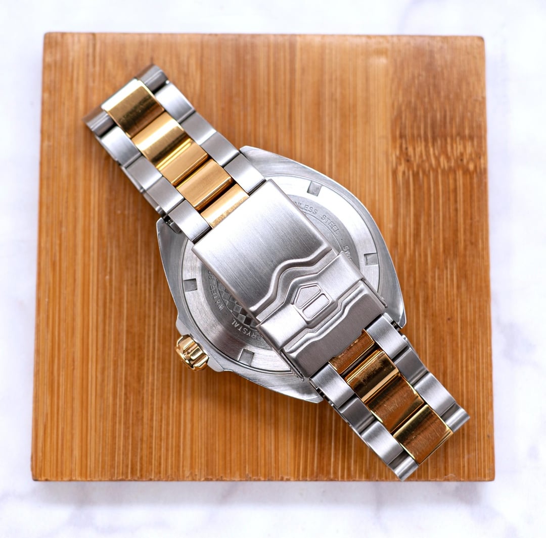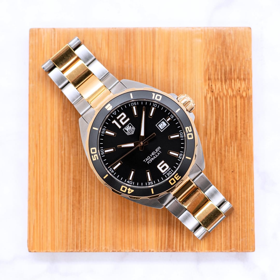 A Tag Heuer Formula 1 Two Tone diver watch with a stunning Black dial in great condition. Clean dial with straight luminous indices. Robust unique shaped case. Very solid build quality. Bezel rotating fine. Sapphire crystal. Comes with the original signed two tone bracelet. The polished part of bracelet has some hairline scratches on it. Signed crown. This model is seldom seen and a great collectible. Creative design makes it a conversation piece. Only Watch. Overall a great piece at a good price. Official website for this watch: [https://www.tagheuer.com/int/en/timepieces/collections/tag-heuer-formula-1/41-mm-quartz/WAZ1121.BB0879.html](https://www.tagheuer.com/int/en/timepieces/collections/tag-heuer-formula-1/41-mm-quartz/WAZ1121.BB0879.html) PRICE: $799 USD via Paypal, Wise, Crypto. FREE 5 day DHL shipping worldwide. I have a good number of exchanges here for a safe transaction. Check my Instagram: [https://instagram.com/hour.lust](https://instagram.com/hour.lust) * Reference Number: WAZ1121.BB0879 * Case size: 41 mm (without crown) * Lug to lug: 46 mm * Thickness: 12 mm * Movement: Quartz Pics: [https://imgur.com/a/AVP4Qqu](https://imgur.com/a/AVP4Qqu) TS: [https://imgur.com/a/2DQmh2P](https://imgur.com/a/2DQmh2P)