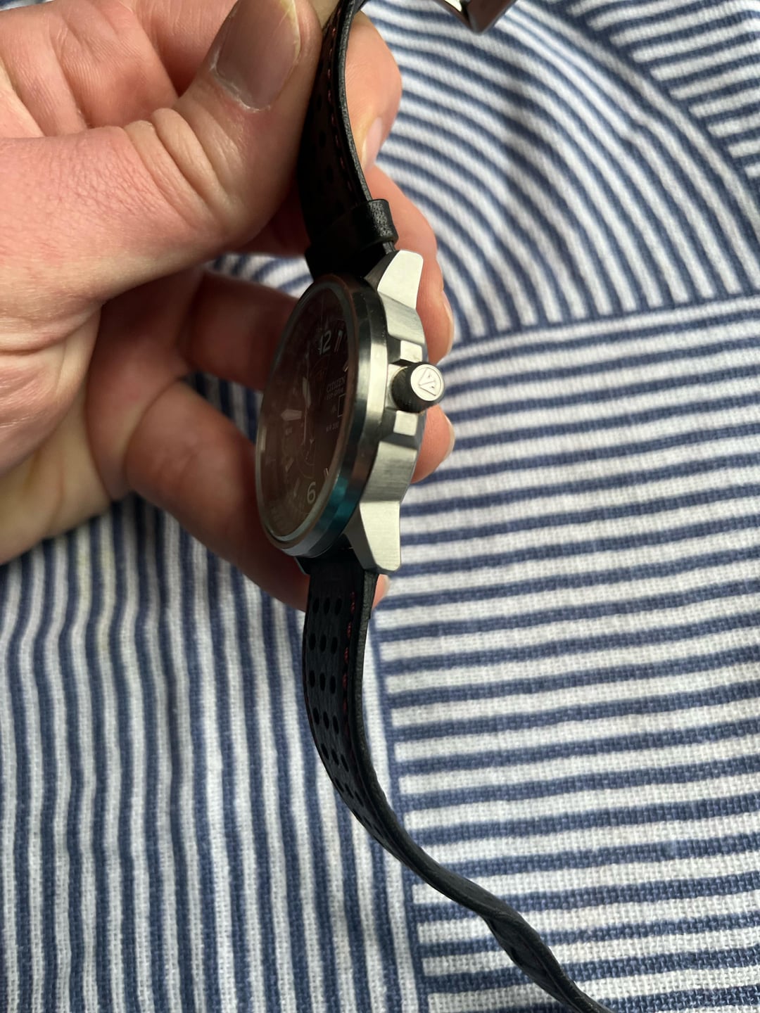 Watch is well worn but working well and still has a ton of presence. One significant scratch on the crystal, no affect on operation but crown is ever so slightly bent. Original strap on good condition and includes clasp. $110 conus, PayPal, Venmo, Zelle. Will look at trades but mostly looking for sale, thanks.