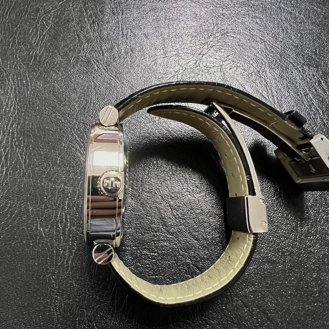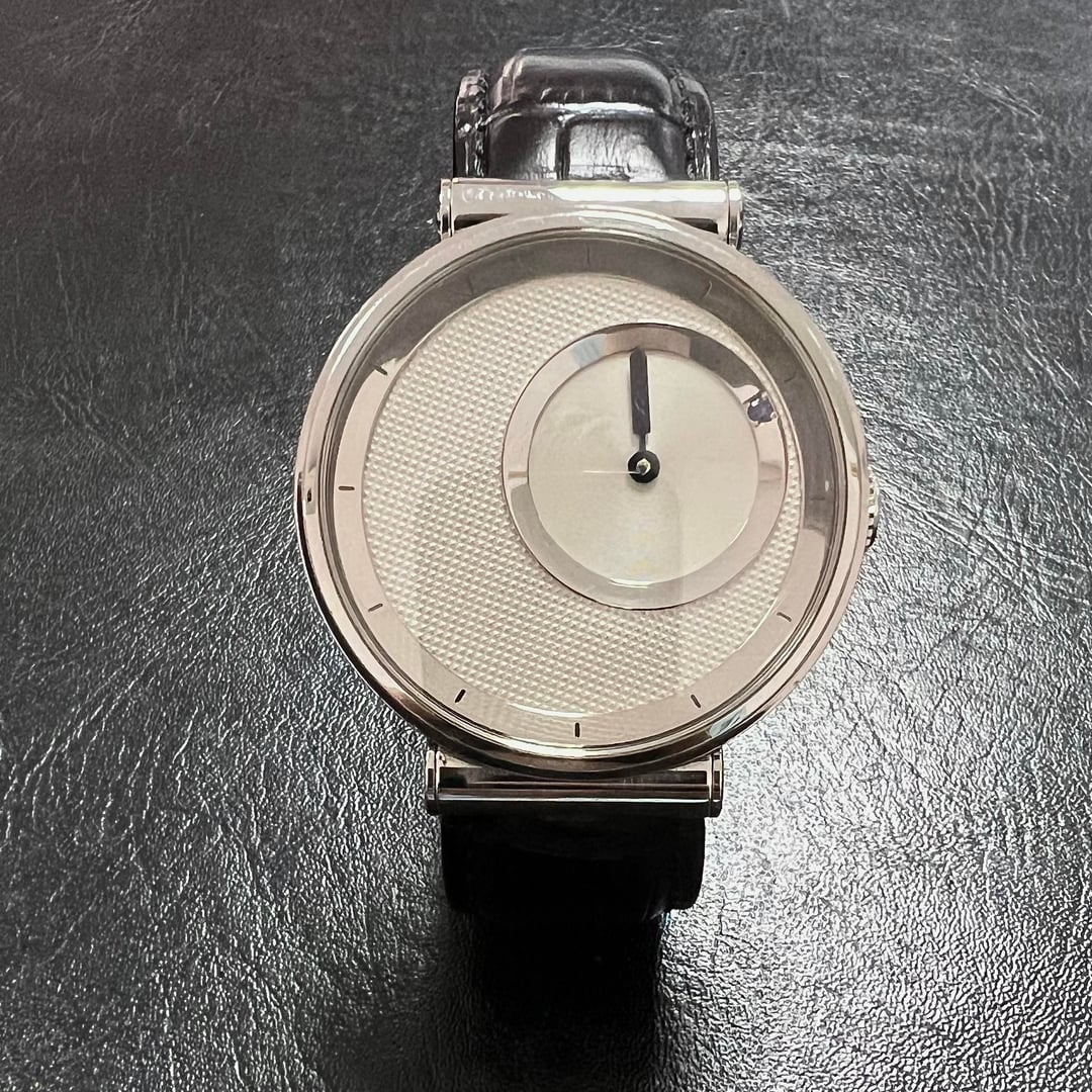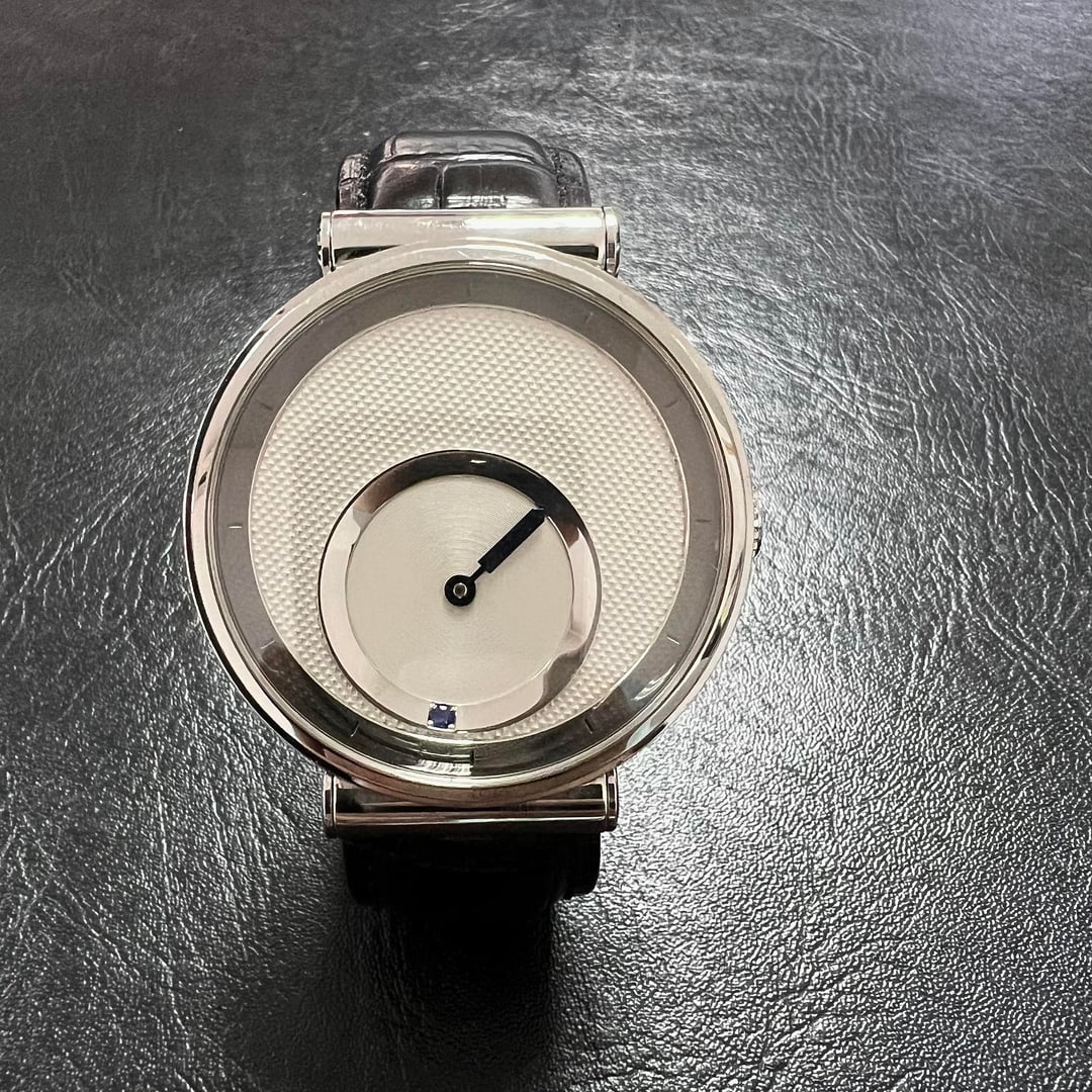 [WTS] German independent watchmaker Bernhard Lederer Universe (blu) Planet Paris minimalist design automatic dress watch circa 2005 with rotating dial orbits silver Clous de Paris finish horizontal tube lugs discontinued model full set