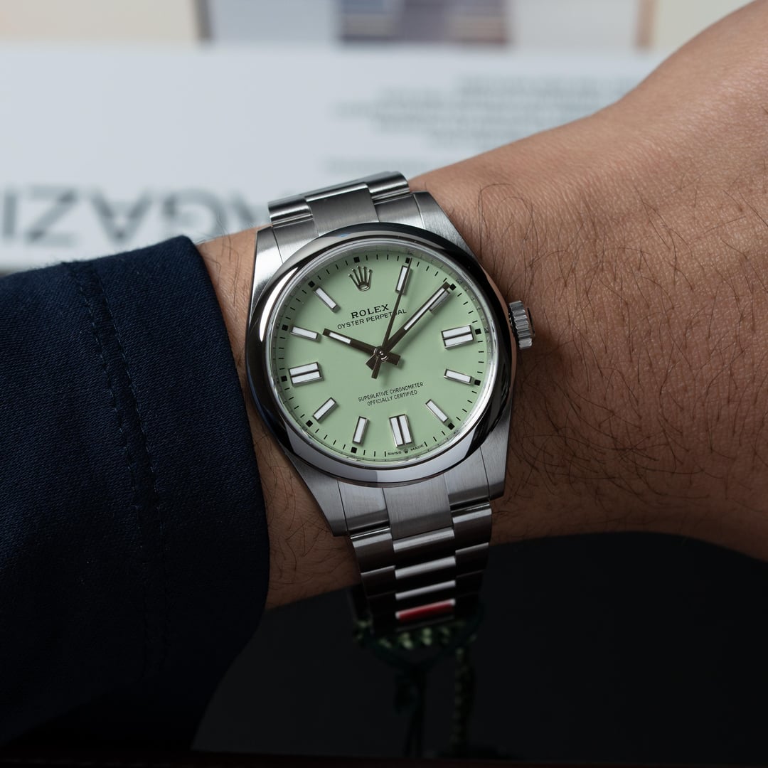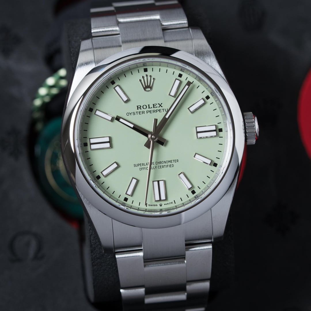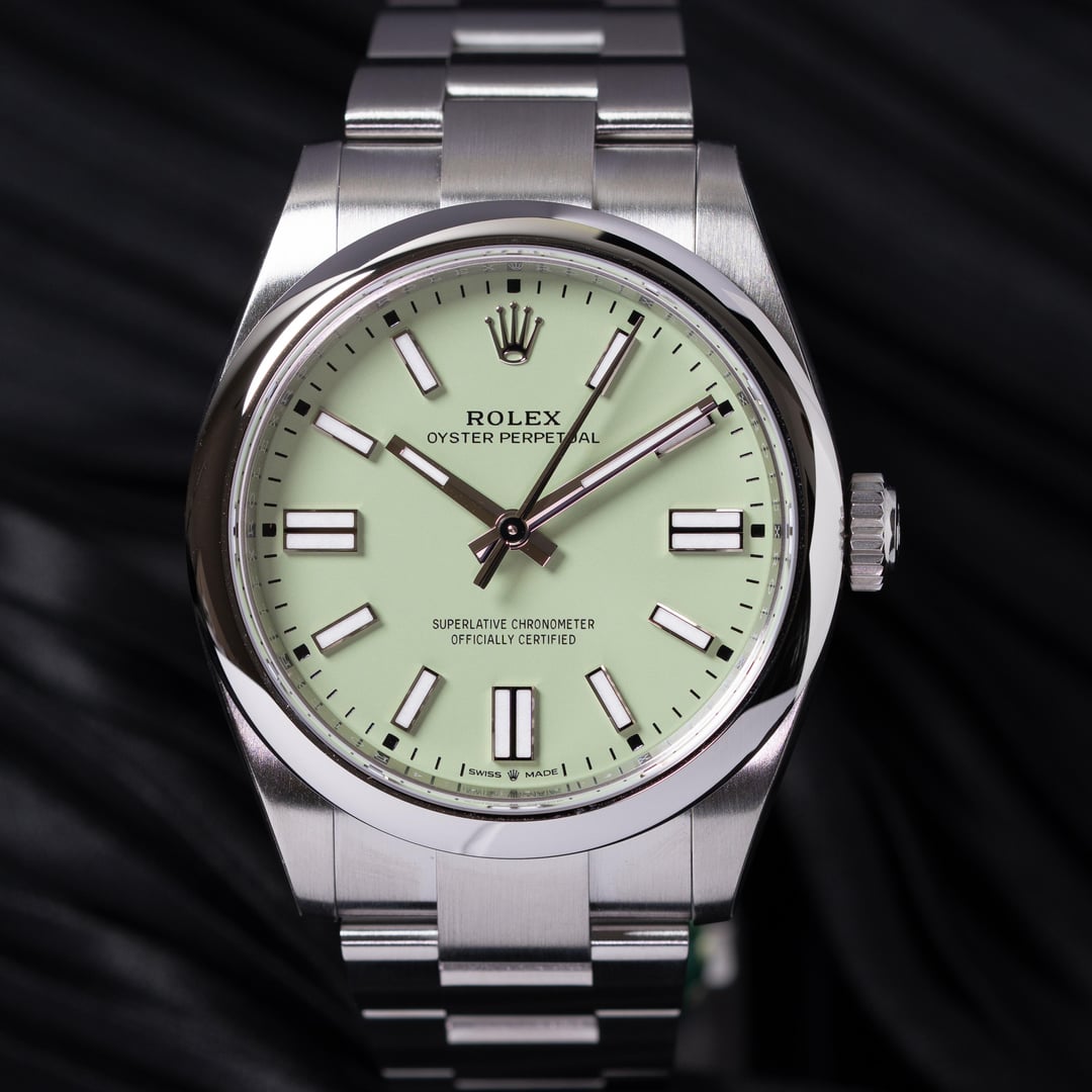 ![Thumbnail [WTS] Rolex Oyster Perpetual 41mm Ref. 134300 Pistachio Green Dial, BNIB w/FULL STICKERS! Complete Set 2](https://cdn-cf.watchpatrol.net/120x120/img/full/8432fdcdd3e063b3d9df146d1f0dbd14632acc59.jpg)
