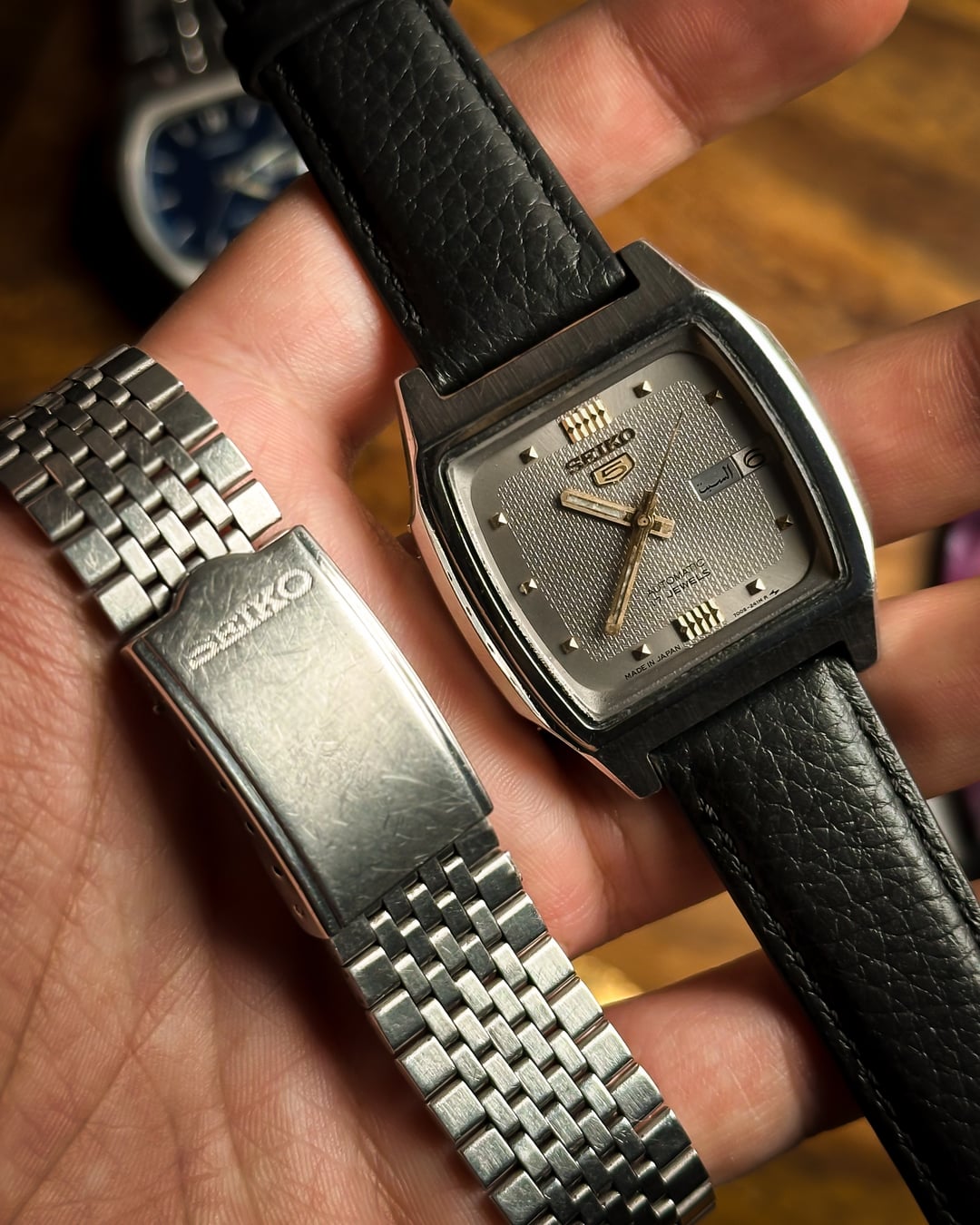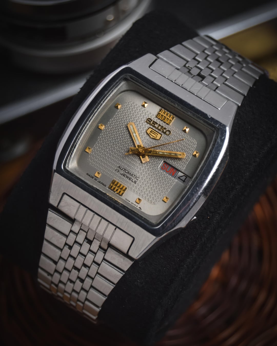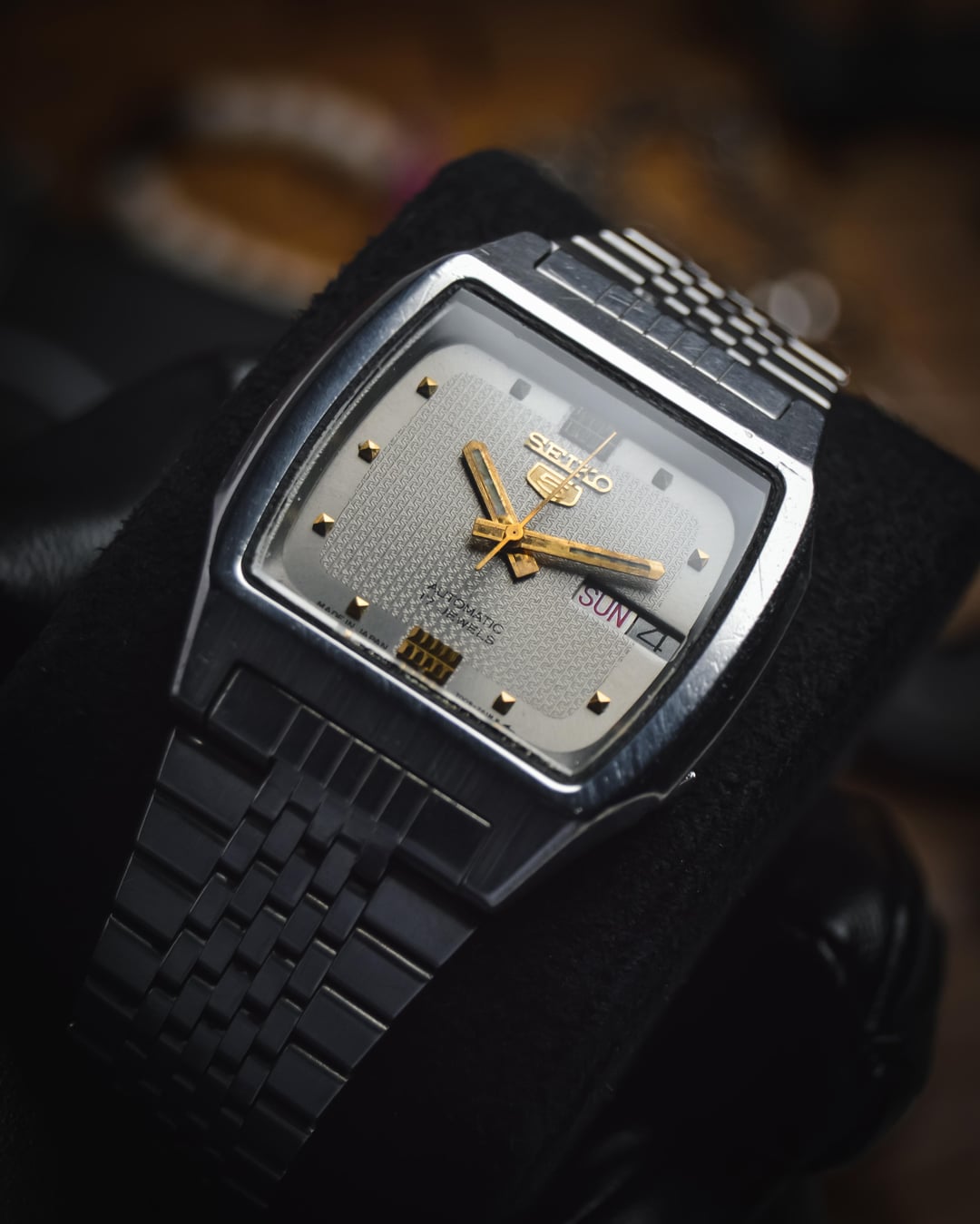 [Timestamp](https://postimg.cc/QVccktVK) Hey Watchexchange! This is the **Silver Guilloche TV**—a nickname we gave this automatic Seiko 5 to celebrate its striking **guilloche textured silver dial** set within the bold, geometric **"TV" cushion case**. Dating from **1981**, this watch is a fantastic example of late-70s/early-80s style, offering a great vintage look and reliable automatic performance. The dial is the star: a crisp **silver color** with a unique and refined **guilloche textured finish** (an intricate, repeated geometric pattern) that gives the watch quiet sophistication and depth. It features **gold-toned applied pyramid indices** and **baton hands**, which provide excellent contrast. The case features the iconic **TV shape** that was highly popular in this era, giving it a substantial wrist presence despite its modest size. The case is finished in stainless steel. Inside beats a dependable **17-jewel automatic Caliber 7009** movement, known as a true Seiko workhorse. It is currently paired with an original stainless steel bracelet and a brand new leather strap. **🔹 Key Dimensions** * **Case Diameter:** 36mm (without crown) * **Lug-to-Lug:** 40mm * **Thickness:** 10mm * **Lug Width:** 18mm 💵 **Price: $135 shipped!** 📦 **Payment: PayPal F&F** or G&S (**+4.5% fee by buyer**) or **bank wire (US banks accepted)** 📩 DM me for more pics or a custom timestamp. If you’re after a unique, geometric vintage Seiko 5 with a beautiful guilloche textured dial, this watch delivers classic style at an excellent price. Follow my [**Instagram**](https://www.instagram.com/everistwatches/) and **Reddit profile** for more **vintage drops**.