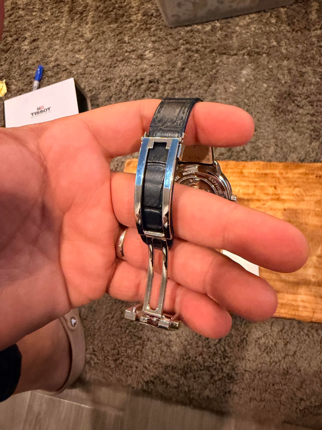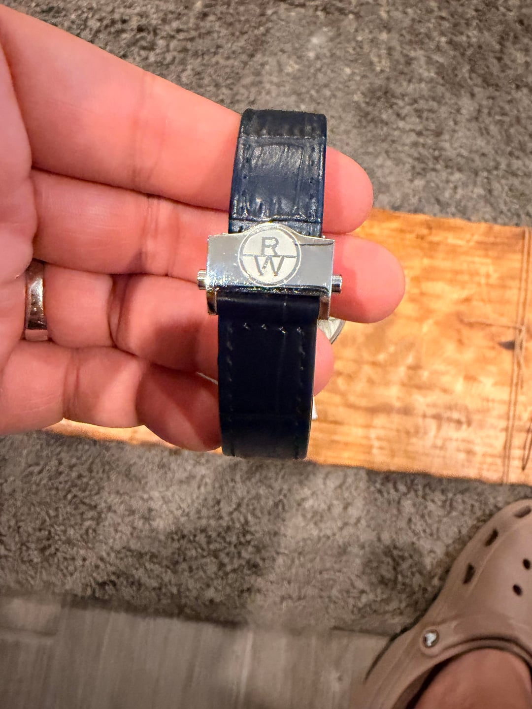 Up for sale is the Raymond Weil Maestro "Open Aperture" in salmon/blue. A really unique color combination that I think is absolutely gorgeous. The watch body is in great condition with faint hairline scratches that you really have to look for. The clasp does have some more noticeable but just normal wear. I hate to get rid of this one but it deserves to be worn more than I have worn it. Reference: 2227-STC-00808 Quick Specs: 40mm case 9.2mm thick Modified eta2824, visible through the lil salmon peep hole at 12 20mm navy blue 'gator printed leather with a really nice deployant clasp. Comes: Watch & Box only. Asking $850 shipped CONUS Payment accepted: Zelle, PayPal FF & add 3% for GS Thanks for looking.