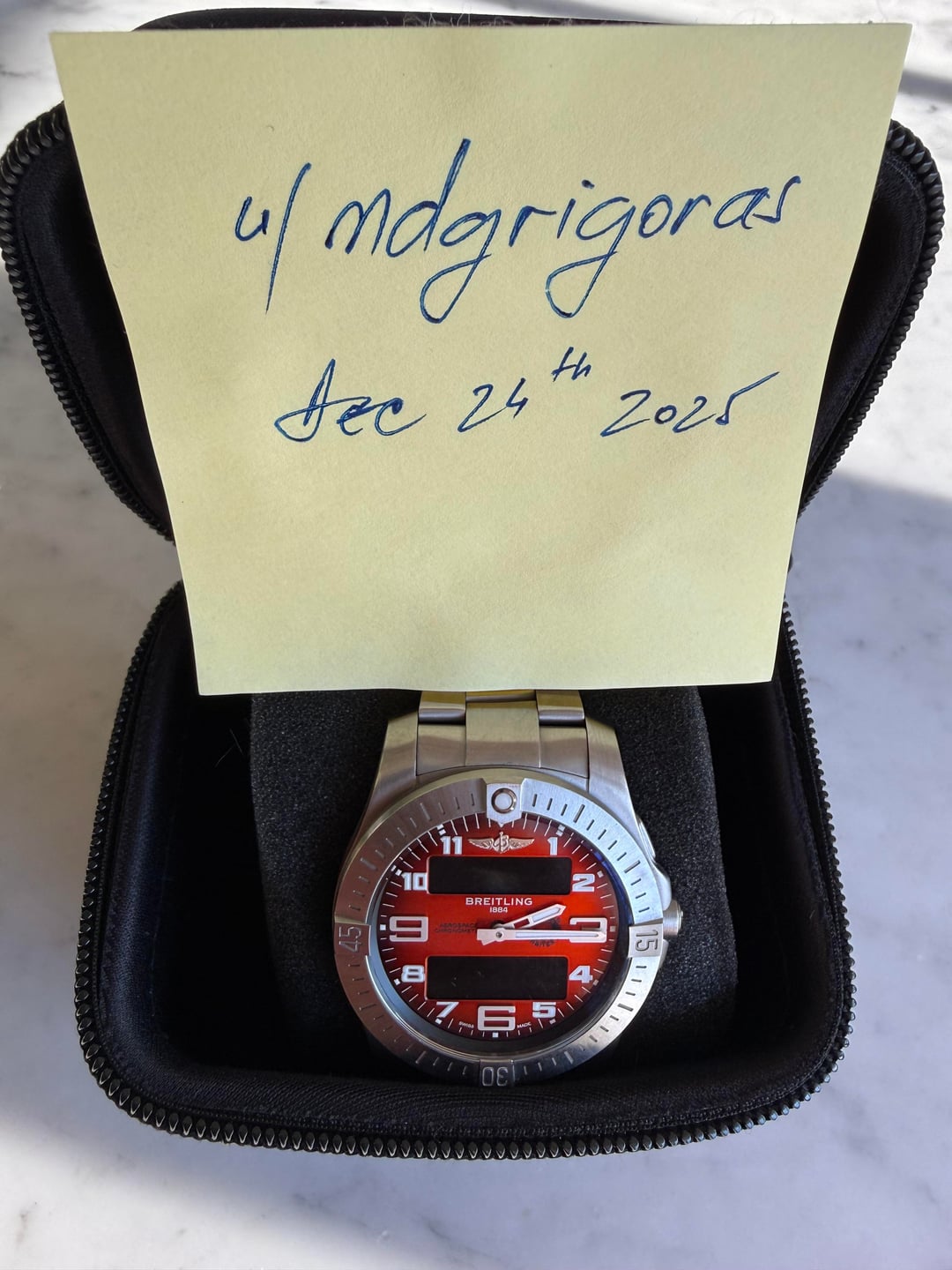 [WTS] Breitling Aerospace Orbiter 3 Special Edition – Complete Set – Freshly Serviced 📍 Location: New York, NY 💵 Price: $3499 shipped CONUS (Net to me) 📅 Timestamp: https://imgur.com/gallery/o3ts-JqObtCS Up for sale is my Breitling Aerospace Orbiter 3 Special Edition, offered as a complete set and freshly serviced by Breitling. This is a unique piece celebrating the historic Orbiter 3 flight. **Watch Details** • Model: Breitling Aerospace Orbiter 3 Special Edition • Titanium case, digital + analog functions • SuperQuartz movement (accurate + reliable) • Full functions working perfectly **Condition** • Very Good (only some scratches/scuffs on the bracelet clasp) • Fresh Breitling service completed — service docs included • Bracelet excellent with minimal wear **Included** • Breitling Aerospace Orbiter 3 watch • Full accessories: boxes, booklets, service paperwork, original warranty + paperwork, etc • All bracelet links **Shipping / Payment** • CONUS priority insured shipping included • Payments: Zelle, Wire, PayPal F&F (Venmo gift as applicable) • No trades, please Happy to answer questions or provide additional photos! 🫡