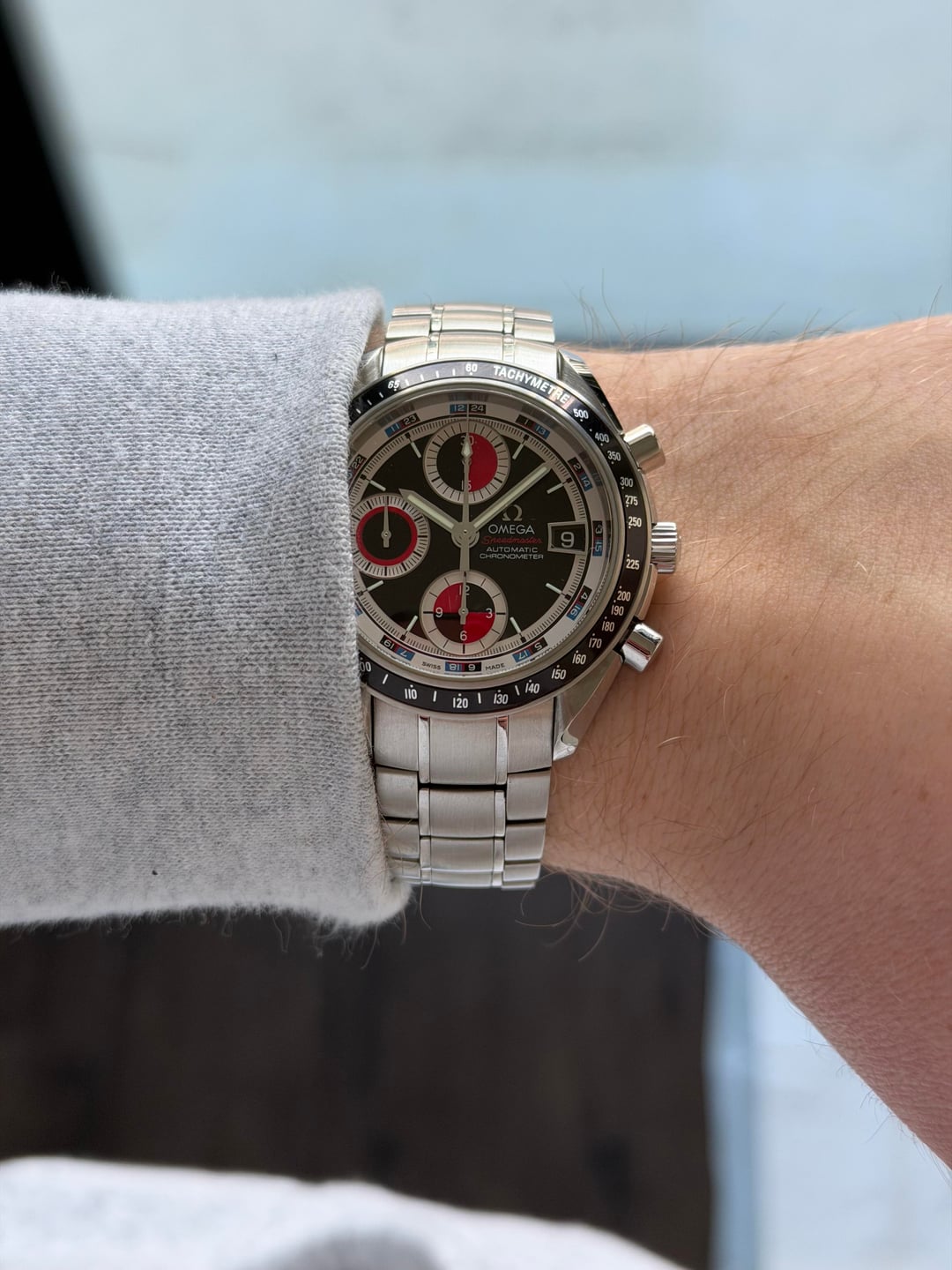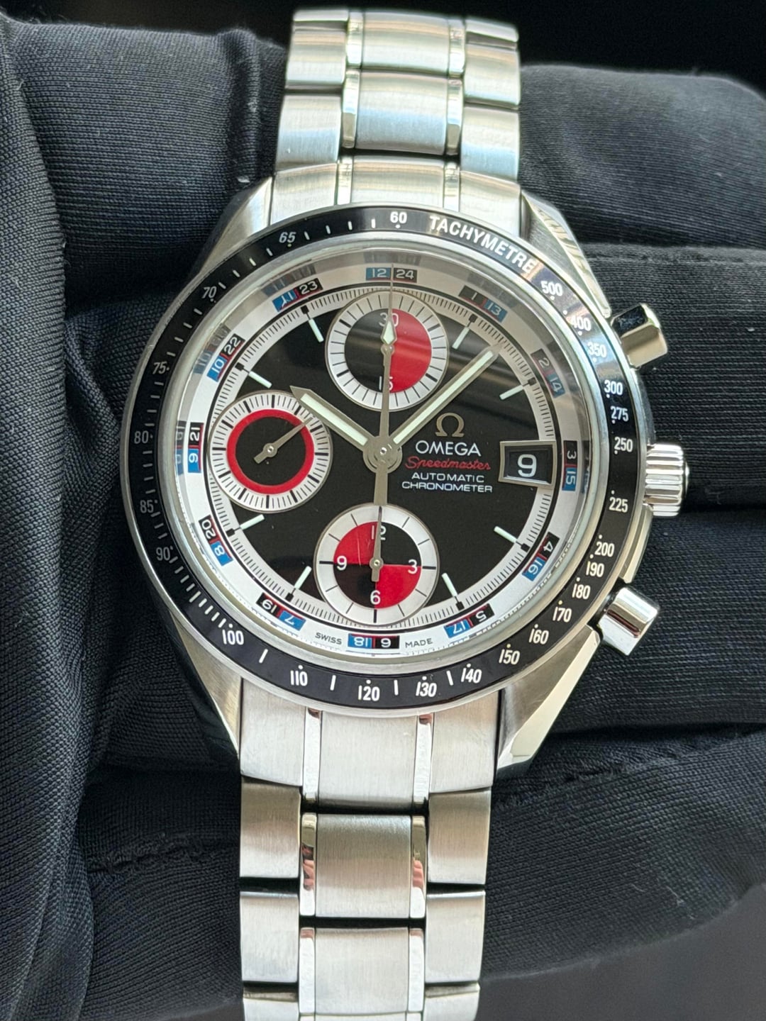 | OMEGA WATCH SPEEDMASTER DATE 3210.52 BLACK/RED STAINLESS STEEL AUTOMATIC MEN'S satoshi1739 (1909) |