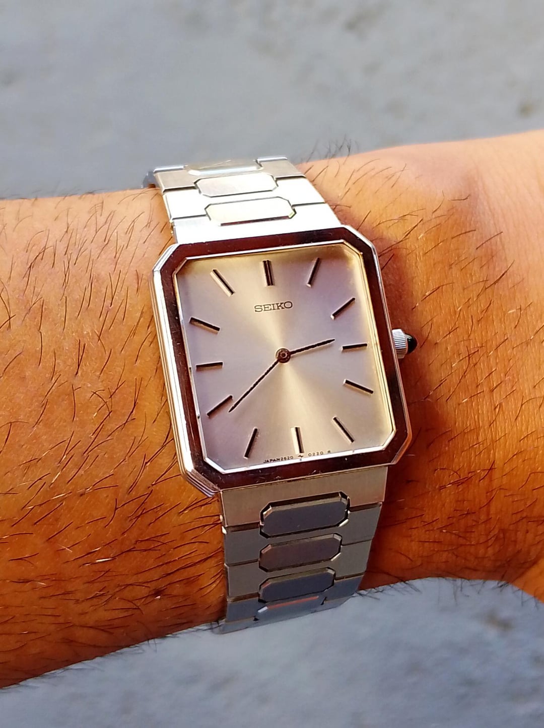 WTS a rare Seiko tank from the late 70’s early 80's Genta style. **Condition:** Good but some use show on the case. Case was never polished. Saphire crystal scratch free. Serviced in 2024 running great. **Size:** 27x28.7mm **Thickness:** 6mm **Bracelet:** 17cm wrist + extra links. **Movement:** 2620 high grade quartz. **Price:** $400 ✅Shipped. ✅Insurance. ✅Fully tracked. **Payment:** Paypal **Location:** Brazil