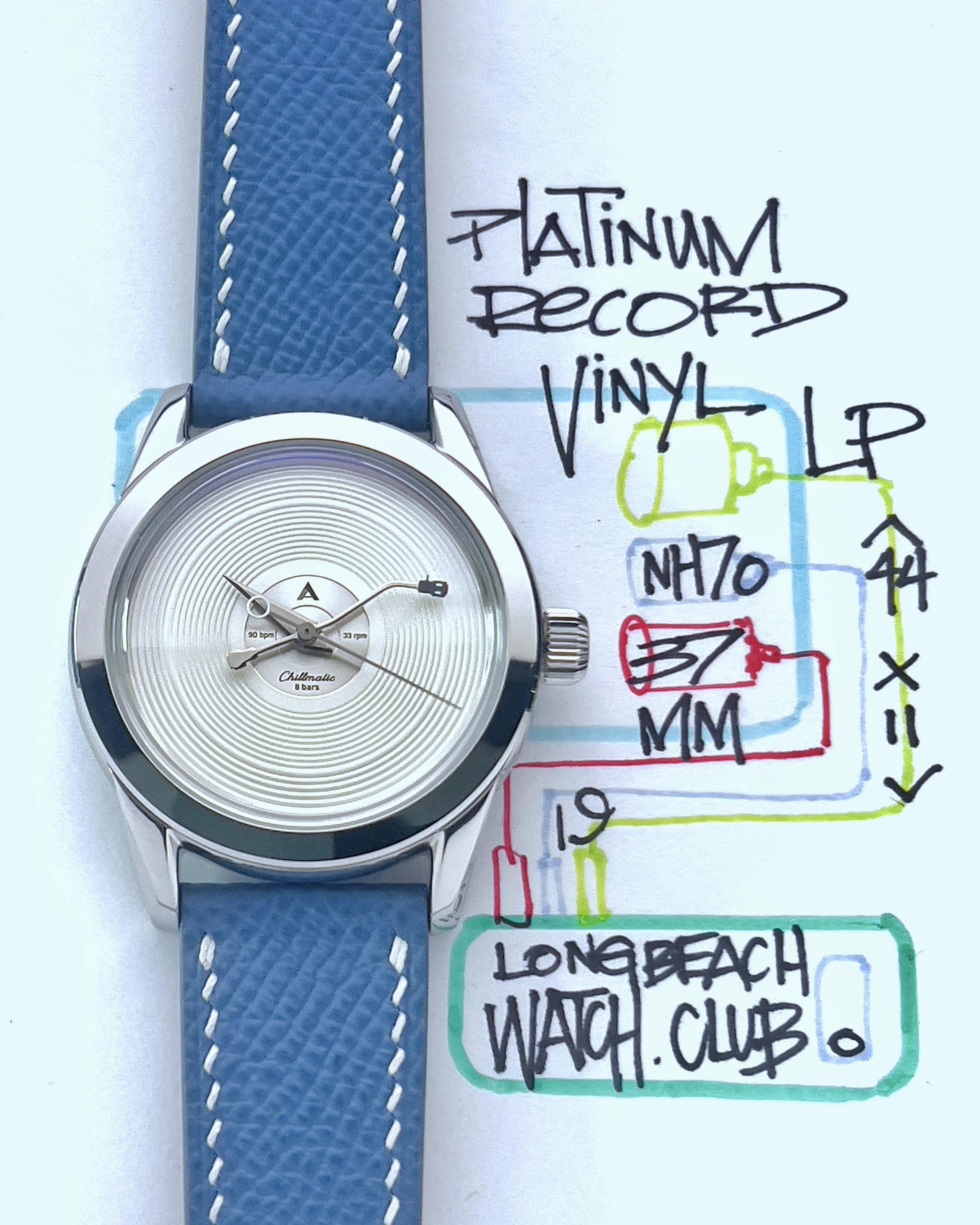 https://www.instagram.com/longbeachwatchclub/ Platinum Record Vinyl Watch Custom Watch For all the HIFI heads and DJs—this is a custom build powered by an automatic NH70 screw down crown by Seiko. Pretty sure this is a piece unique and only another black dial was made. Overall a healthy watch with minimal wear—only worn for a few photo purposes and comes on a fancy quick-release leather strap Timestamp pix Videos and timegrapher: https://drive.google.com/drive/folders/1XneXjL0ZABuEPSrsiHfrcS0JKXmpW-II?usp=sharing Specifications: • Case Width: 37.5mm X Lug to lug: 44.0mm X Case Thickness: 11.0mm (includes the top hat crystal – 9.6mm without it) X Lug Width: 19.0mm Box and papers: no * Video is the best way to view the watch if in-person test drive is not available. Due to the different characteristic of the cameras and gadgets used, the color of the watch you purchase may not be the same as shown on this website or on our Instagram. * will consider trades that make sense but please consider time, shipping, and trade value—not market. - local special: can possibly accommodate at ButterScotch in Downtown Long Beach by appointment - All sales final unless the watch is misrepresented or lost in transit (always fully insured) - Link to [feedback here](https://www.reddit.com/r/WatchExchangeFeedback/search?q=soycowboy&restrict_sr=1&sort=new) & [watchcharts here](https://watchcharts.com/repcheck/user/soycowboy?source=reddit&type=feedback) Asking a *negotiable* **$699** via bank wire, Zelle, venmo, or possibly Apple-pay with super strong references or if I know you. Price includes fully insured Fedex shipping in the USA— hand delivery in long Beach with drinks or coffee on me ;).