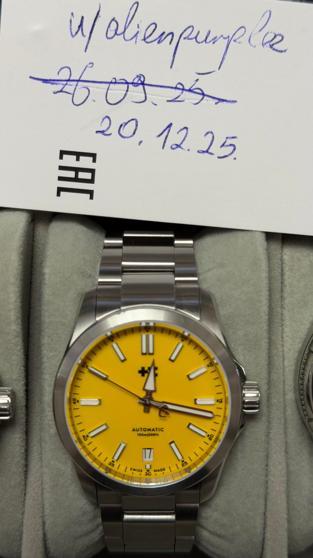 The watch is in excellent condition with minimal signs of wear (light desk dives). Comes in full kit. Vibrant Yellow dial (Limited/Special color). Diameter: 36mm Lug to Lug: 42.87mm Thickness: 11.25mm Case: 316L Stainless Steel Movement: Sellita SW200-1 Automatic Water Resistance: 150m Crystal: Sapphire with AR coating Strap: Steel bracelet with micro-adjust clasp + the original yellow leather strap 1130€ shipped within EU - payment with PayPal FF / Wise / Revolut / Bank / GS (buyer covers fees)