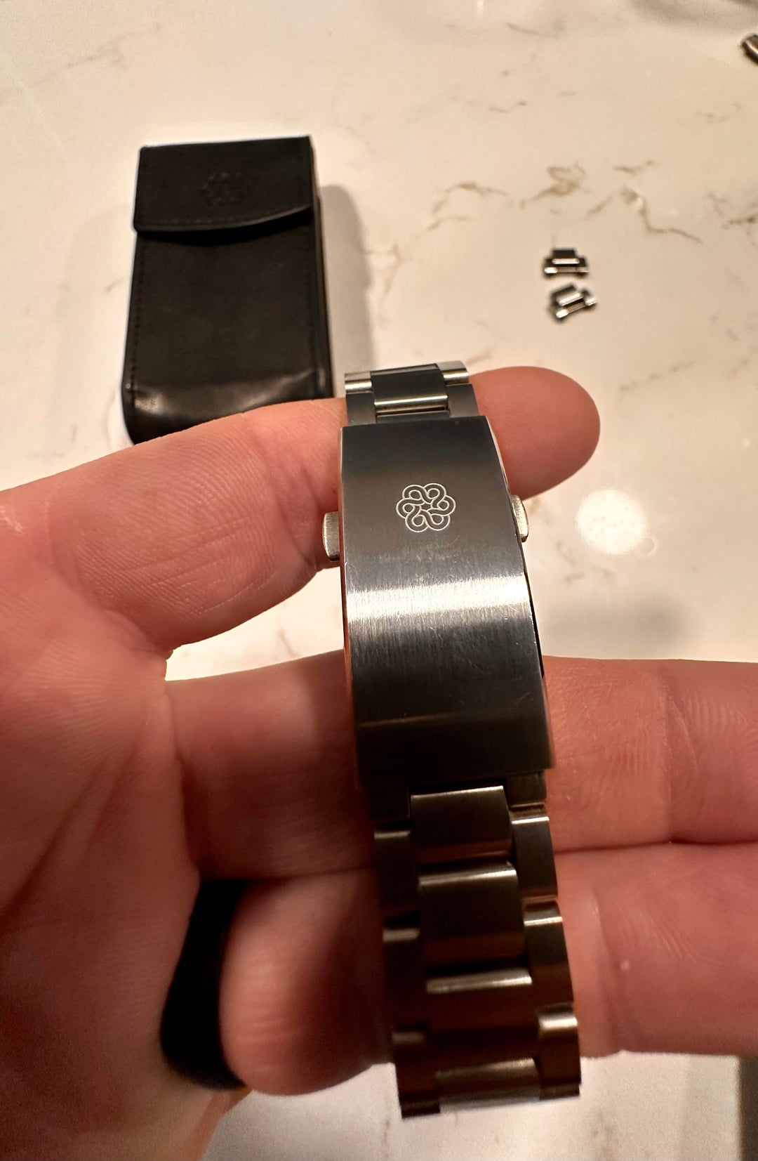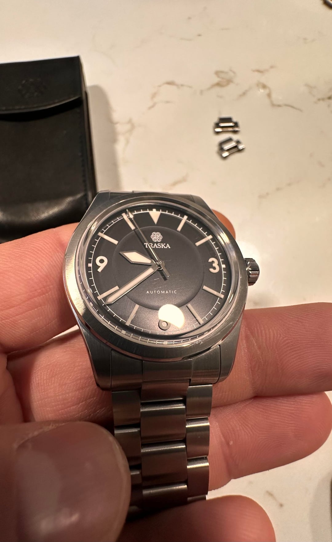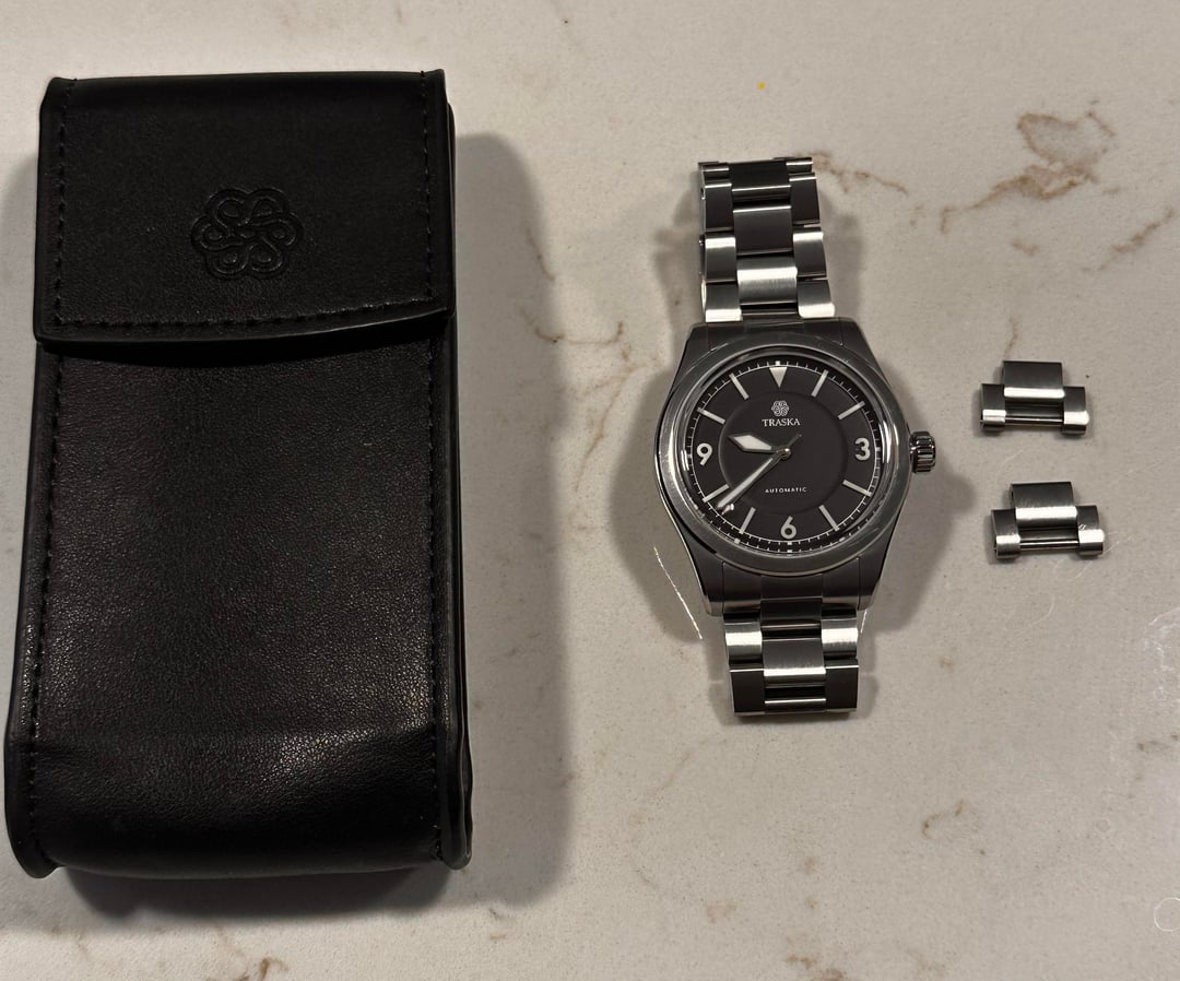 Up for sale: Traska Sumiteer 38mm in black, used but good condition thanks to their steel hardening. Do not have original box but do have extra links and travel case. Asking $550 CAD / $400US +Shipping More photos available upon request.