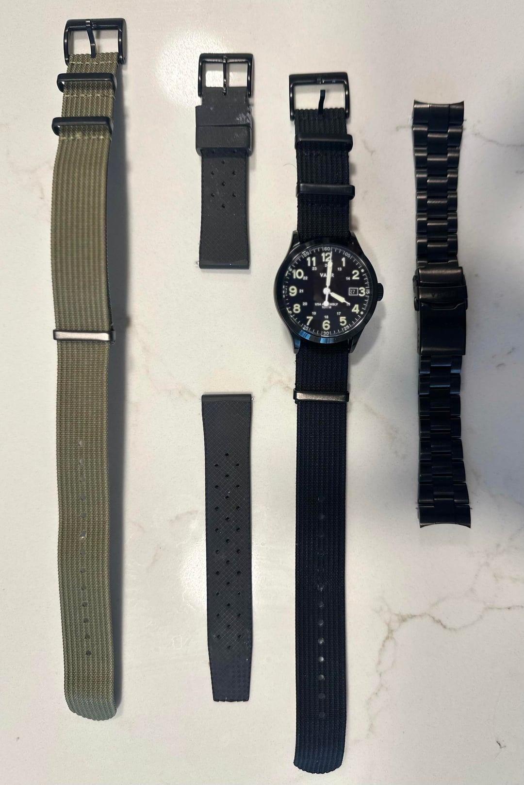 Up for sale: C5 Tactical Field Solar - 40mm USA, used in fair condition, comes with all straps you see ( green, black nato, tropic & braclet ) all purchased from vaer. No box More photos available upon request 300 USD + shipping