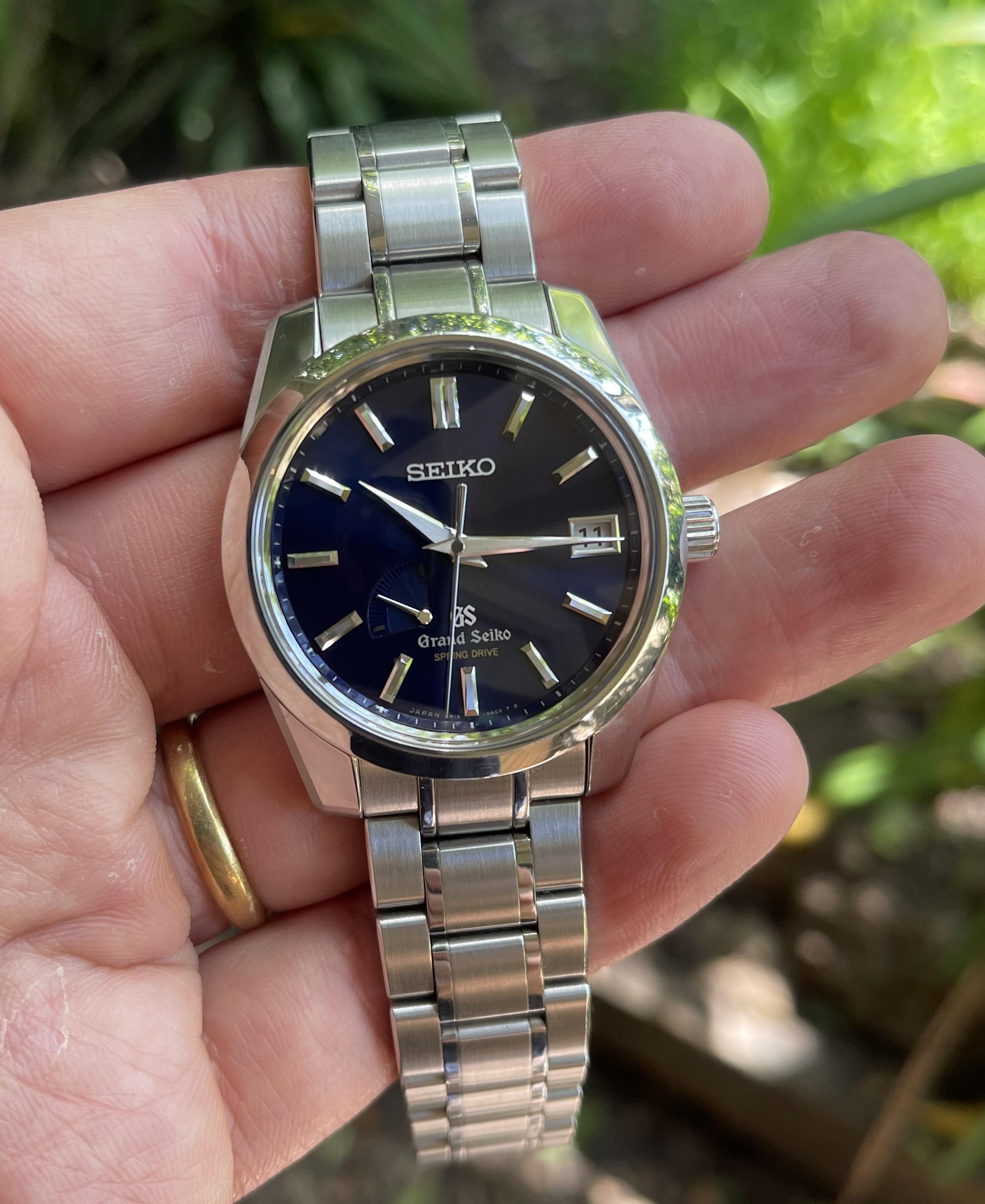 **Grand Seiko SBGA105** Honestly, I'm kinda hoping this one doesn't get any interest, I love this watch and swore I'd never sell it, yet here I am. When it comes to these LE 57GS cased 9R15's, if you know, you know. These things are some of GS's best work, great lines, perfect finishing, super accurate movement, it's pretty much all one needs in a watch. Mine is in lovely condition, it was by far my most worn watch, which I always looked after well but it inevitably acquired a bit of light wear here and there, but presents extremely well. Dial (that blue! it's so deep and vibrant), hands, crystal, are pristine, bracelet was barely used so wear is minimal. Keeps time exceptionally well, easily within spec of +/-0.5 sec per day, honestly it's on par with my HAQ Citizen rated at +/-5 sec per year. Full box and papers included, strap is NOT included though. Case: 40mm Lug Width: 20mm Movement: Automatic 9R15 Spring Drive 72 Hours Power Reserve. **Looking for $5800 AUD (\~$3850 UDS),** which is below average price for these. Ask me any questions or can request more photo's/videos. Pics, Timestamp and Video: [https://imgur.com/a/ifAITqe](https://imgur.com/a/ifAITqe)