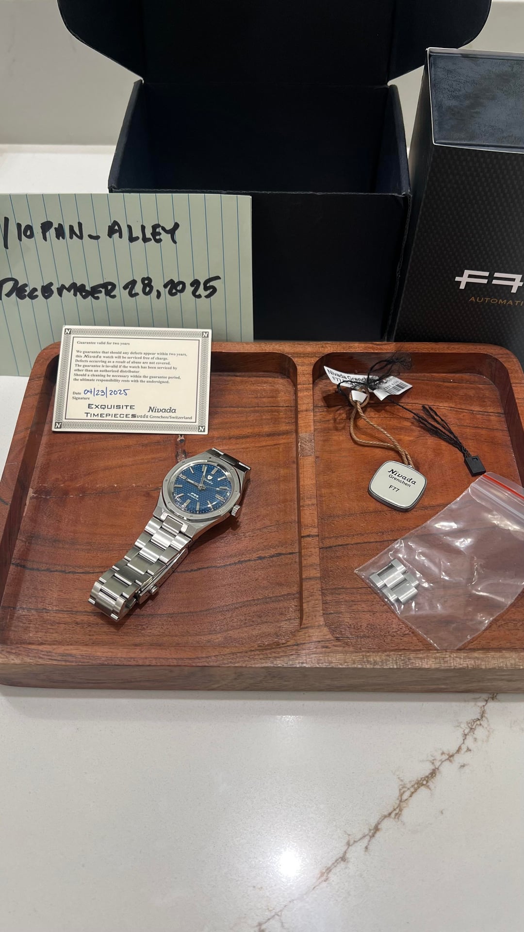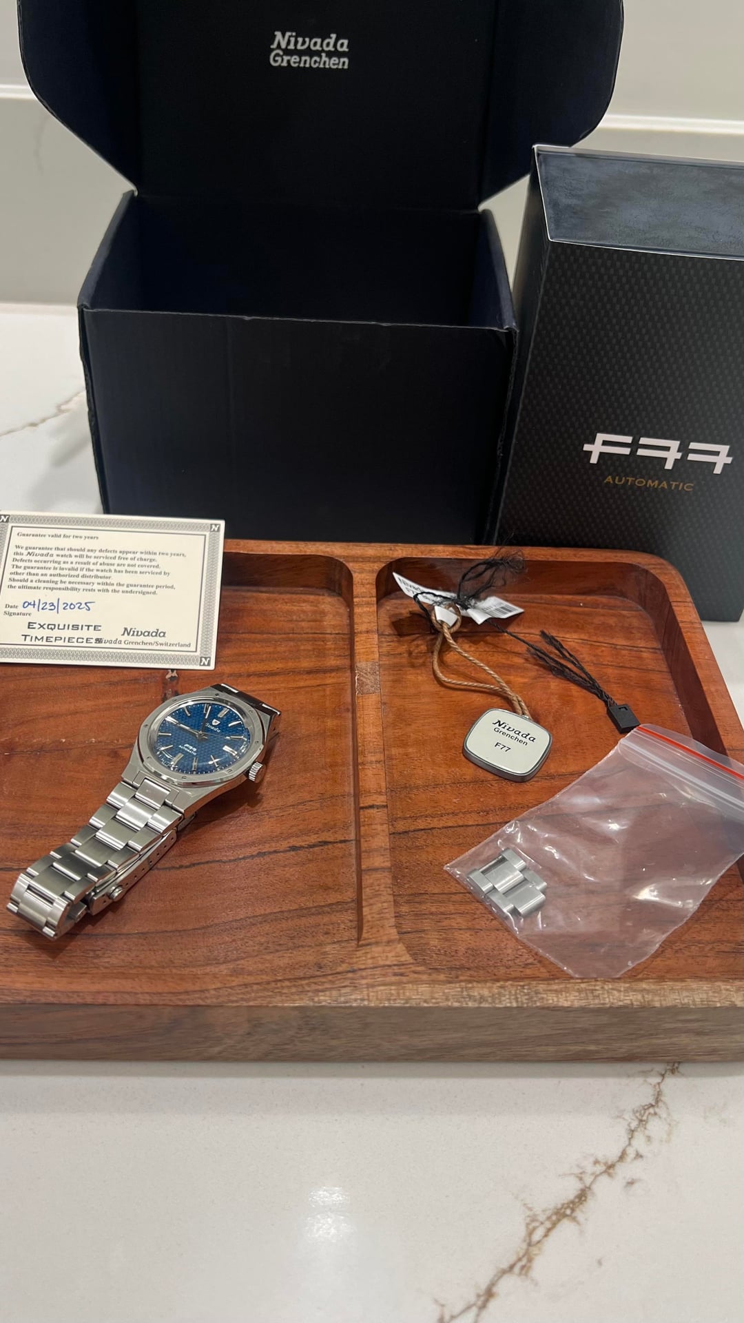 [WTS] Nivada Grenchen F77, Ref 68001A77, 37MM blue/no date/bracelet, FULL KIT, CONUS only sale, $850 shipped CONUS