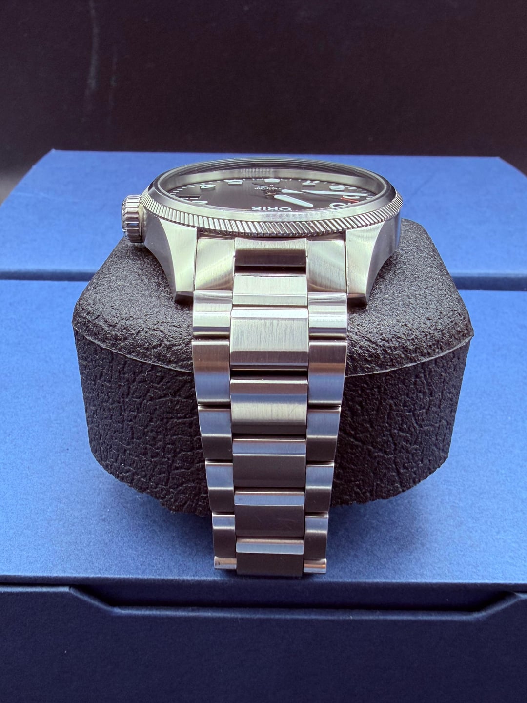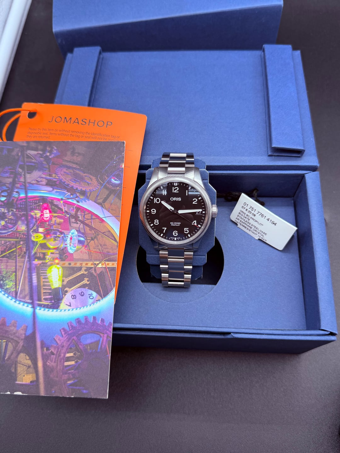 Hiya r/watchexchange, happy days! Up for sale is an Oris Big Crown Propilot Big Date; and if you think that’s a mouthful, the reference number is 01 751 7761 4164-07 8 20 08. True to its namesake, the pilot’s watch comes in 41mm, has large, legible numeral markers, and a big crown for easy time adjustment. The watch is pre-owned and comes complete as pictured sans warranty card as it came from Jomashop. Overall there are some very minor signs of wear throughout the watch. Of note, one link on the watch has a rather noticeable bored out hole where the pin goes through. This is purely cosmetic and does not affect the functionality of the pin. Images:https://imgur.com/a/DXp3Ozy Timestamp:https://imgur.com/a/CKy0d9o Price/shipping: -Priced to sell at $950, as always, I’m slightly flexible on the price. I take bank wire, Zelle, Cashapp, and PayPal (add fee for G&S ONLY if you have prior transactions here, and purely at my disposal) -Looking for a straight sale but will entertain modern Rolex and Omega trade options -I’m located in the Bay Area and am always down to meet in person, and safety is the number one priority. -CA residents without seller’s permit are subject to sales tax -New feedback system [here](https://www.reddit.com/message/compose/?to=WatchExBot&subject=Feedback_Check&message=u%2F6figureincomepovertyv) -Plenty of positive feedback [here](https://watchcharts.com/repcheck/user/6figureincomepoverty?source=reddit&type=feedback) Thanks for looking, feel free to send me any questions/inquiry. Follow me on Instagram @bayareatimecollector for more watches!