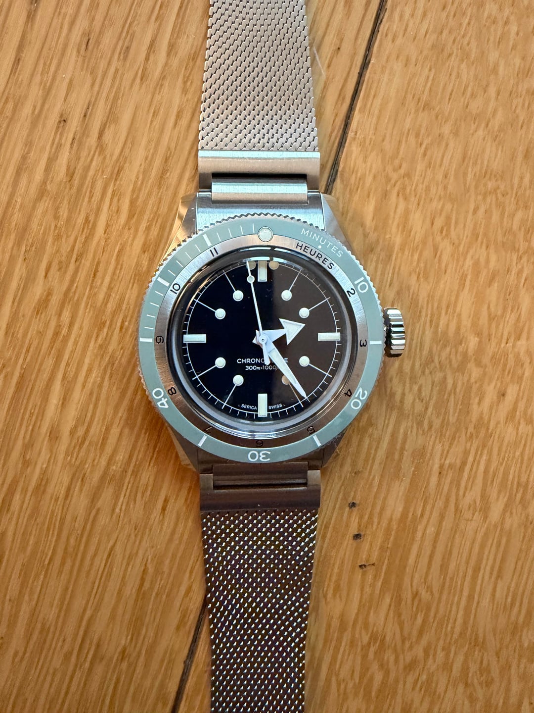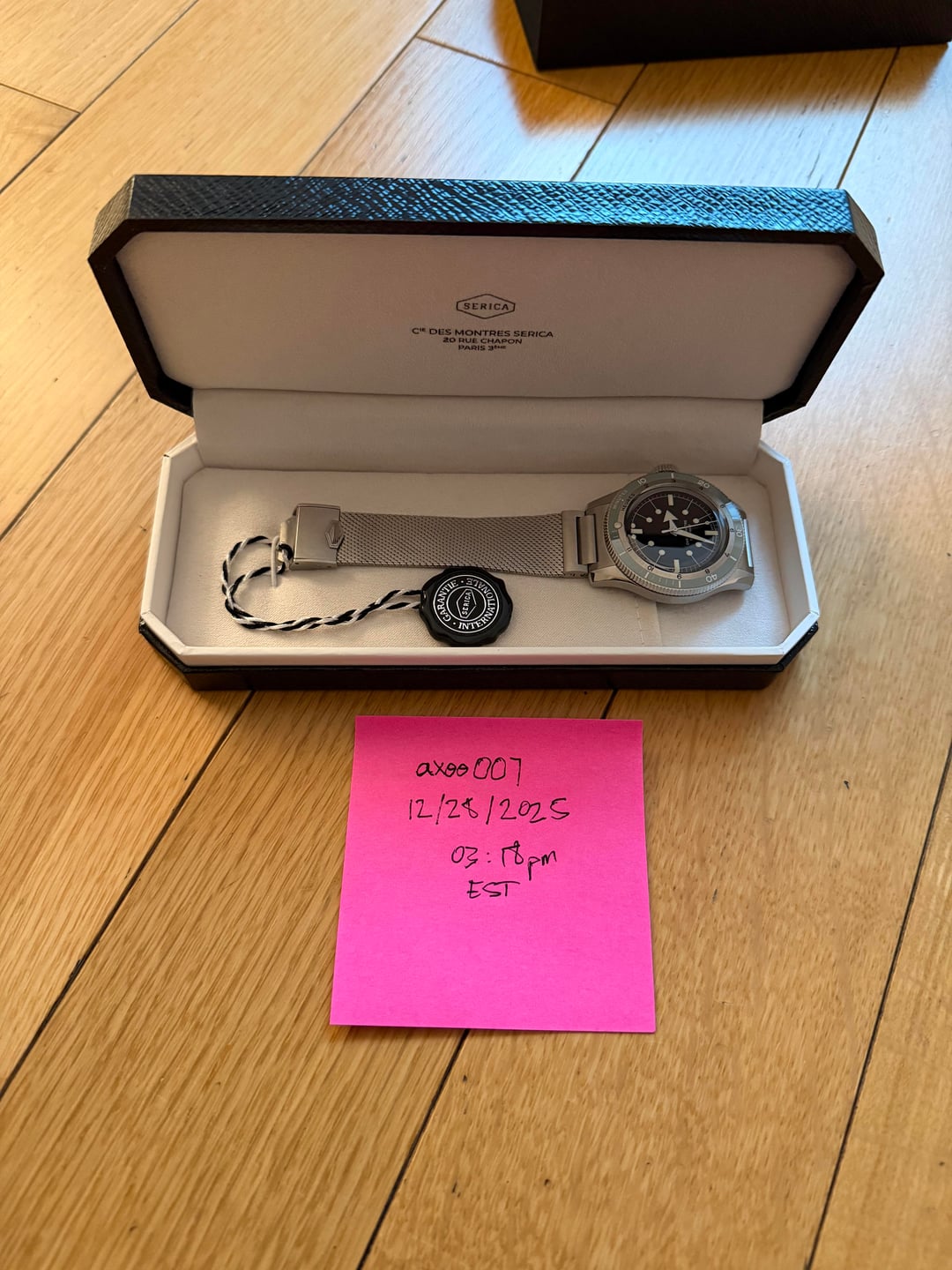 Hello Reddit. Here is more info about my listing: Serica 5303-3 Diving Chronometer “Crystal Blue” — Brand New, Unworn Price: Contact me and open to reasonable offers Description: For sale is a brand new, never worn Serica 5303-3 Diving Chronometer in the stunning Crystal Blue dial. This watch has never been used, sized, or worn — it’s in absolute mint condition, exactly as received from Serica. Key details: • 39mm stainless steel case • COSC-certified automatic movement • 300m / 1000ft water resistance • Sapphire crystal • Iconic Serica steel mesh bracelet • “Crystal Blue” dial with excellent legibility • Classic vintage-inspired diver proportions Comes with full set (box, papers, warranty card if applicable). Selling because I’m trimming my collection — not due to any issue with the watch. This is a fantastic modern tool diver that wears beautifully and flies under the radar. Happy to answer questions or provide additional photos. Local pickup preferred, but open to shipping for a smooth, secure transaction.