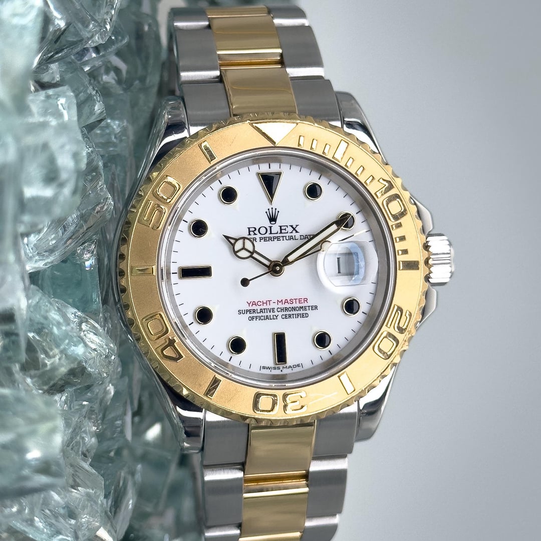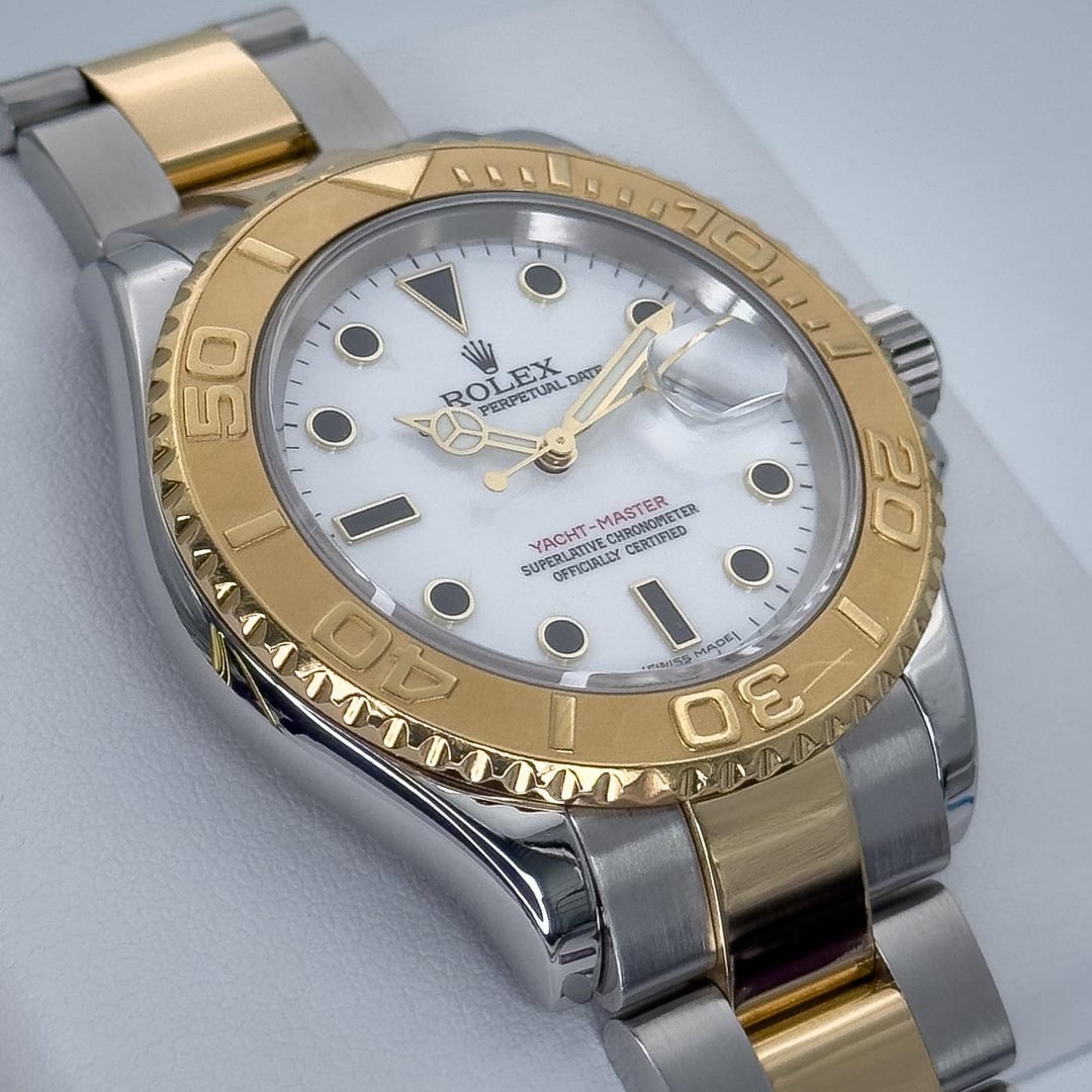 | Rolex Yacht-Master 40mm White Dial Yellow Gold/Steel Oyster 16623 Box/Papers/Tag elegantswiss (1162) |