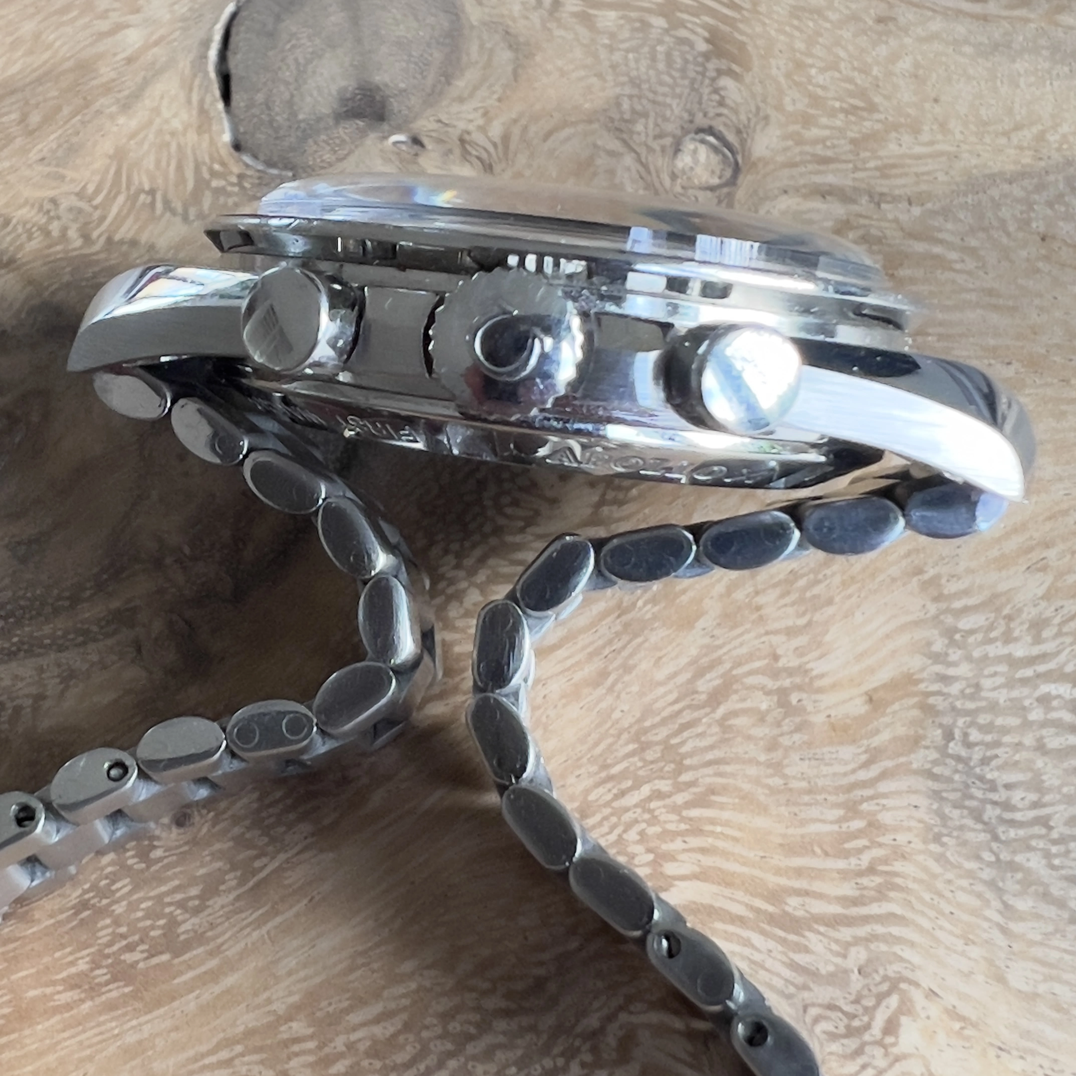 Bracelet: This is one of the reasons I bought this piece in the first place: a rare 1447 / 805 in very good condition. It currently fits a 16,5cm to almost 18 cm wrist circumference as it is. The bracelet has virtually no stretch. I have had to replace the quick release springbar which had disintegrated inside the bracelet. Better safe than sorry.