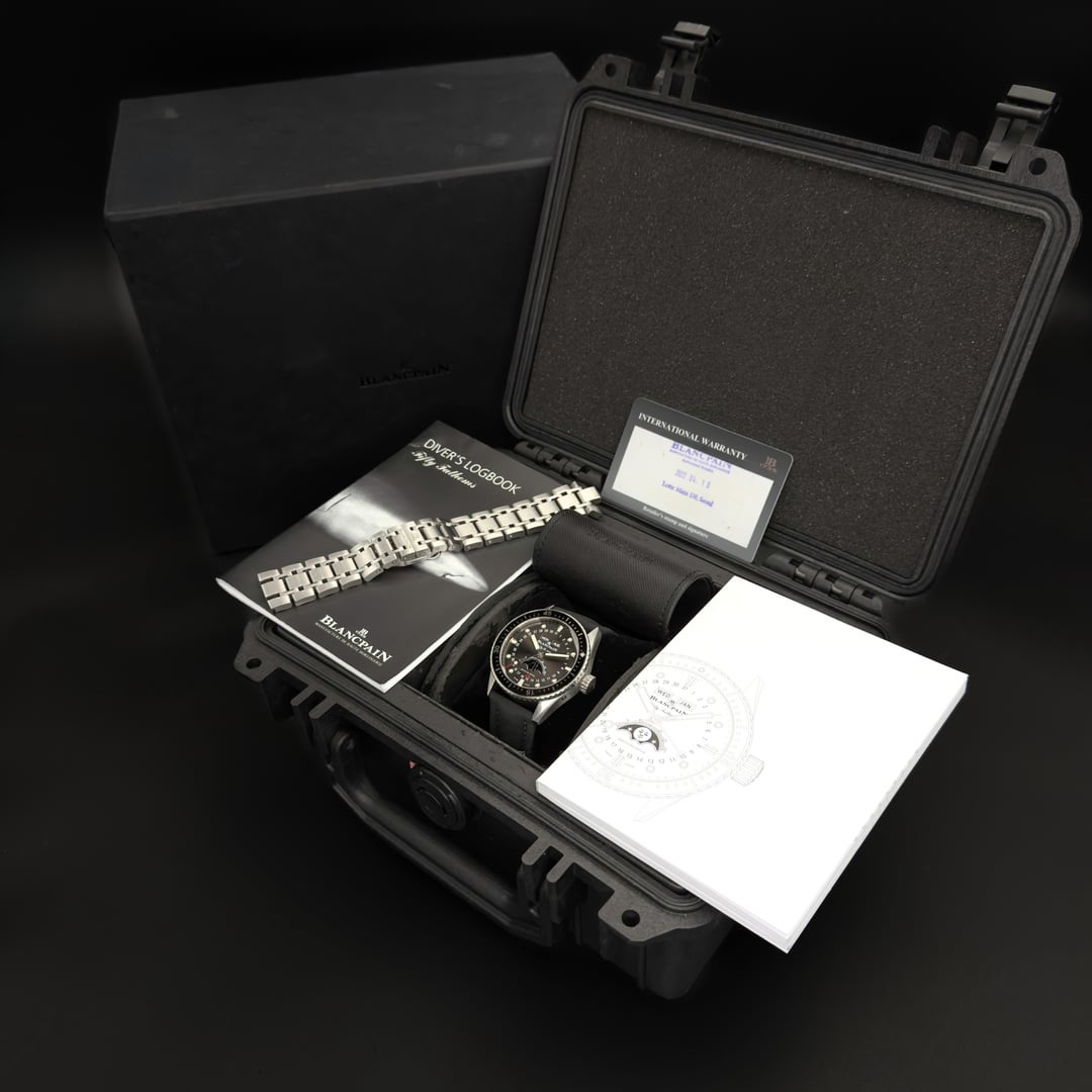 Blancpain Fifty Fathoms Bathyscaphe – Ref. 5054-1110-B52A – Excellent Condition A refined expression of Blancpain’s long-standing dive watch heritage, the Fifty Fathoms Bathyscaphe Ref. 5054-1110-B52A blends modern aesthetics with technical depth. Featuring a stainless steel case, grey dial, moonphase display, and Blancpain’s complete calendar functionality, it brings together tool-watch capability and traditional Swiss craftsmanship. Condition: Excellent – little to no signs of wear; crystal is clean; functions perfectly. Note: the inner box vinyl is peeling, and the watch roll inside the inner box shows significant wear. What’s Included: Inner & Outer Boxes • Warranty Card • Manuals/Booklets • Extra Blancpain Stainless Steel Bracelet • Canvas Strap (installed) Price: $10,800 – Fully insured shipping within the U.S. included Note: Serial number is blurred in photos for security. I maintain an excellent reputation with 5-star reviews across multiple platforms. Accuracy, transparency, and trust are incredibly important to me — I’m happy to answer any questions, provide additional photos, or offer a live video viewing. Timestamp: https://imgur.com/a/l7ojIlK