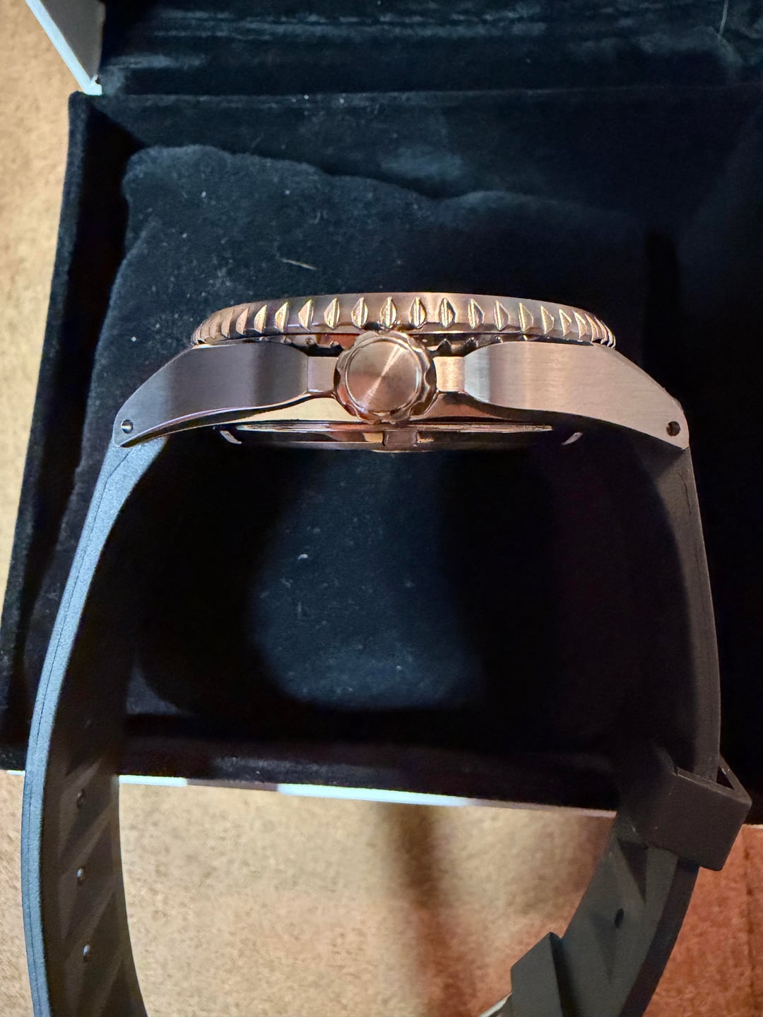 Purchased November 2025 this year. Only worn 3 times till I decided to get the 1965 Marine master instead for my 3-watch collection. Just a bit big for me. No issues, scratches, or problems. It is equipped with an Uncle Seiko rubber waffle strap. Original strap is included. All boxes, papers, and tags are included. This is my first time selling on Watchexchange, but I do have two recent sales on Jewelryforsale. Looking for $800 shipped. I can ship with any carrier of your choice. Preferably, USA only. Payment must be sent via Zelle or PayPal F&F. Will provide tracking link and insure shipment. Thank you for looking!