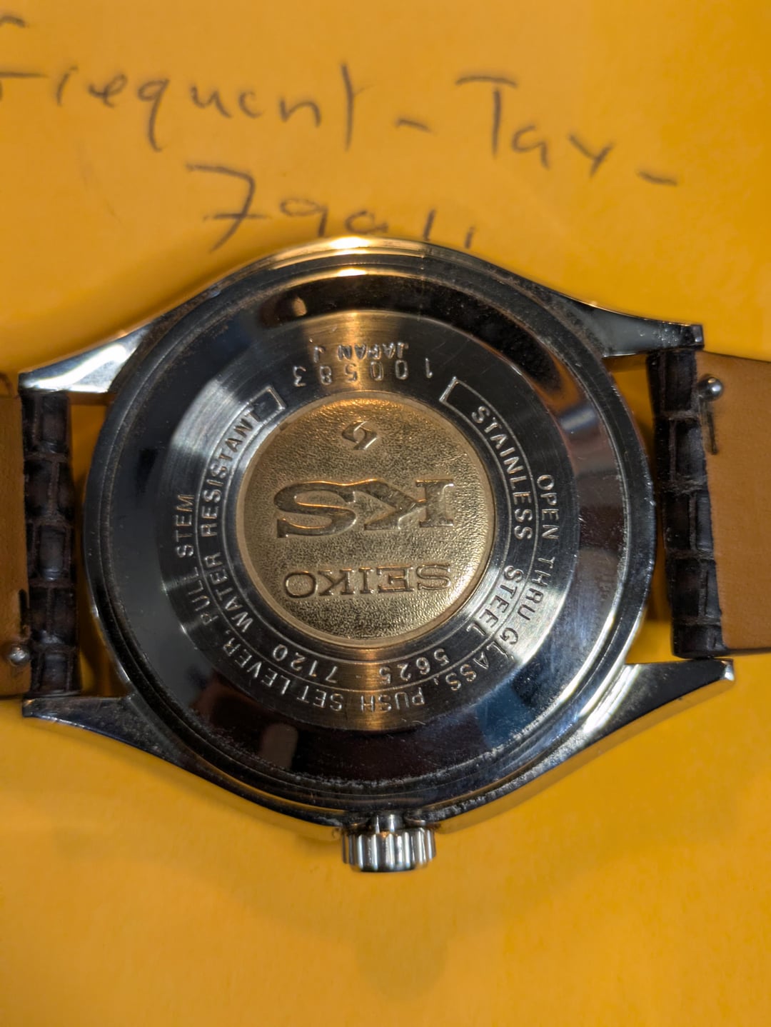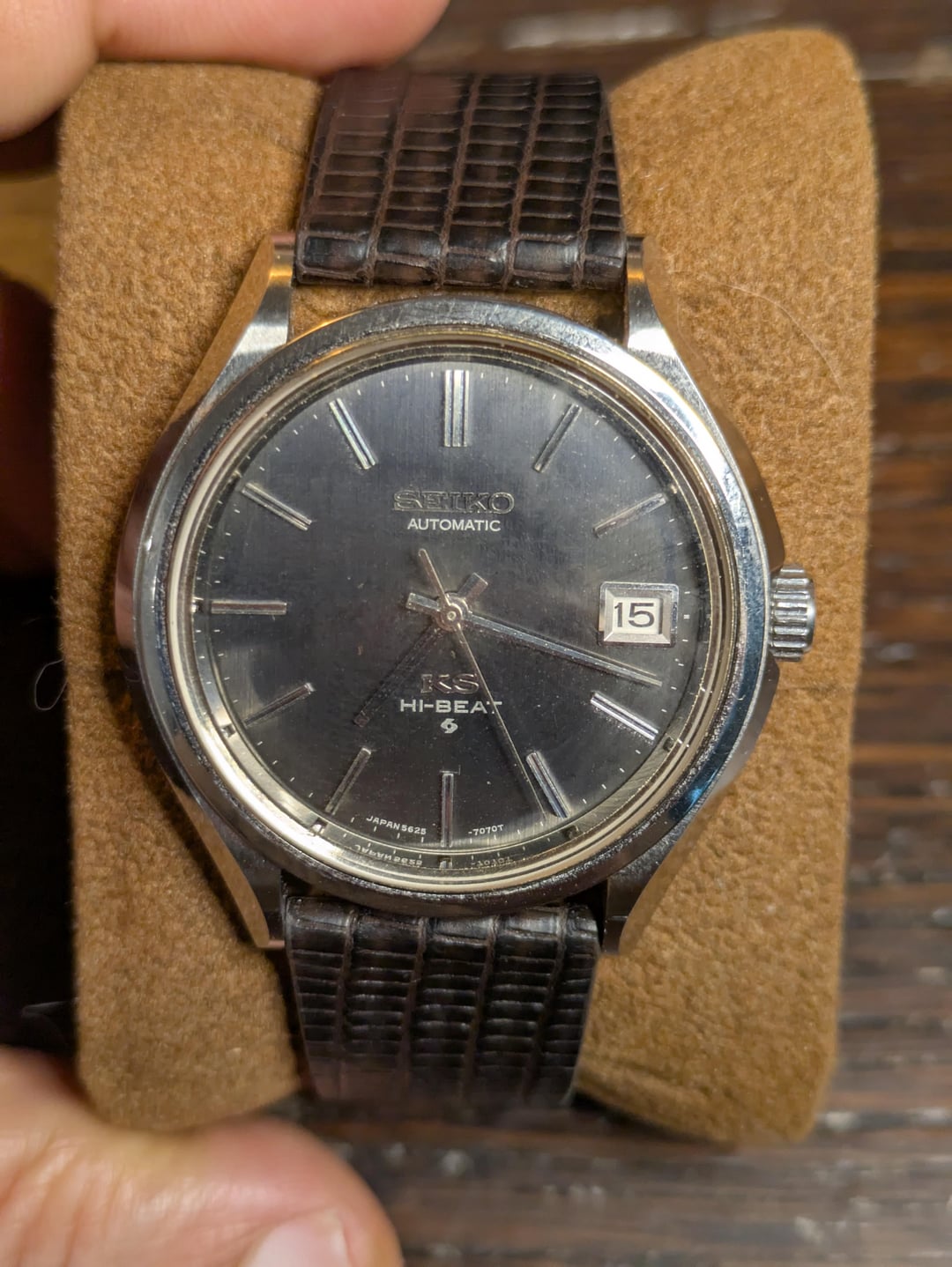 Selling this lovely KS 5625 7070. All parts original, including buckle and gold medallion on the back. The watch has been serviced and keeps excellent time. It comes on a brown lizard Handdn strap. Asking for $500 not including shipping (which will be from Dubai, and Id be happy to discuss shipping options).