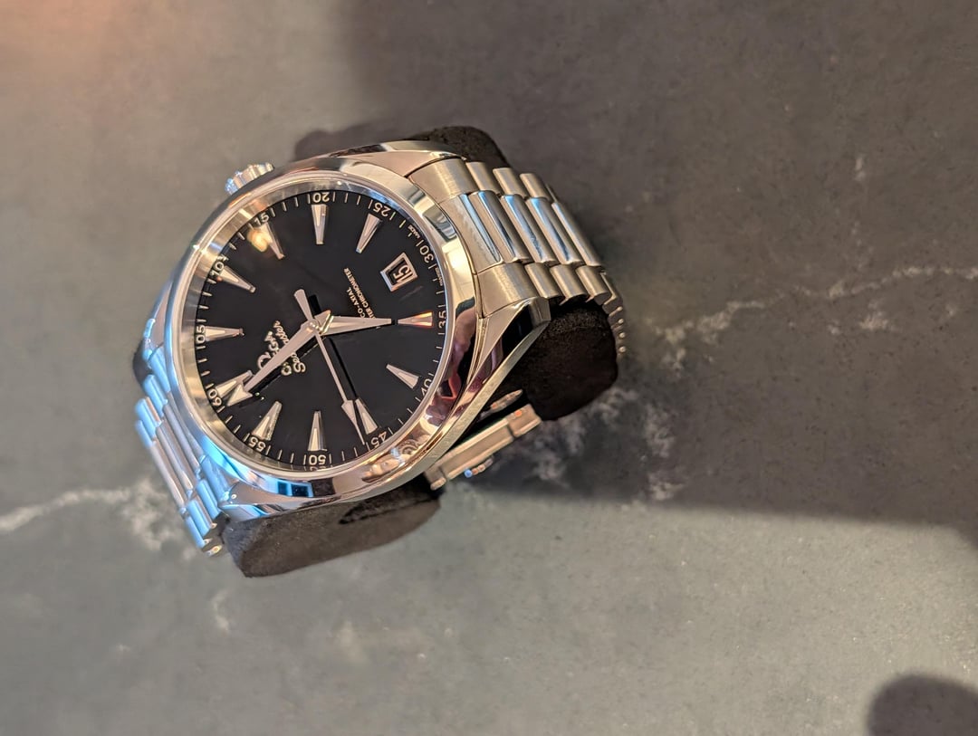 Up for sale is the 2024 Black Lacquer version of the 41mm Aqua Terra. This reference features the deep, high-gloss black varnish dial that replaced the traditional teak lines, offering a much cleaner and more premium look. Condition: Great condition. Very minor hairlines on the polished center links from light wear. Case and crystal are clean. Running perfectly within METAS specifications. Full set. Price: $6,000 Shipped Shipping: CONUS only. Fully insured. Payment: Zelle ONLY. Location: Alexandria, VA / DC Area (Available for F2F) The Fine Print Please comment on this post before messaging. No trades at this time. Happy to provide a video of the lacquer dial for serious buyers. Quick Spec Reference for You: Movement: Omega Calibre 8900 (Master Chronometer). Feature: Jumping hour hand (ideal for travel). Water Resistance: 150m.