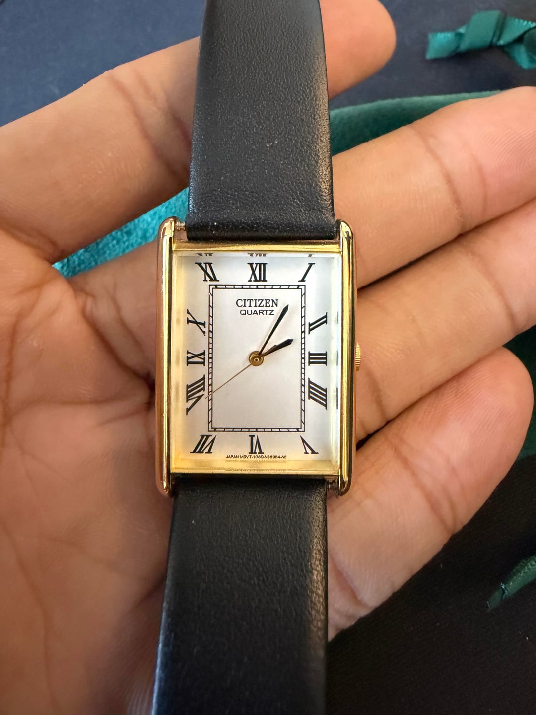 Hi guys, this is my first time selling on r/Watchexchange. Up for sale is a vintage citizen tank in really good cosmetic condition. The watch running time is a bit off and can be reset easily. I have a few trades confirmed on r/hardwareswap. This is the timestamp: [https://imgur.com/a/IxCKi3Z](https://imgur.com/a/IxCKi3Z) I'm asking $200 shipped and PayPal GS or OBO. Thank you!