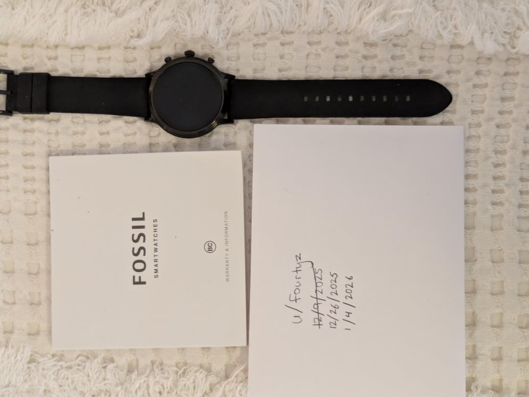 Selling my Fossil Gen 5 Carlyle HR (ref. FTW4025). Watch is in perfect working condition and has been well cared for. Normal light wear from use — all wear is shown clearly in photos. 44 mm black case Wear OS (Google) Heart rate, GPS, NFC / Google Pay 22 mm strap (OEM black silicone included) No issues with battery, touchscreen, or sensors. Reset and ready for a new owner. Timestamp + photos included. Happy to answer any questions. 📜 Includes: Watch + Manual 💵 Price: $100 shipped 📍 Location: San Diego 🔒 Authenticity: 100% guaranteed 📦 Domestic Shipping (CONUS) preferred 🌍 International Shipping: Can be negotiated, you pay the cost 💳 Payment: Paypal F&F, Venmo or Face-to-face deal in San Diego I have excellent ratings here on Reddit and can provide additional references at your request. Happy to facetime and show the watch. Please PM me with any questions or additional picture requests. Thanks all!