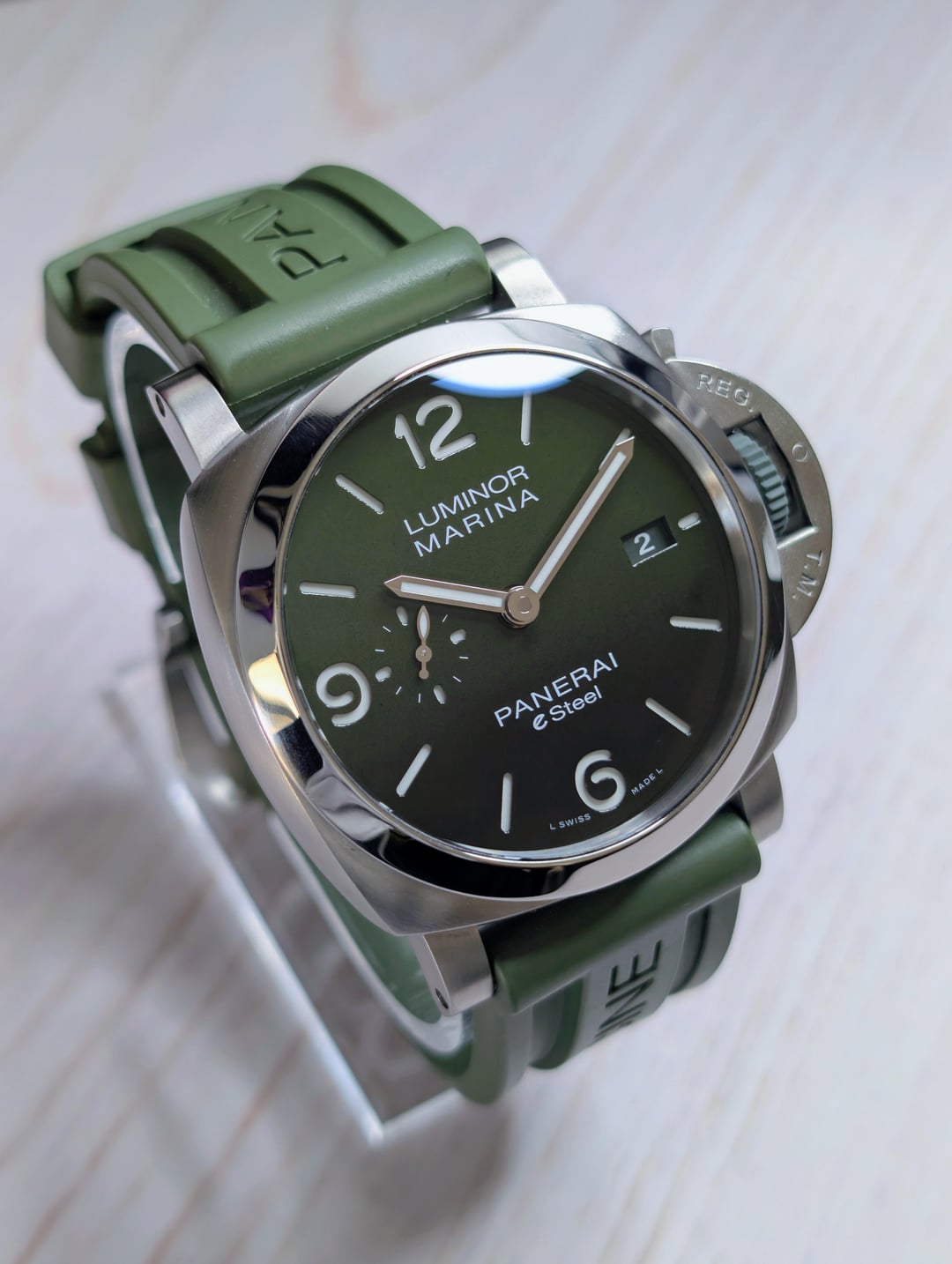 ![Thumbnail [WTS] Panerai Luminor Marina Verde Smeraldo PAM01356 44mm eSteel Green Dial 3 Straps Full set Box & Papers 8](https://cdn-cf.watchpatrol.net/120x120/img/full/3228bedc4d4cb53cf4c33bf2d863f827a977a984.jpg)
