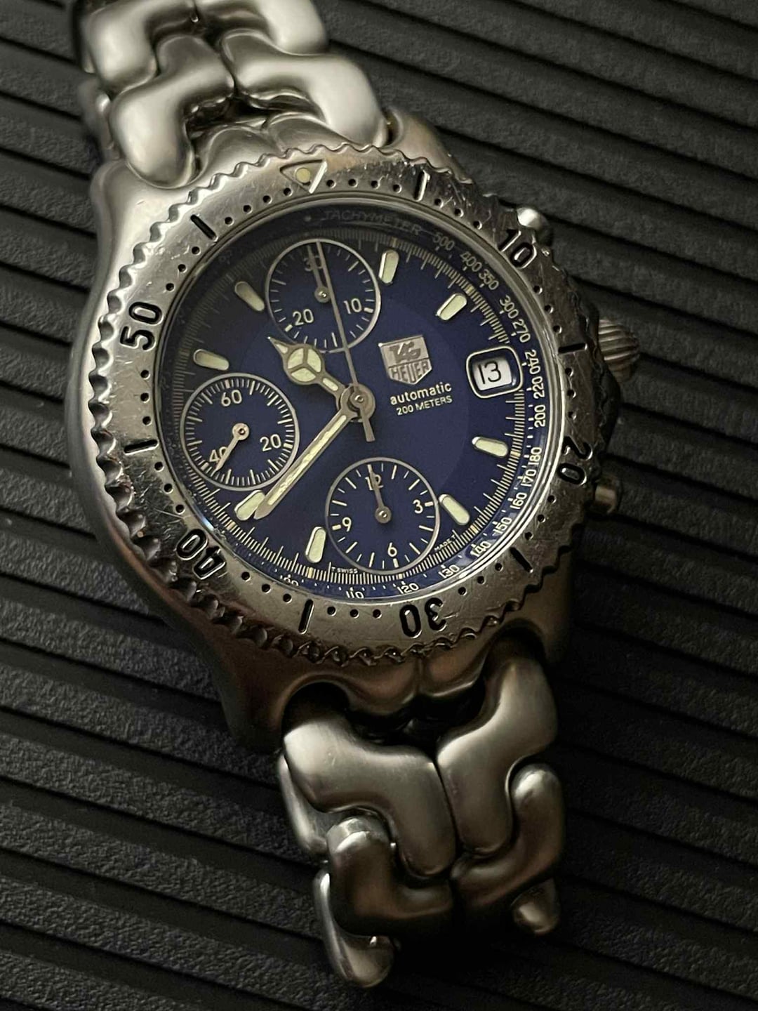 The Link is TAG’s most refined design, and this reference clearly shows why: rounded case, the iconic S-link bracelet, known for being one of the most comfortable steel bracelets ever made, and a deep blue dial for a sporty look. Inside you’ll find a Valjoux 7750 automatic movement, showing this piece isn’t just looks. It’s a sharp, everyday piece with just enough sportiness to keep it relevant. Unfortunately, the bracelet is short – it’ll fit a wrist of up to 6.3 inches (16 cm). I can get two extra links for $50. **Condition:** Very good for its age. Minor markings on the case and bracelet. The dial looks amazing. Please see the pictures for full condition and clarity. **Case Size:** 38mm **Movement:** Valjoux 7750, automatic chronograph with day/date and quickset. Service history is unknown, but everything is working as it should. **Other information:** * Watch only. * The bracelet fits a wrist of up to 6.3 inches (16cm). However, I can source two extra links for $50. **Price:** Asking $1,100. Please add $35 for worldwide shipping. Payment methods include Wise, ACH transfer, Revolut, Bitcoin (On-Chain or Lightning), or PayPal G&S for buyers with solid references. Add +7.5% for currency conversion fees on the latter. Portugal has suspended all local post shipments to the US, but I can still ship with UPS ($100). US buyers may have to pay a 15% tariff on arrival. Established seller with over 220 transactions – buy with confidence! Make sure to follow me on Instagram (@daily.worn) to check out the newest additions. Happy to answer serious inquiries. No trades, no lowballs. [Pictures](https://imgur.com/a/hPytdxK) [Timestamp](https://imgur.com/a/KofKNOU)