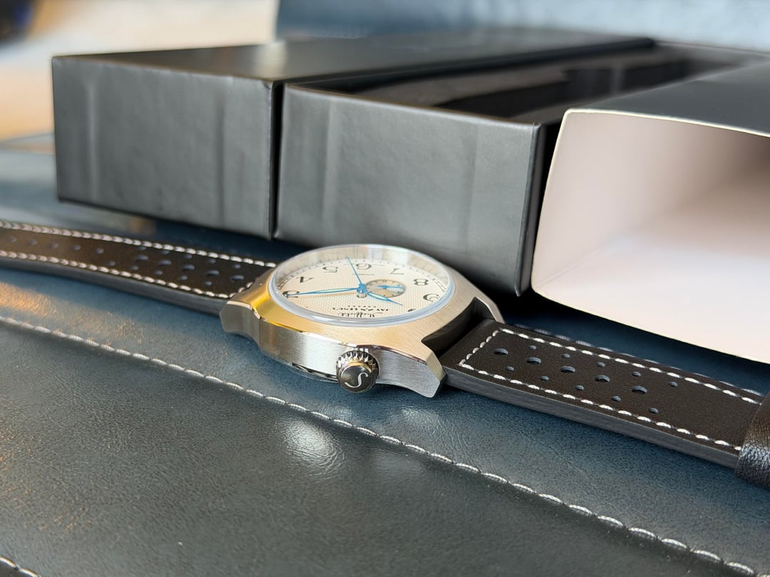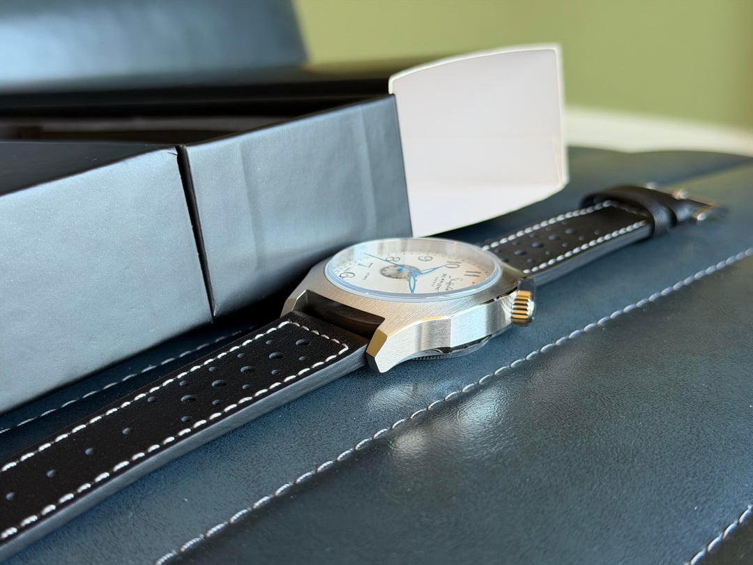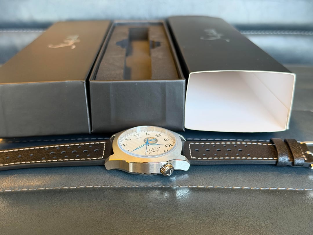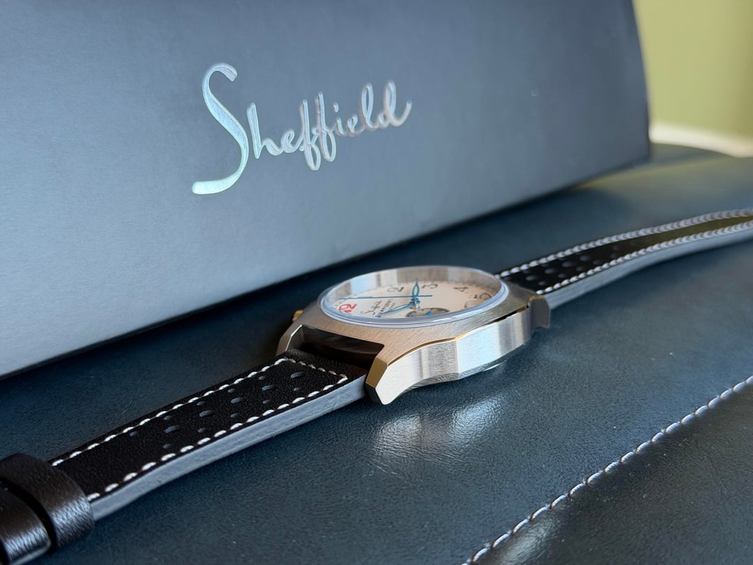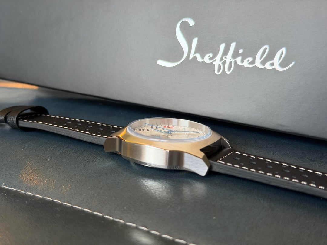 Brand new, unworn example of the limited-run Jay Leno’s Garage watch from Sheffield. Asking $550 plus shipping label. Located in Georgia, USA. This is a fun and unique take on a driver’s watch, where the 12 o’clock marker points down the road when holding a steering wheel. These sold out in hours, and I bought two - one (this one) was intended as a gift, but I never got around to gifting it to anyone, as it’s best suited to larger wrists and car/watch enthusiasts. More information at their website here: https://sheffieldwatches.com/products/jay-leno-s-garage-limited-edition-driver-s-watch?srsltid=AfmBOorqztpIkSe0ouRRwRnRldvJy6HIui1zvcYoqIuw8fbafOPbXKAj As this is my first time selling on Reddit, I’m happy to FaceTime with any that are seriously interested.