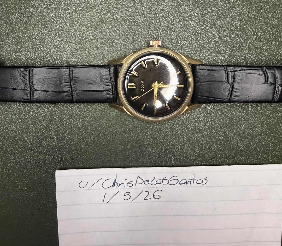 Vintage Doxa Automatic w/ Tropical Dial & Gold Capped Case -Details: Vintage Doxa automatic with a tropical dial and a gold capped over stainless steel case. It is anti-magnetic, has an acrylic crystal, copper crown, and a new black leather strap. Watch only. This piece is estimated to be from the early 1960’s, where gold capped cases were the more affordable option over solid gold. I’m not sure on the carat of the gold, I would assume 10kt as that was common during that time period. The watch runs smoothly, but it is unknown when it was last serviced. This vintage piece is an absolute beauty and in good condition given its age, photos and video do not do this piece justice! -$399 shipped -Includes shipping (US). I accept Venmo, Zelle, CashApp, and PayPal (+4% if using G&S) -Case size: 34.5mm -Movement: Automatic -Timestamp: https://imgur.com/a/fojhTB7 -Location: Downtown Los Angeles -IG: @ColeccionDeLosSantos -TikTok: Chris.DeLosSantos