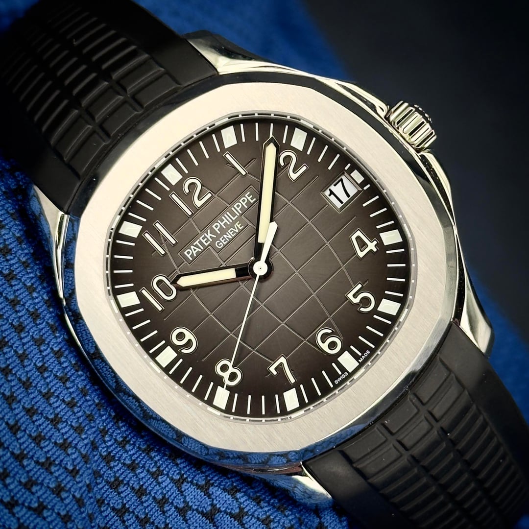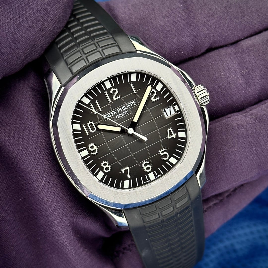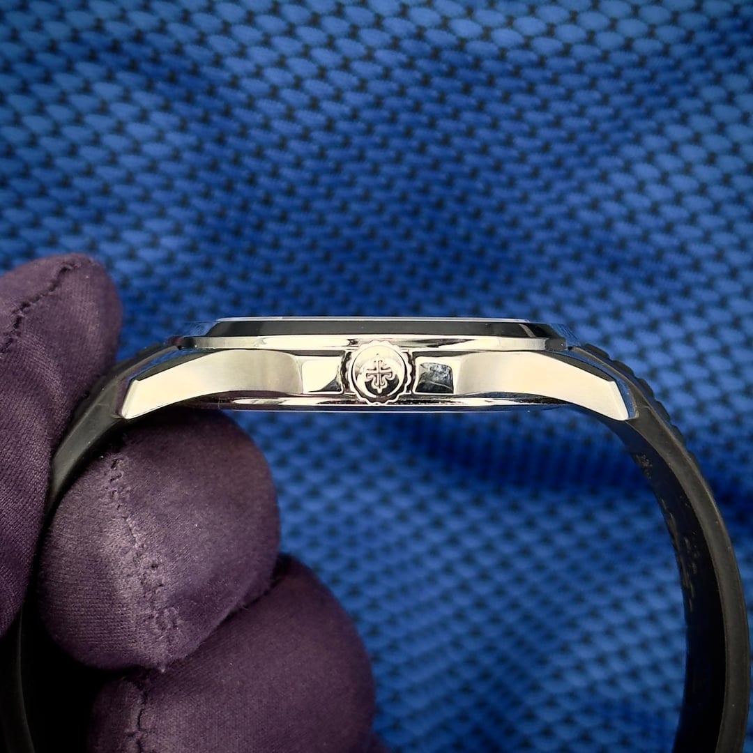 | Patek Philippe Aquanaut 5064 in Stainless Steel on a black rubber strap graysvault (874) |