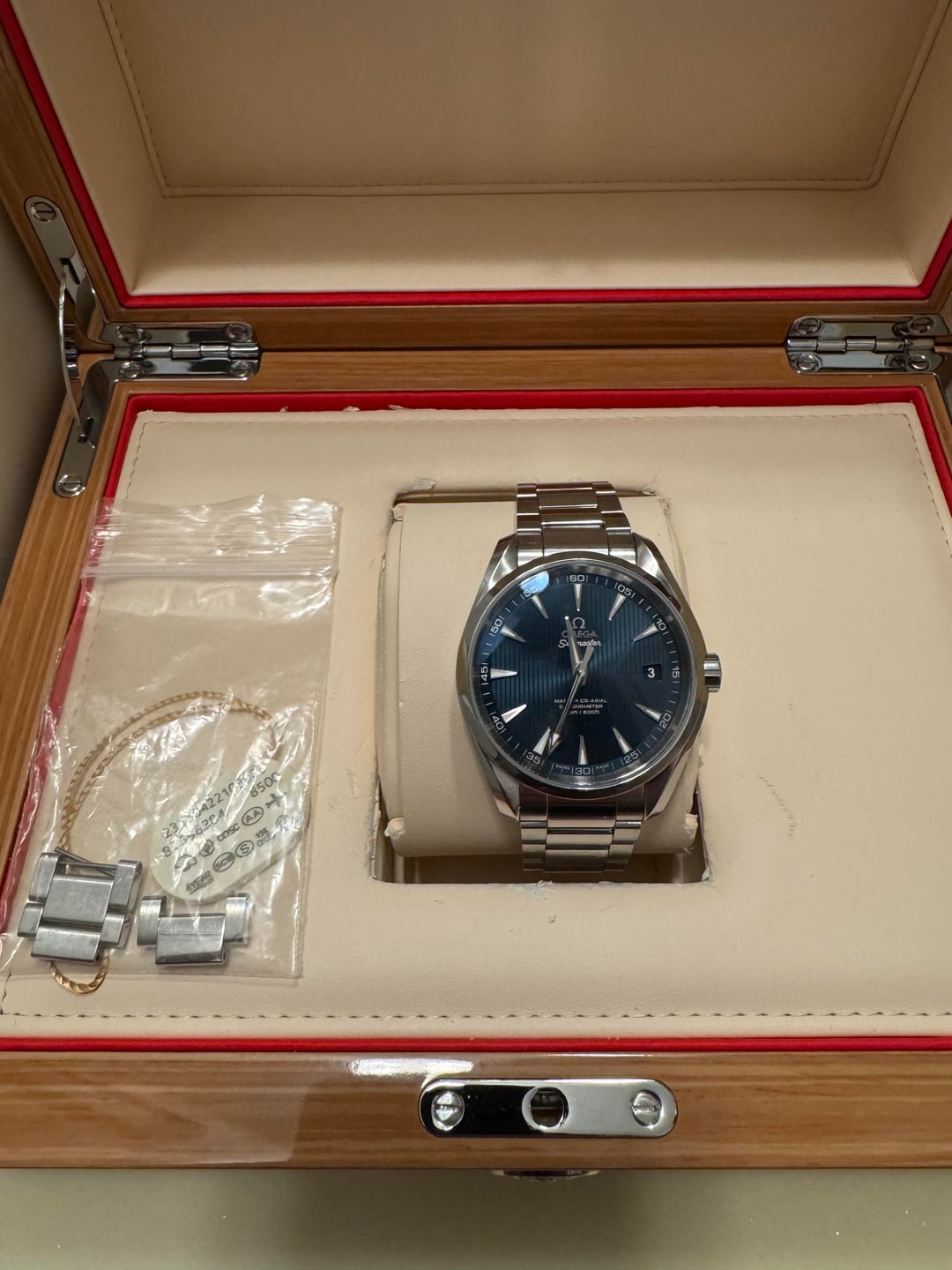 [timestamp+album](https://imgur.com/a/39COjxn) [Video](https://imgur.com/a/UuvXUOd) Hey everyone — I’m selling this one from my personal collection. I hate to let it go, but I don't wear it as often anymore. This piece has been incredibly versatile and is usually considered the underrated, unsung hero of the James Bond lineup. This Seamaster Aqua Terra was featured in Spectre and No Time To Die, though many people don’t realize it appeared in two films. It’s the older “brother” to the Skyfall version. It is powered by the Master Co-Axial movement, an upgrade over the standard Co-Axial with improved precision and anti-magnetic performance. The blue dial is truly special — it changes shades depending on the light, and the teak-patterned design gives it a refined, elegant presence that works equally well dressed up or down. Condition: Scratches and some scuffs/dings on the case, bezel,and bracelet from regular wear. The sapphire crystal is clean. The watch can be professionally polished by Omega if desired, though I’ve chosen to preserve the original case integrity. Replaced spring bars with OEM from Omega Boutique on 1/3/2026. Service & Performance: Serviced in 2024 — cleaned, lubricated, and rubber gaskets replaced for water resistance. No other parts required replacement. The watchmaker has an Omega parts account. Runs perfectly with zero issues. • Model: Omega Seamaster Aqua Terra • Reference: 231.10.42.21.03.003 • Dial: Blue • Movement: Master Co-Axial • Bezel: Stainless steel • Size: 41.5 mm • Warranty: N/A Included: • Original Omega white outer box & wooden box • Manual • Card & extra links Price: $4,100 includes label. Location: California (CONUS only) Payment: • PayPal (Friends & Family) • Bank Wire • Zelle Shipping: USPS Priority — Signature Required Additional Notes: I’ve sold multiple high-end watches and can provide solid references.