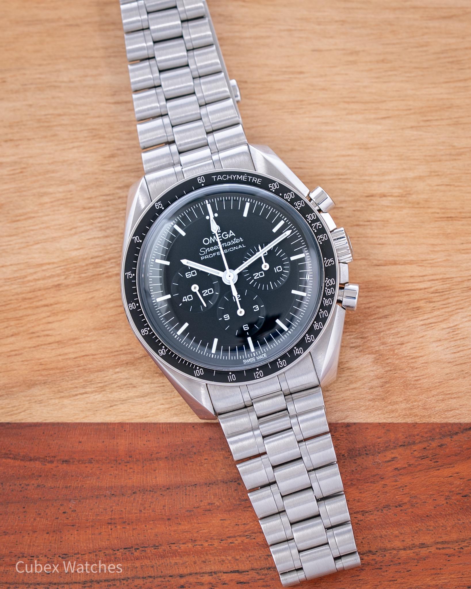 Up for sale is the iconic Omega Speedmaster Moonwatch Professional. The current generation Omega Speedmaster Moonwatch features a robust and elegant 42mm stainless steel case with a hesalite front and solid case back powered by the updated caliber 3861 movement with its Co-Axial escapement. Key upgrades include superior magnetic resistance, a Master Chronometer certification by METAS with improved hacking seconds function. While retaining classic design elements like the aluminum tachymeter bezel and step dial, this version offers enhanced durability, accuracy, and visibility of the dial, making it a highly competitive and modern interpretation of the iconic Moonwatch. **Reference: 310.30.42.50.01.001** Case size: 42mm Case thickness: 13.2mm Lug width: 20mm Movement: Hand wound Cal 3861 Power reserve: 50 hours **Condition Notes:** ✔️ Time keeping is excellent without any significant gain or loss with chronograph function working as it should. **What's Included:** ✔️ Watch only with enough links to fit 7.25inch wrist. Original Omega travel box included. **Timestamp and pictures:** [**https://imgur.com/a/U4QVXlp**](https://imgur.com/a/U4QVXlp) **Priced to sell at $4,799 plus shipping cost from Atlanta, GA.** Trade value will be higher. Send complete details of your trade offer outright. Payment by Zelle, Wire, and PayPal (buyer pays the fees)