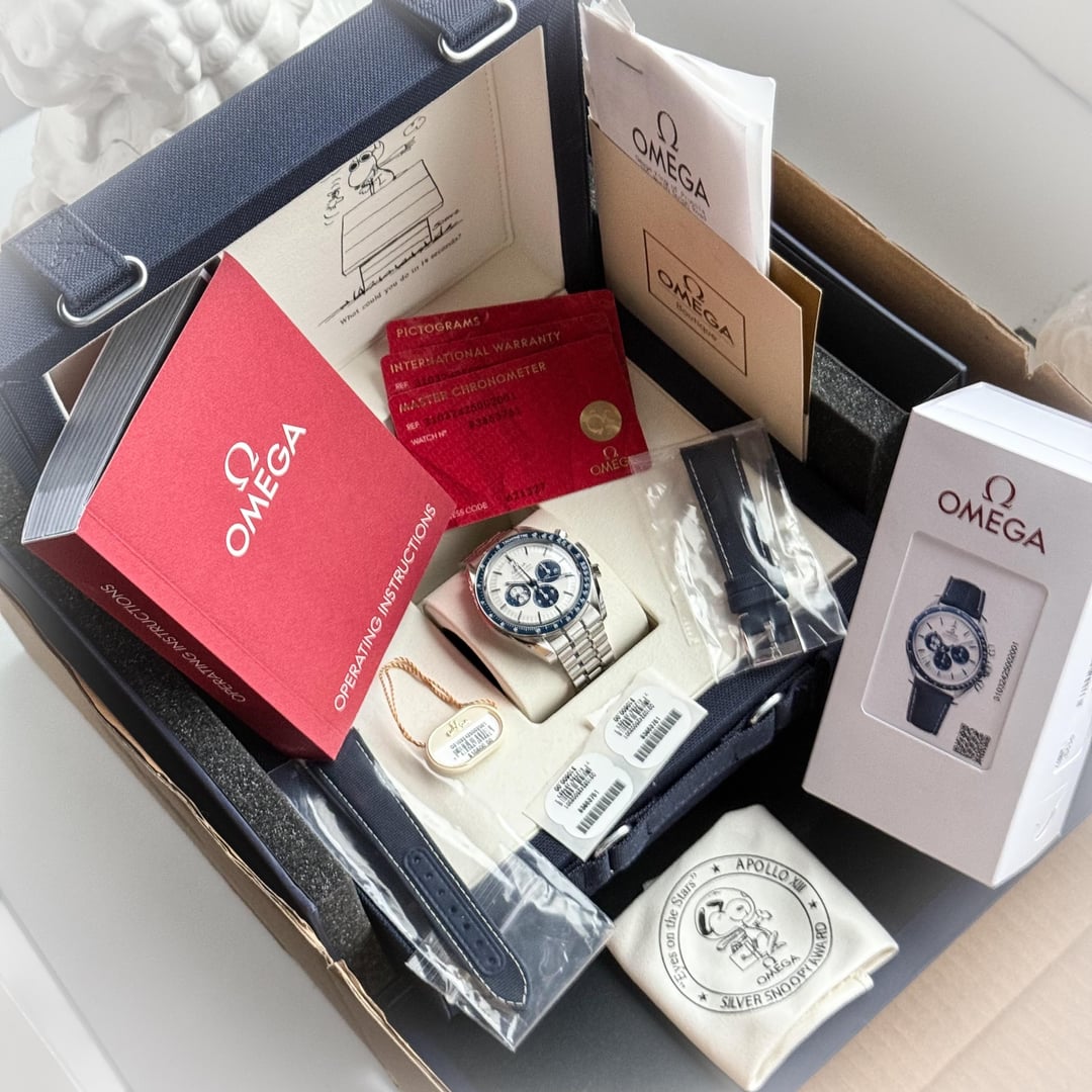🚨 2023 Omega Speedmaster Silver Snoopy Award on Bracelet + Straps Full Set Mint Condition 310.32.42.50.02.001 🚨🌴 PRICE: 15999 shipped via FedEx overnight fully insured WHAT'S INCLUDED? This listing includes the outer cardboard box, blue cardboard box, blue Snoopy Omega box, watch, all links, pictogram card, master chronometer card, warranty card dated 2023, original straps that are unworn, serialized hang tag, Snoopy soft travel pouch, blue travel case, three serialized UPC stickers, Snoopy Moonwatch booklet, original Snoopy box l red instructional booklet and original Omega authorized dealer invoice dated 7/20/2023 WHAT'S THE CONDITION? This watch is in like new preowned condition. Straps are still in original packaging and unworn. This is a phenomenal kit that will make the most discerned Omega collector happy! WHERE AM I LOCATED? Northern New Jersey TIMESTAMP: https://imgur.com/a/oH2Rd1p If you have any questions please do not hesitate to reach out to me. I am highly responsive and will get back to you asap. We now have an office located in Morris County, NJ and are available by appointment only. For fastest response, call or text us! ☎️: 862-217-4232 Cheers, Chris - Paradigm Time Company @paradigmtimeco