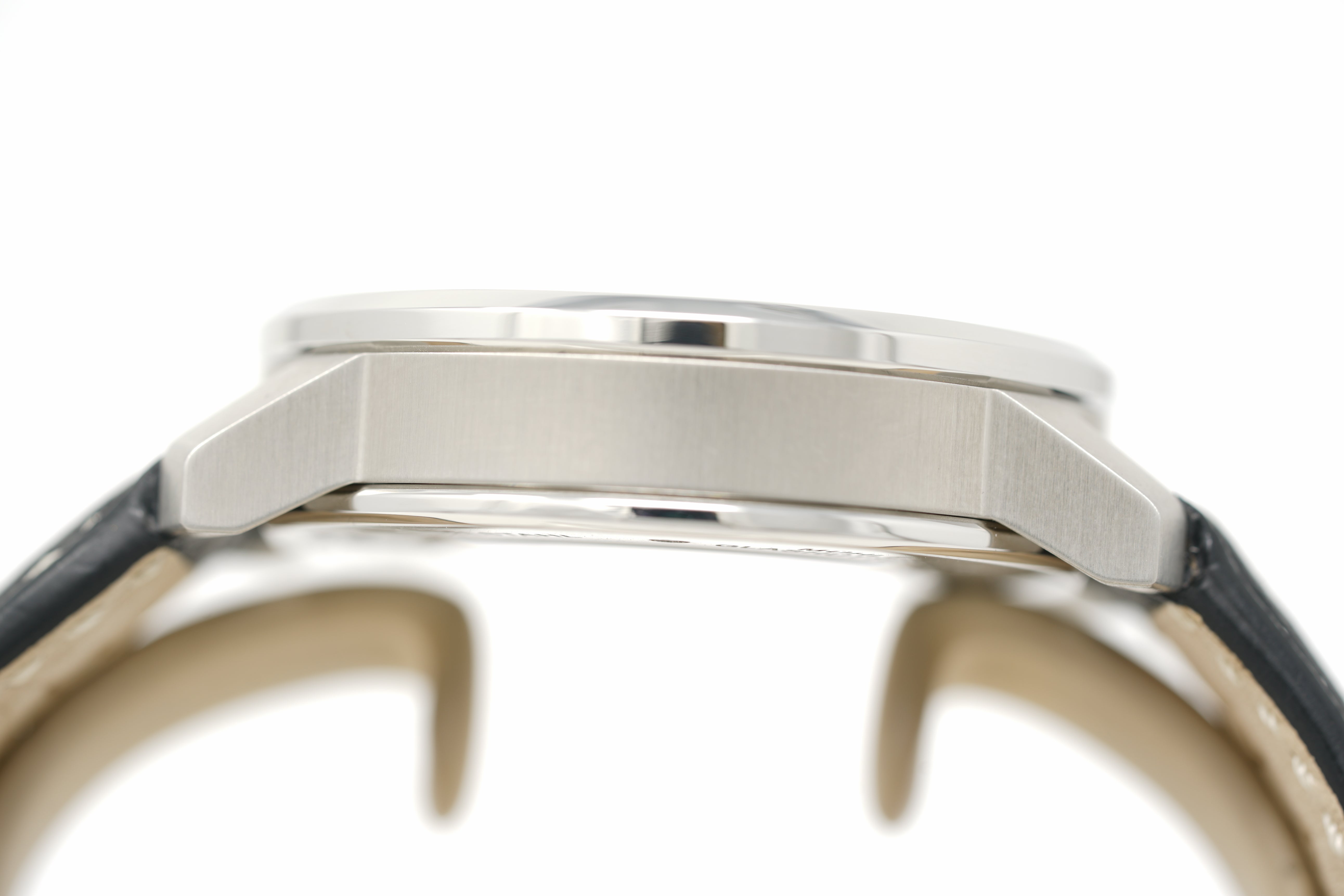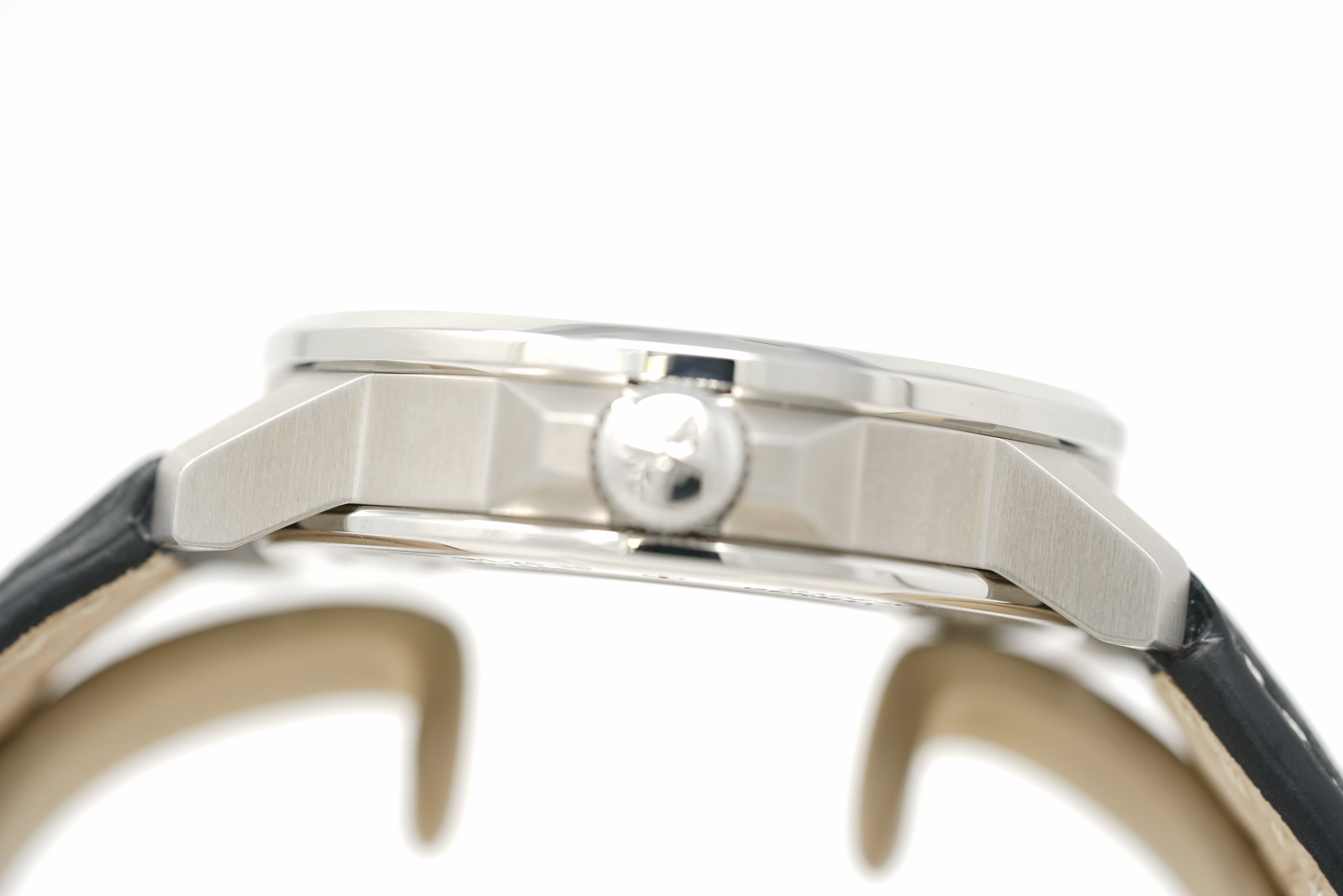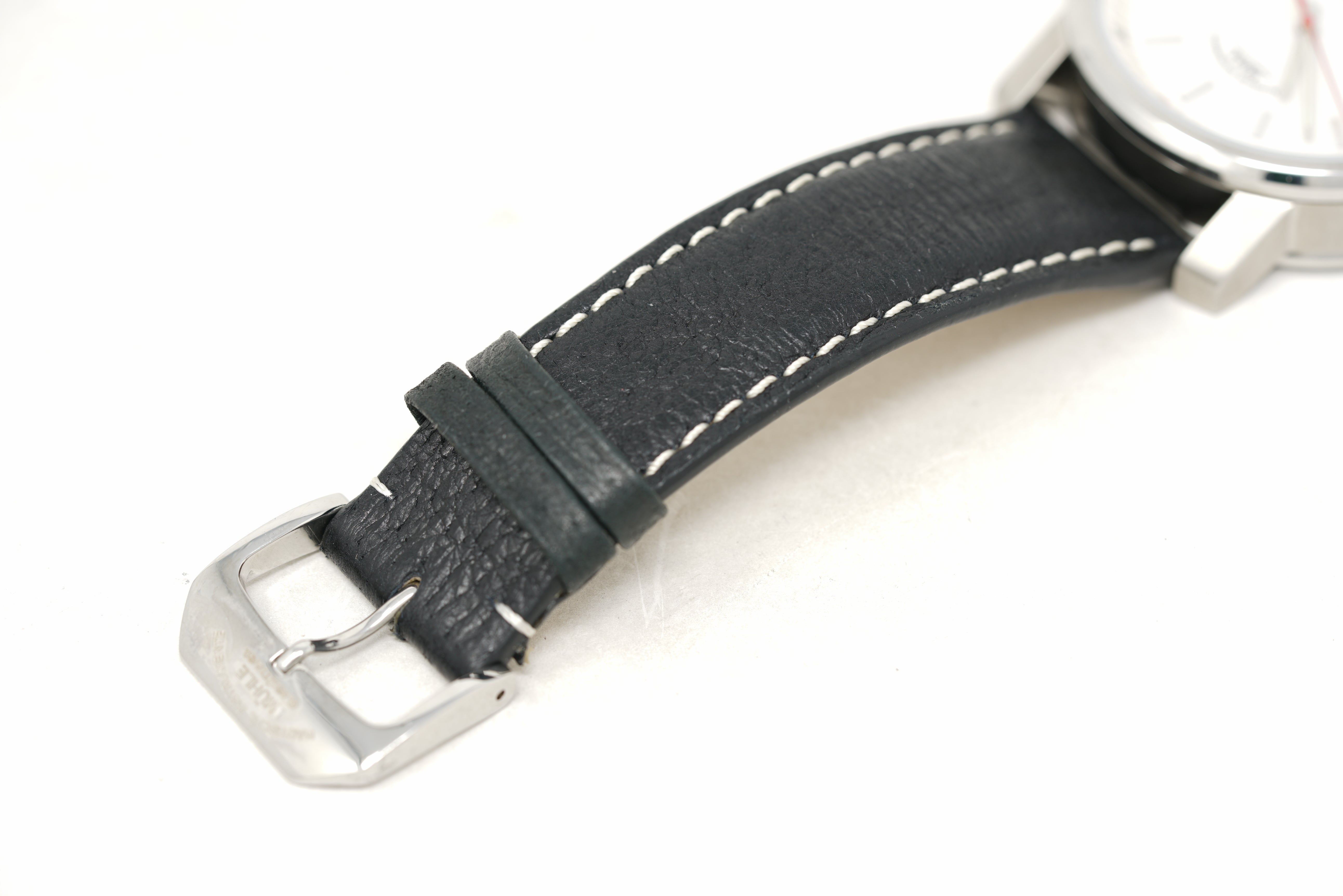 This pre-owned watch is in 96% condition due to faint marks on the sides and back of the case. The strap is in 94% condition due to minor wear and creasing. Originally purchased in December 2025, this watch comes with its inner and outer box, instruction manual, warranty card, and the one-year Topper Pre-Owned Select warranty.