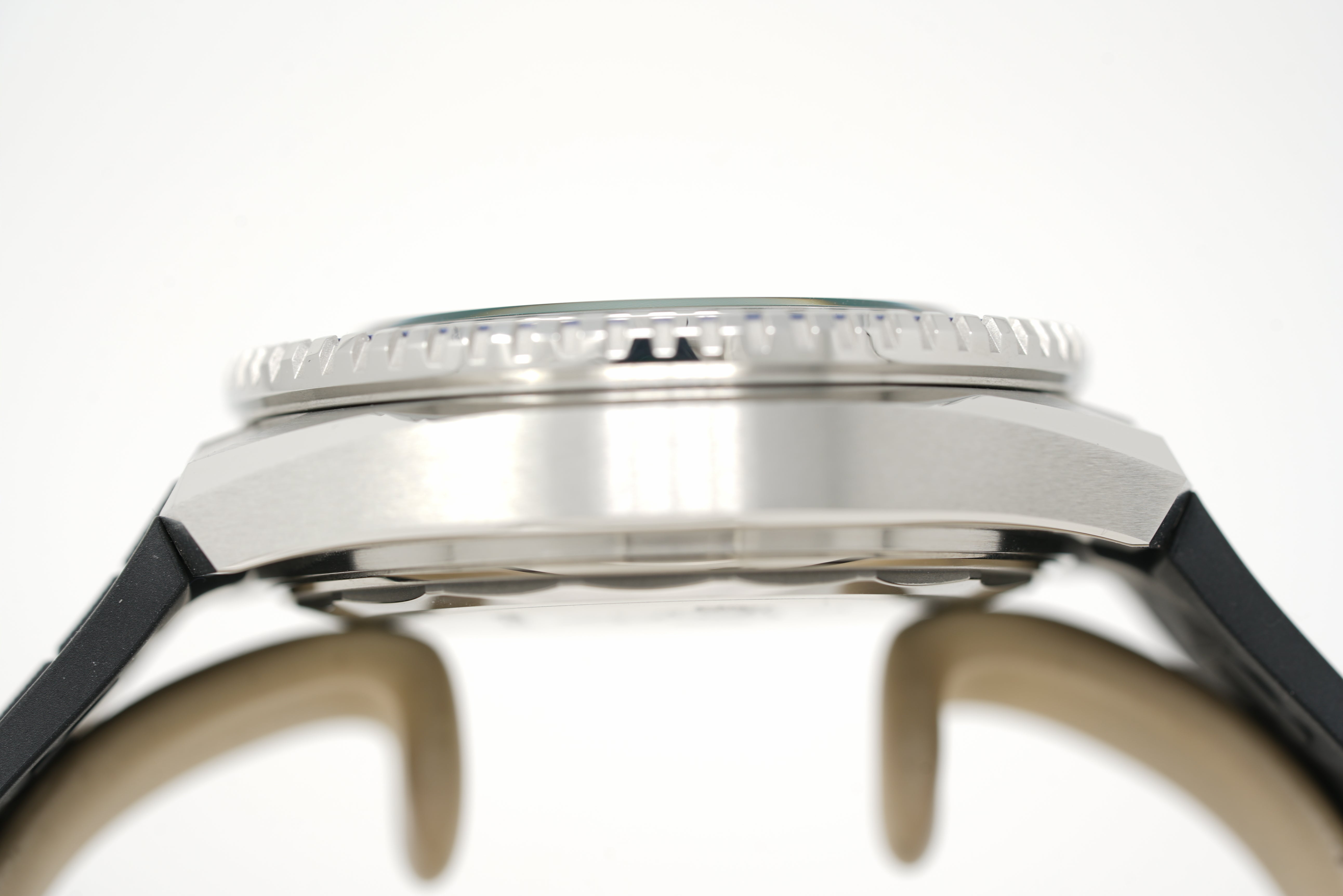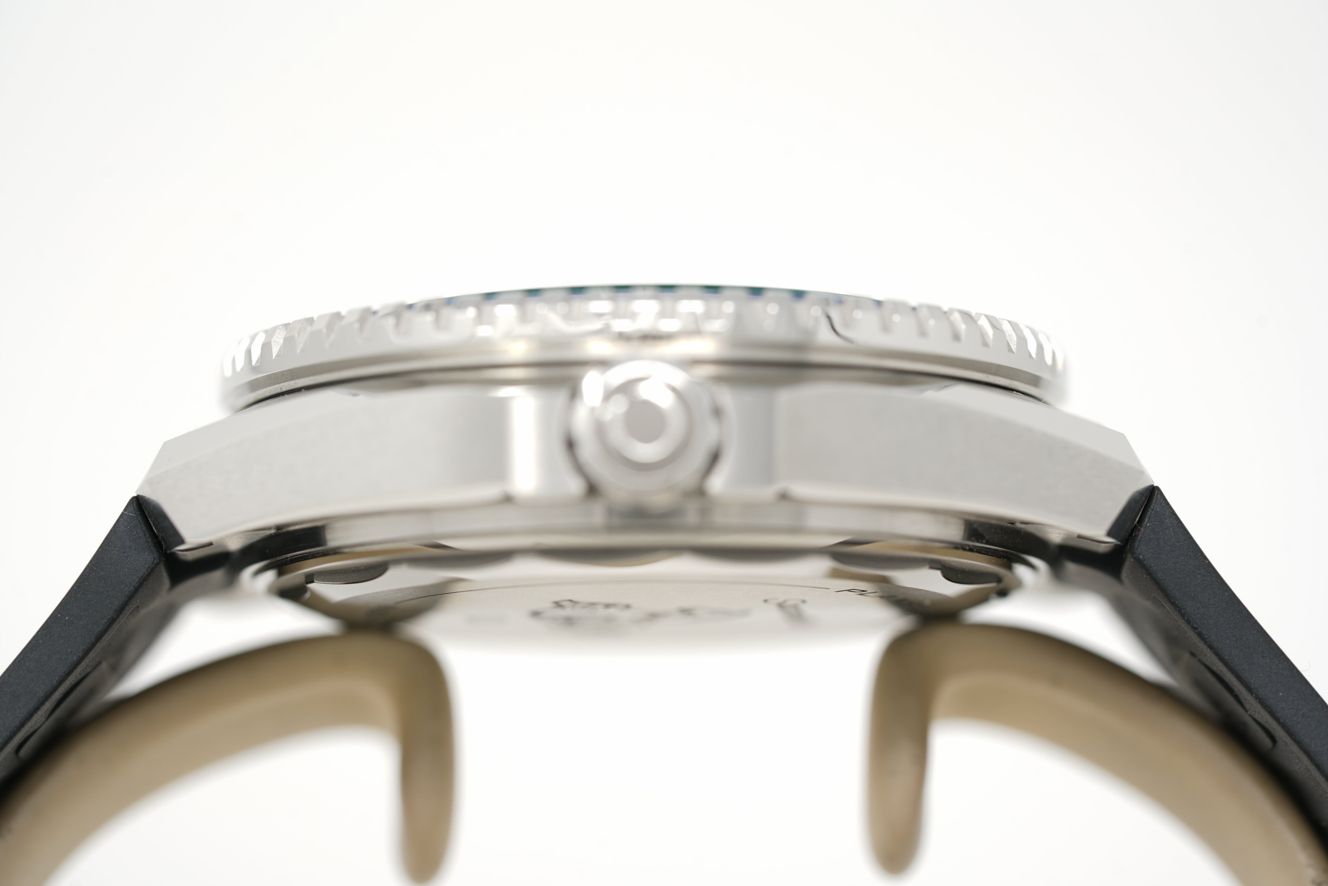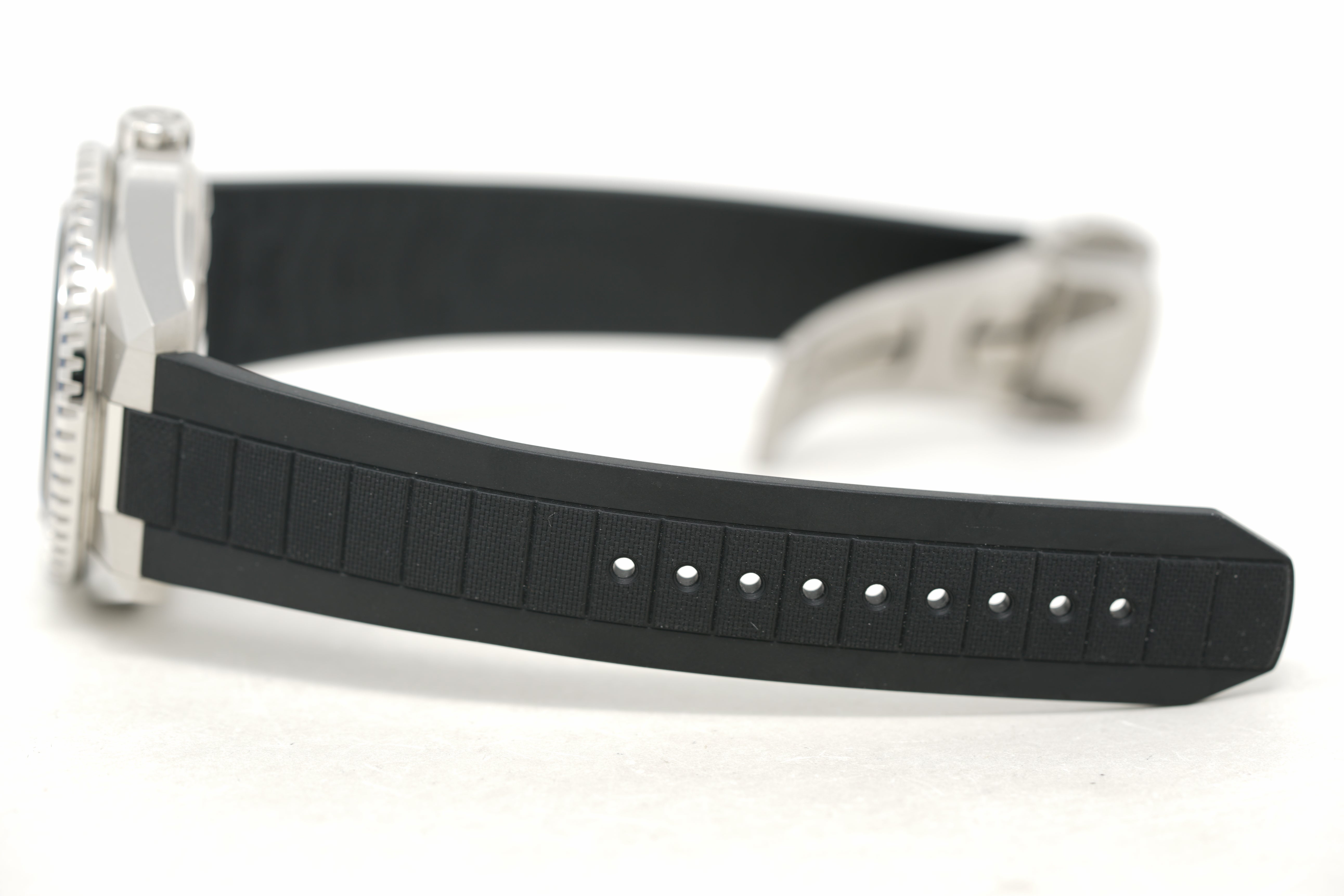 This pre-owned watch is in 93% condition due to slight marks on the sides and back of the case. The strap is in 94% condition due to minor wear and creasing. Originally purchased in December 2025, this watch comes with its inner and outer box, instruction manual, warranty card, master chronometer card, hangtag, and the one-year Topper Pre-Owned Select warranty.