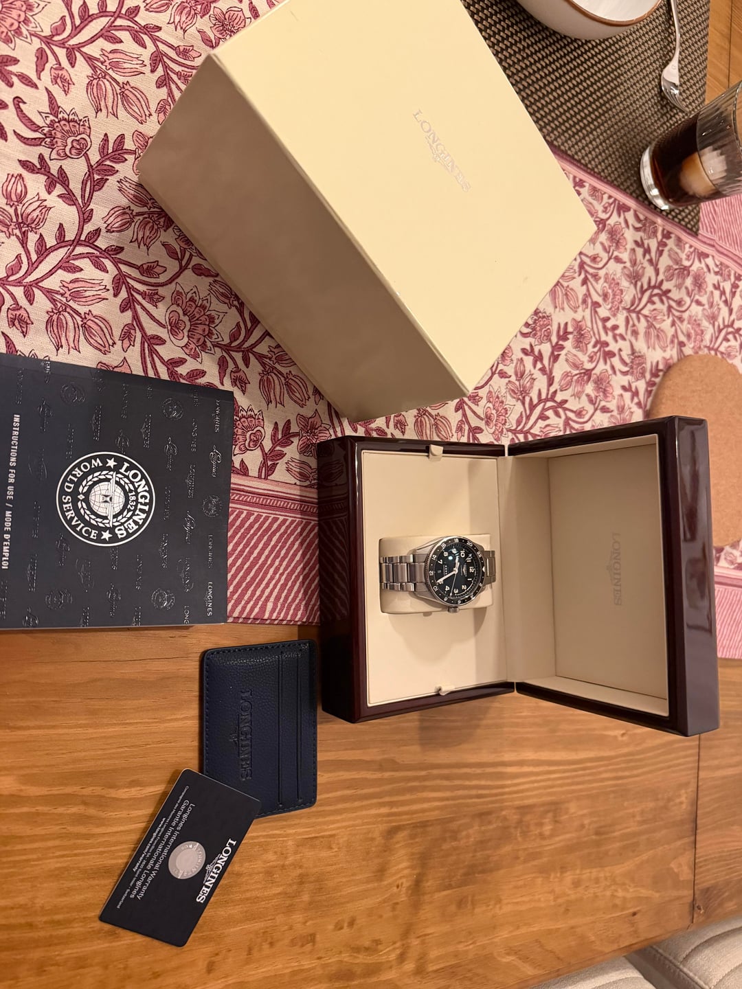 Hello fellow watch enthusiasts, for sale is my Longines Spirit Zulu Time 42mm with black dial, reference L38124536. This is a private sale. No warranty, return, or exchange. ⸻ Condition The watch was worn occasionally in rotation and therefore shows normal signs of wear. Overall, it is in very good condition. • Crystal & bezel: like new • Case & bracelet: only standard wear marks, please refer to the pictures ⸻ History • Second owner • Originally purchased on June 7th, 2022 from Juwelier Brinckmann • I have owned the watch for approx. 1.5 years ⸻ Scope of Delivery • Original Longines box • Warranty card / original purchase receipt • Remaining papers (manual) • Original stainless steel bracelet ⸻ Price €2,400 Shipping costs depending on buyer’s preference. Payment methods accepted: • PayPal Friends & Family • Bank transfer • Cash on pickup ⸻ Technical Specifications • Case diameter (without crown): 42 mm • Case material: Stainless steel • Movement: Longines L844.4 automatic • Lug width: 22 mm • Thickness: 14.1 mm • Lug-to-lug: 49.4 mm • Water resistance: 10 bar / 100 m • Chronometer certified • Anti-magnetic resistant ⸻ Description I purchased this watch from a friend because I really liked its design and presence on the wrist. Over time, due to new additions to my collection, it has been worn less and less. Therefore, I’ve decided to let it go and pass it on to a new owner who will enjoy it more. Feel free to contact me anytime if you have questions. 😊