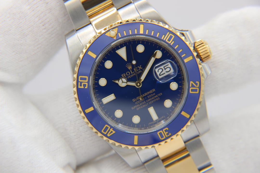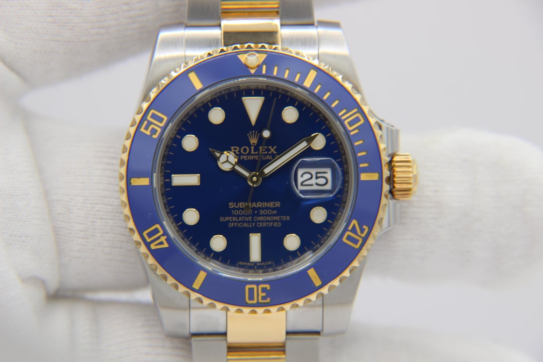 | Rolex Submariner Date 40mm 116613LB 18K Yellow Gold & Steel Ceramic Blue Bezel precioustimepieceandco (898) |