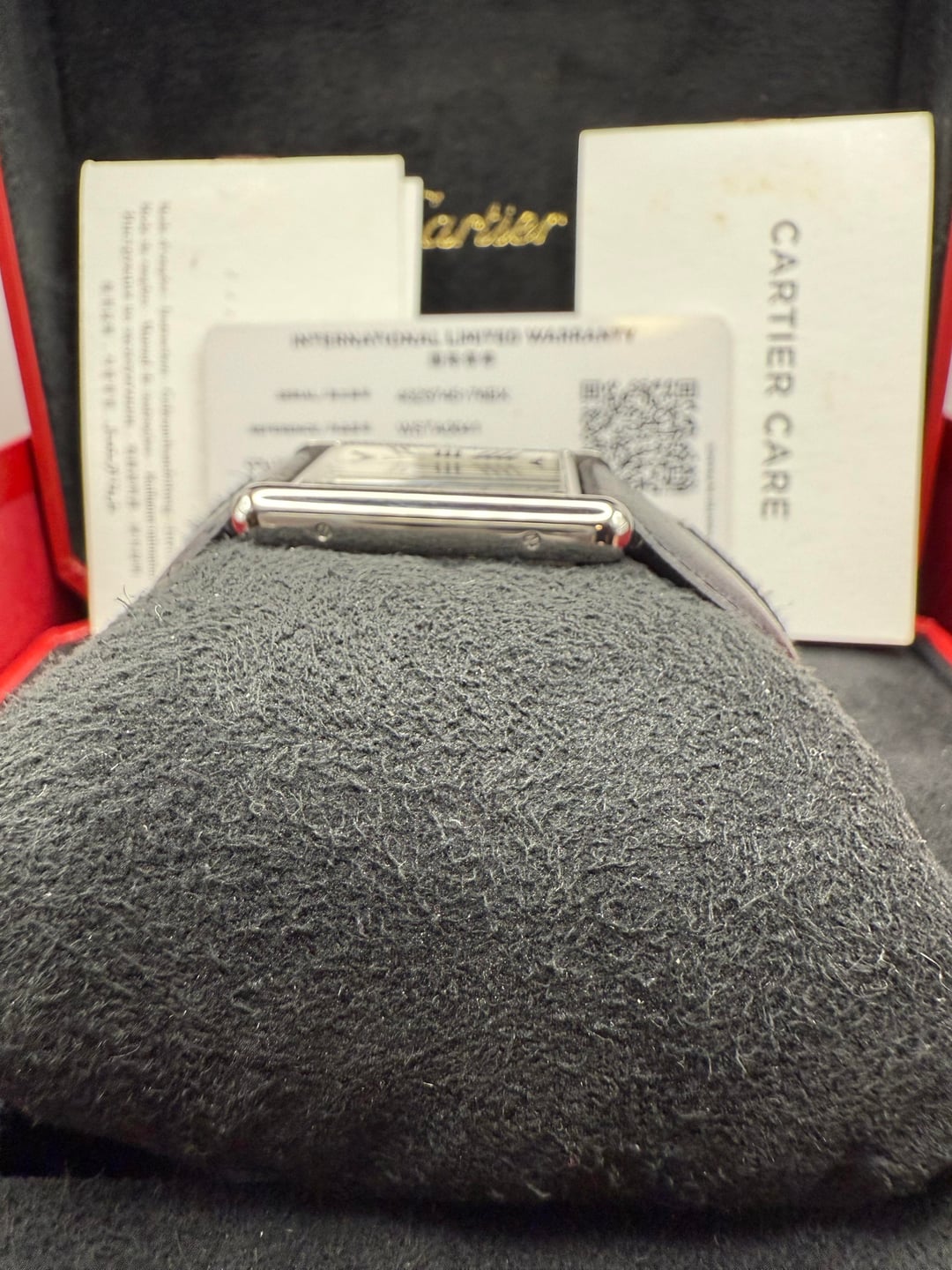 Timestamp https://imgur.com/a/XZ0J3cJ#LE36Vp5 Video https://imgur.com/a/EAMZj1c#YYtFD9p For sale is a Cartier Tank Must Large in stainless steel on original Cartier black leather strap. Classic rectangular Tank case with silver dial, black Roman numerals, blued steel hands, and sapphire cabochon crown. Quartz movement. Timeless and elegant piece that wears perfectly for everyday or dress use. Watch is in very good pre owned condition. Dial is clean. Crystal is clean. Case shows only light surface wear consistent with normal use. Strap shows wear but remains fully functional and original. Please refer to photos for full condition details. Details Brand Cartier Model Tank Must Reference WSTA0041 Case Material Stainless Steel Dial Silver with Roman numerals Movement Quartz Strap Original Cartier leather strap Caseback Stainless steel Water resistant Swiss made Includes Watch Inner and outer Cartier box International Cartier warranty card dated 08 04 2021 Booklets Hang tags Price $2550 OBO shipped within the continental United States Payment via Zelle or bank wire Located New York Established watch dealer and active member of Moda and RWB. Primarily selling on Facebook and expanding to Reddit. Happy to provide references, phone number, FaceTime, and reasonable buyer verification. For buyer verification I’m happy to accommodate whatever makes you comfortable including reference checks on Facebook or within any watch community of your choice, use of a trusted middleman or escrow service, live FaceTime video, additional photos and video, and sharing my name and phone number. Transparency and a smooth transaction are the priority. • You’re not just buying the watch. You’re buying the seller behind it.