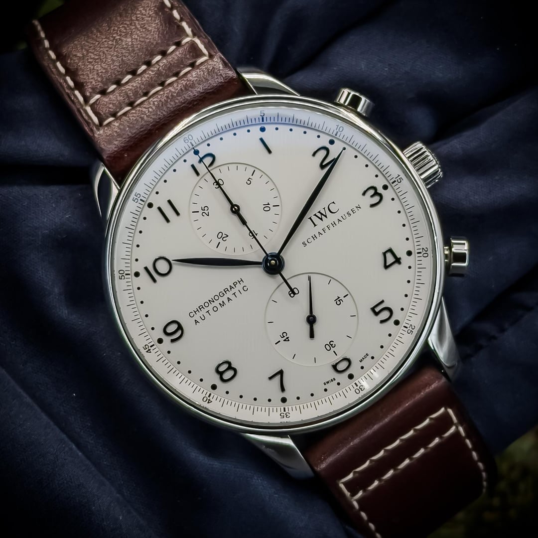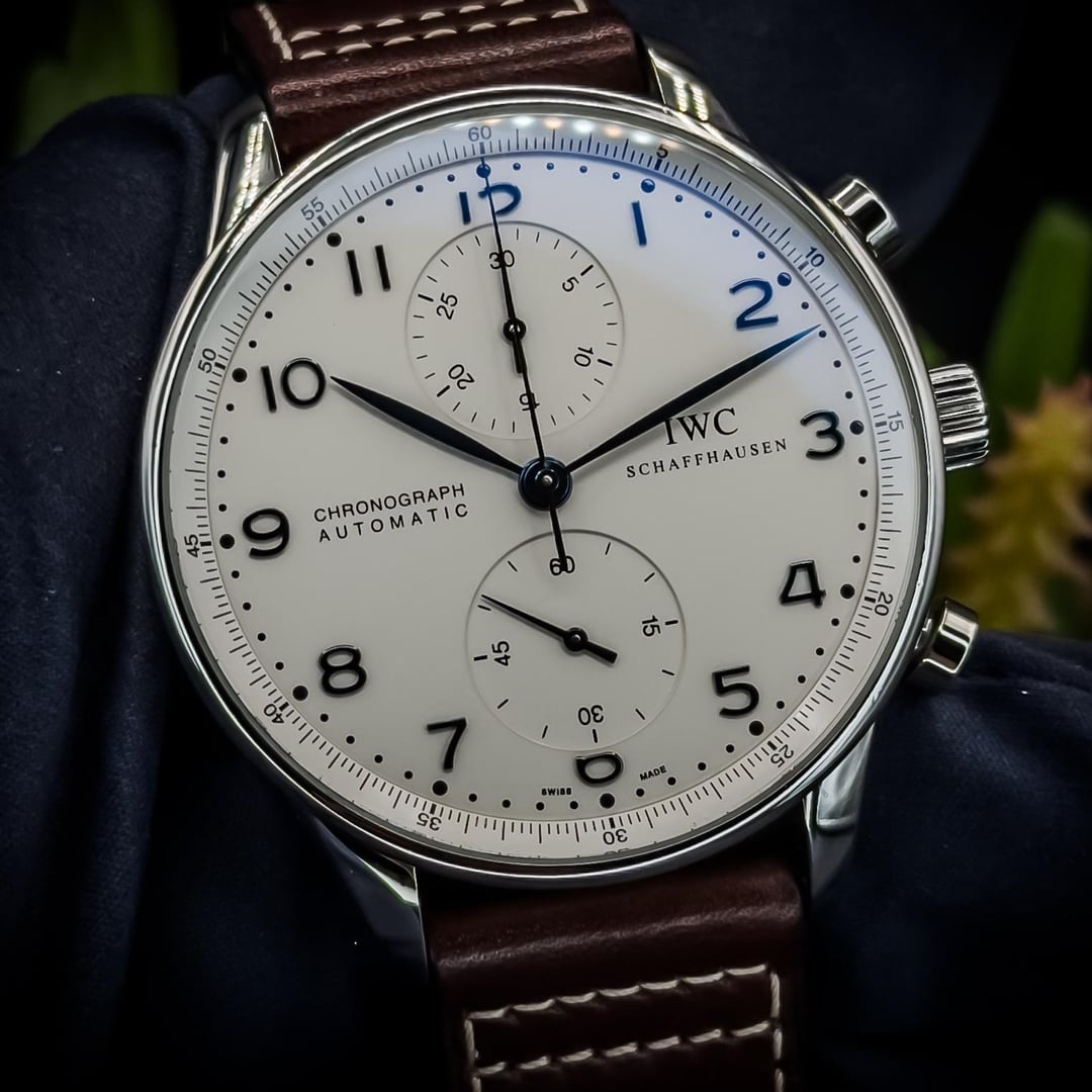 ![Thumbnail [WTS/WTT] IWC Portuguese Chronograph White Dial Blue Hands IW371446 Excellent Watch Only + travel box - 4100 + ship! 3](https://cdn-cf.watchpatrol.net/120x120/img/full/f948f7e8426b68fc46354a741c482ec8273a2fe8.jpg)